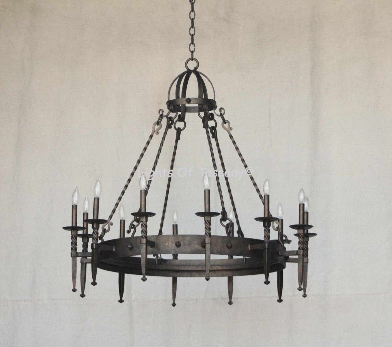 1087-12 Spanish Transitional Style Wrought Iron Chandelier