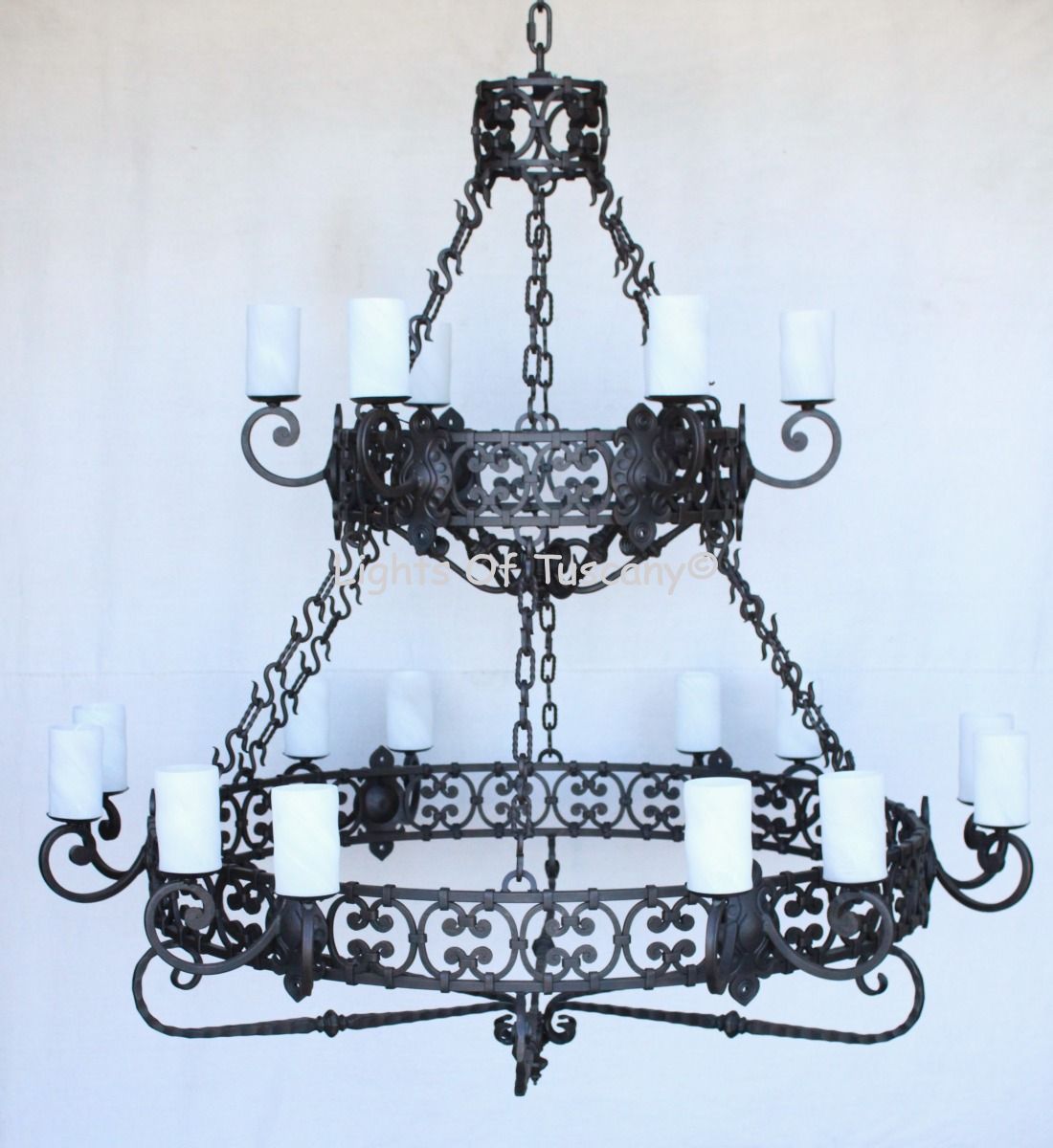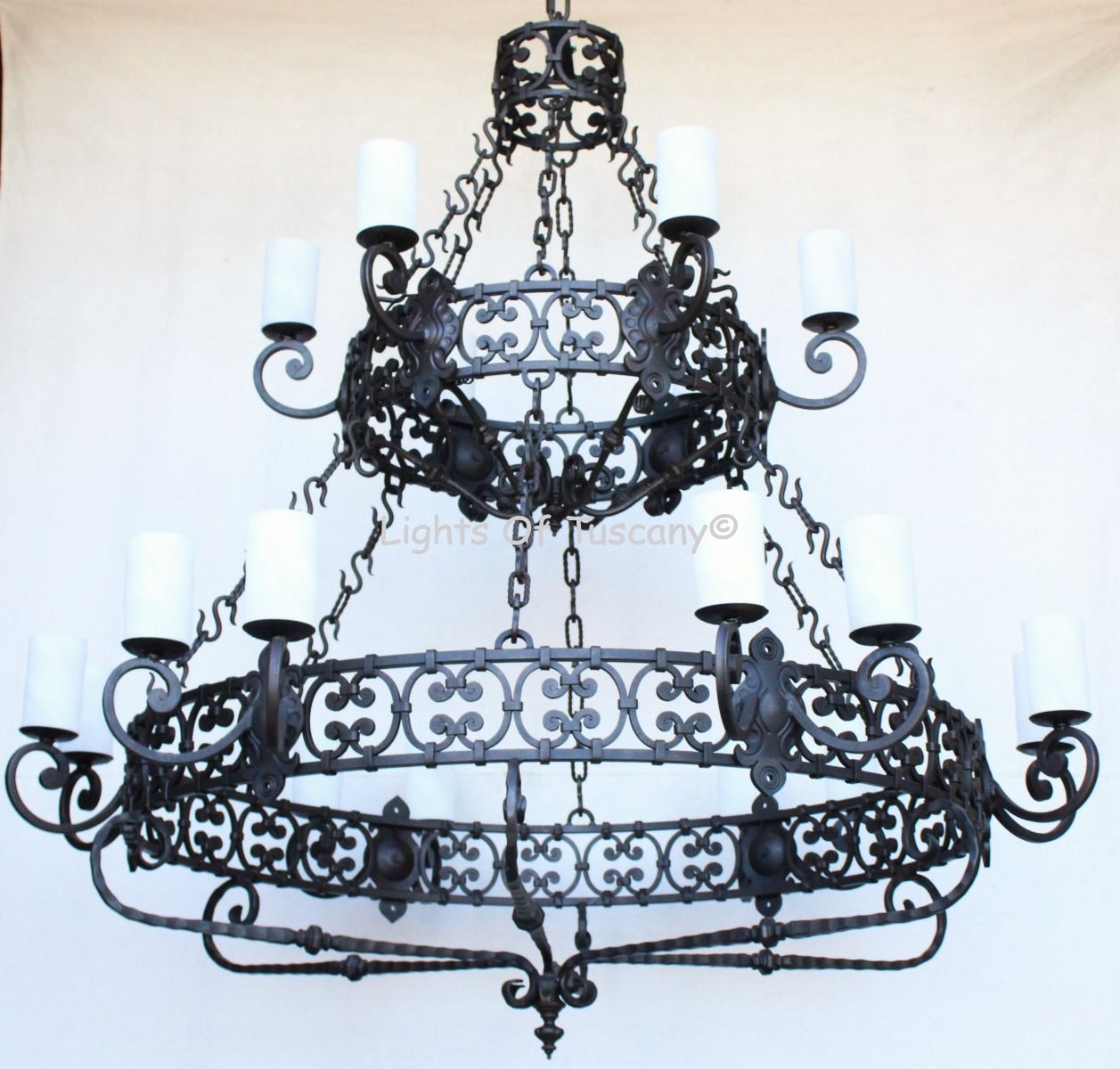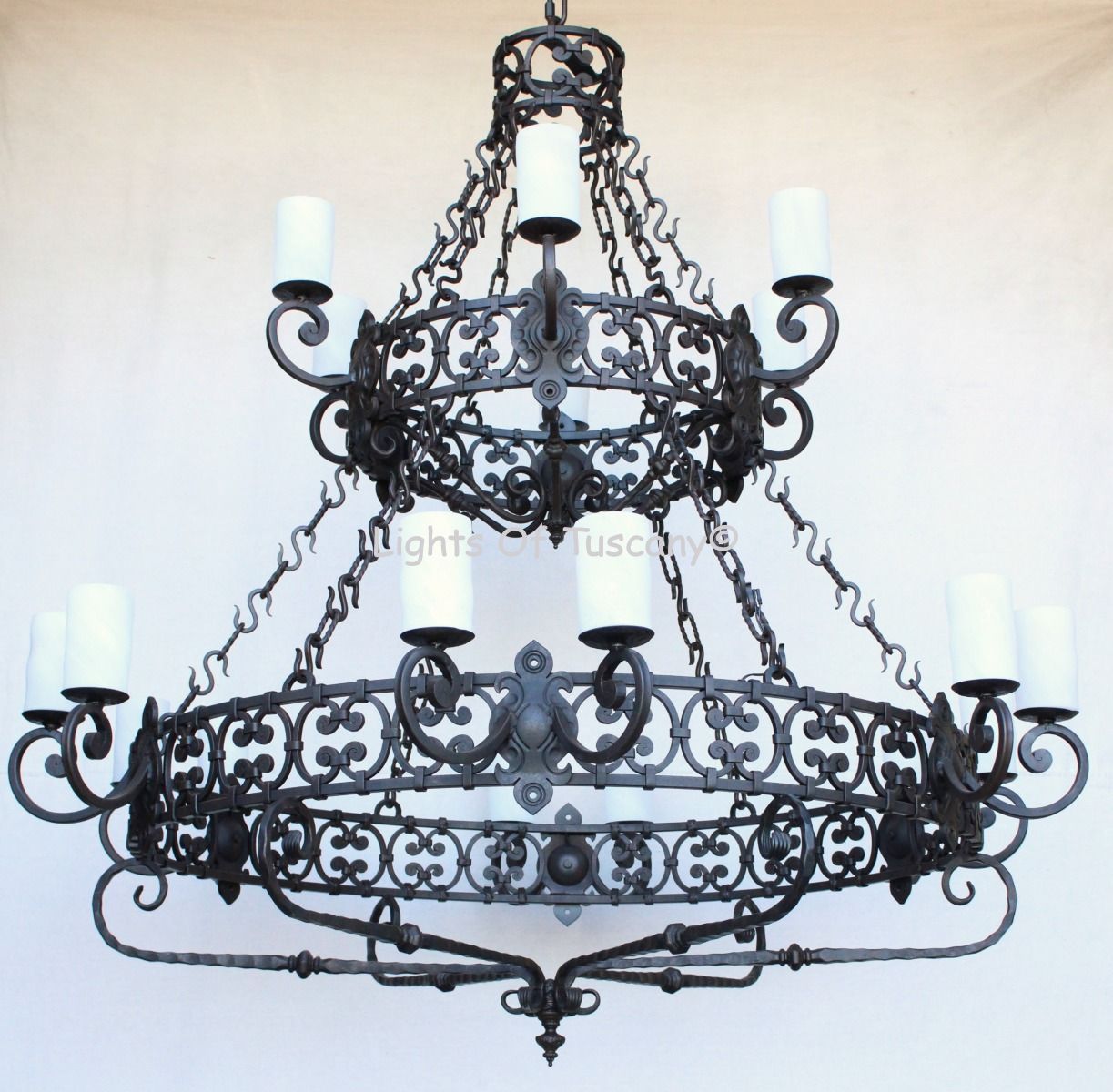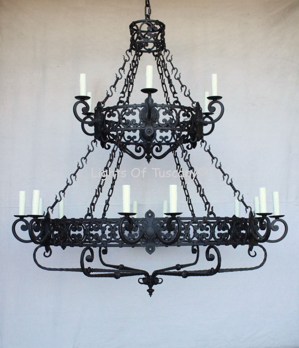 1101-18 Spanish Revival Style 2-Tier Large Iron Chandelier