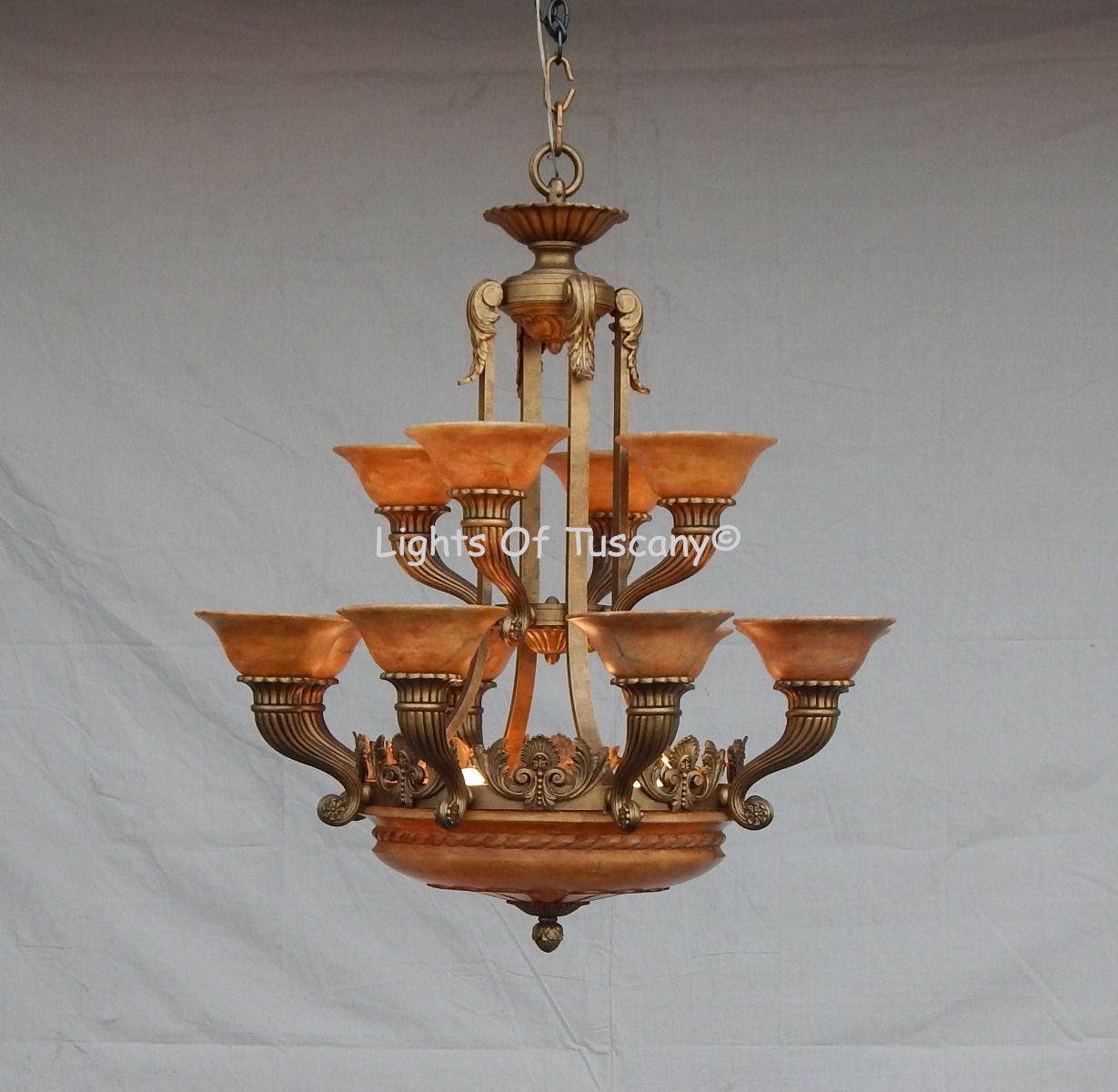 Genuine Spanish Cast Brass Chandelier with stone shades