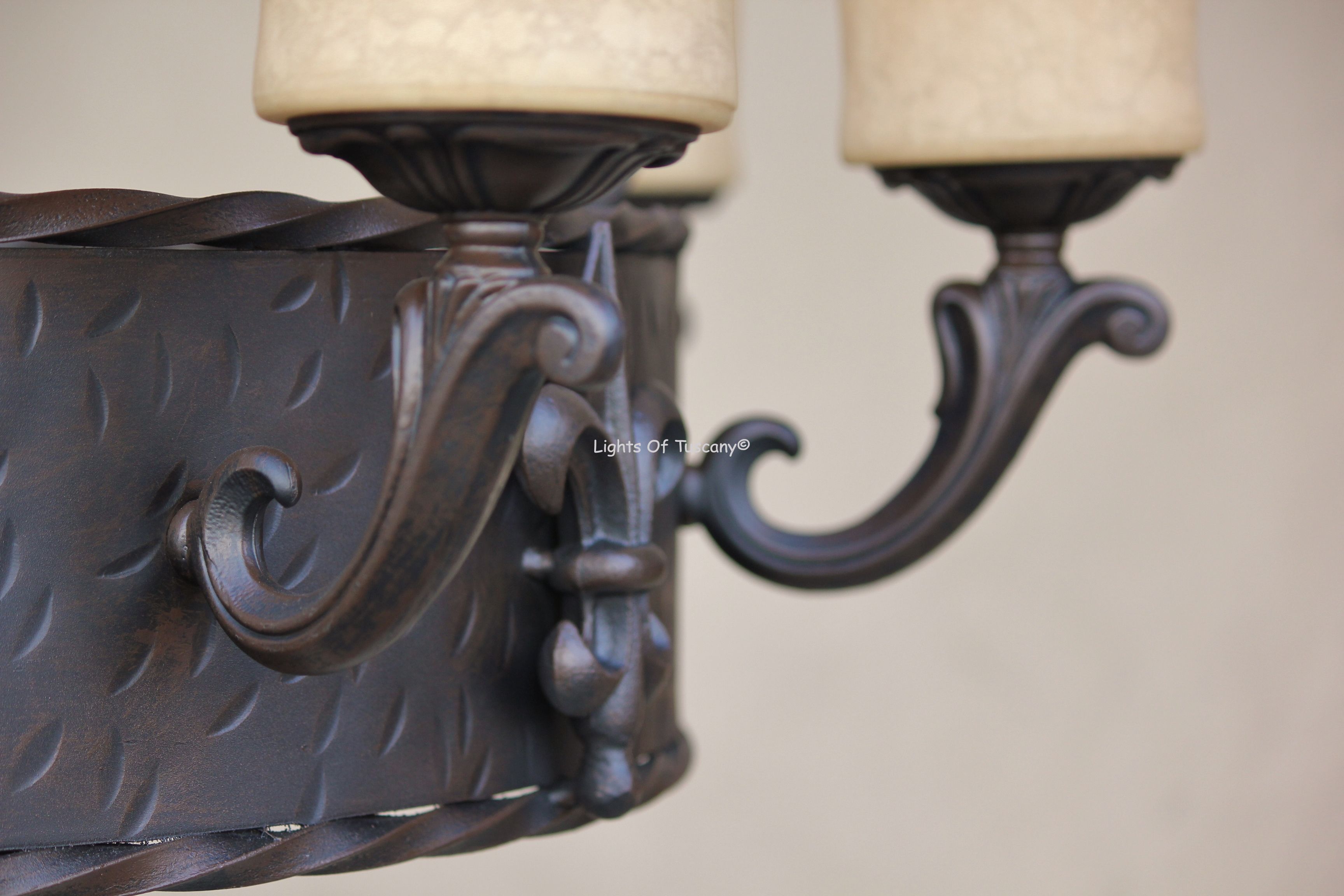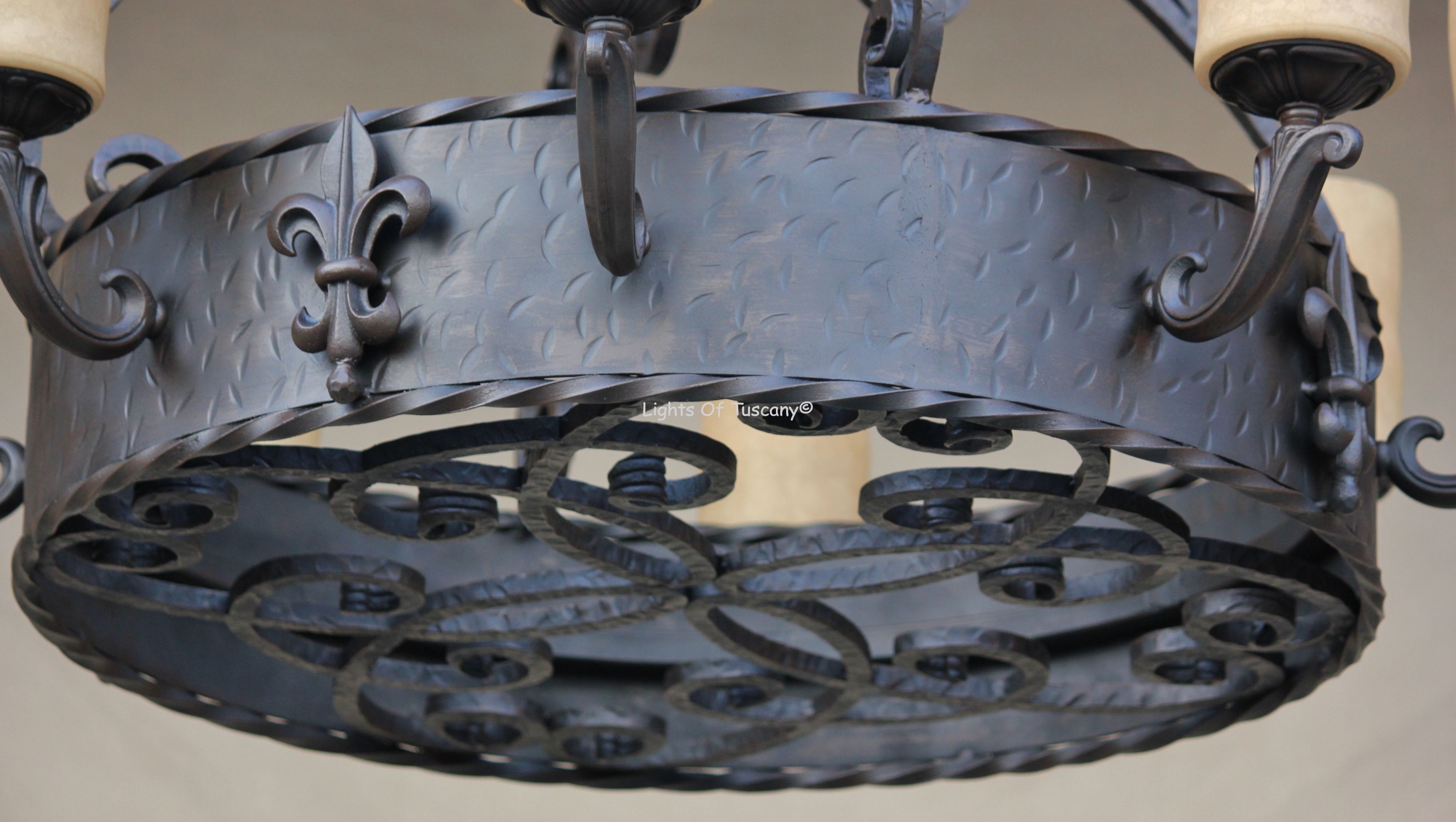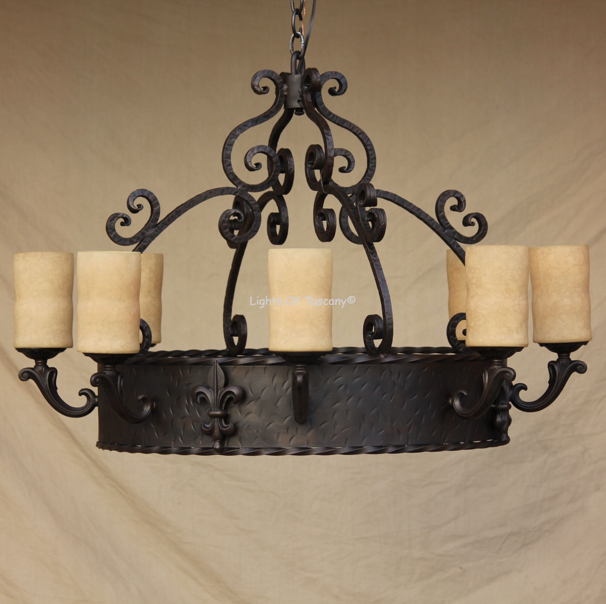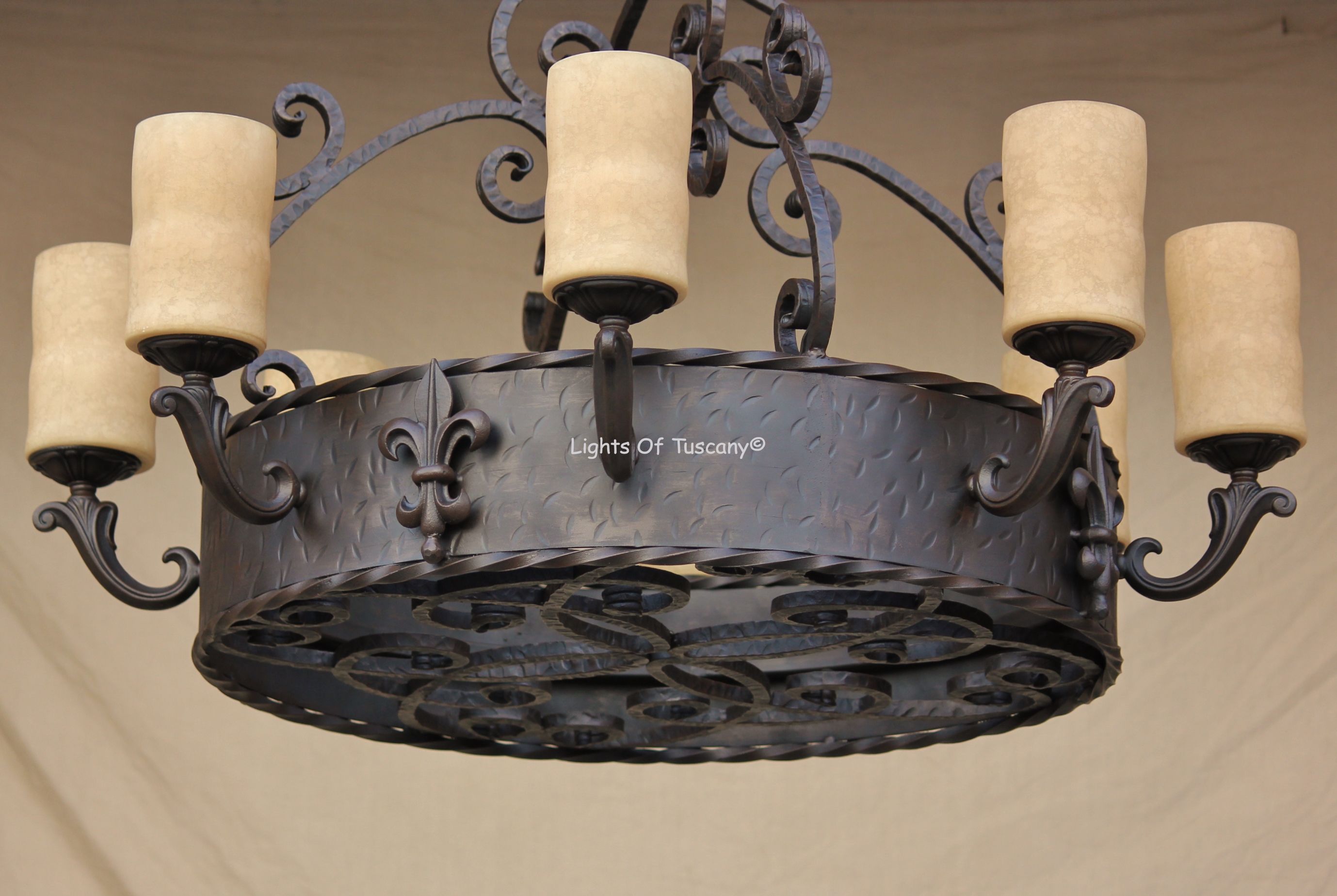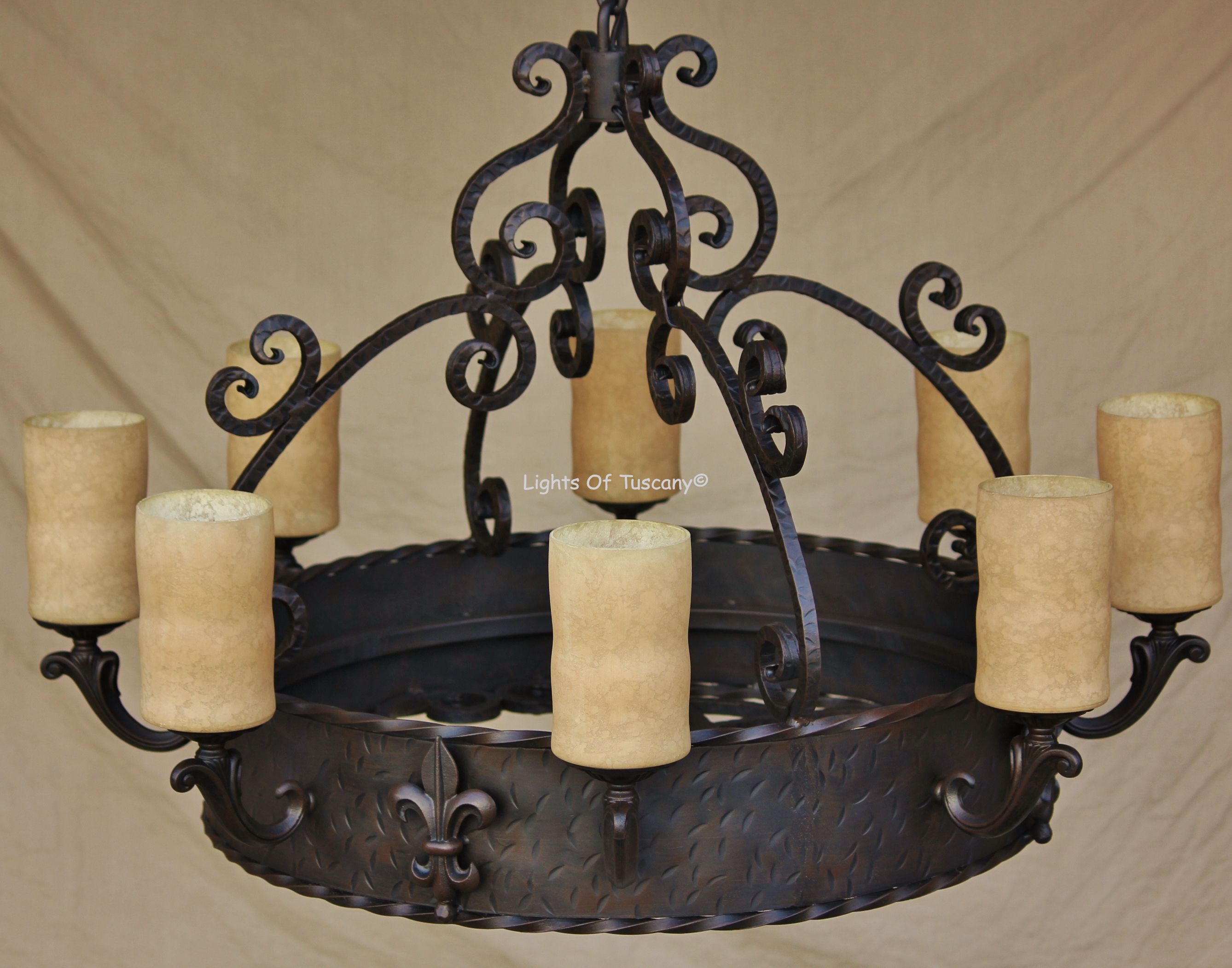 Tuscan chandelier. This wrought iron hand forged Tuscan chandelier is available in many choices of finishes and glass options.