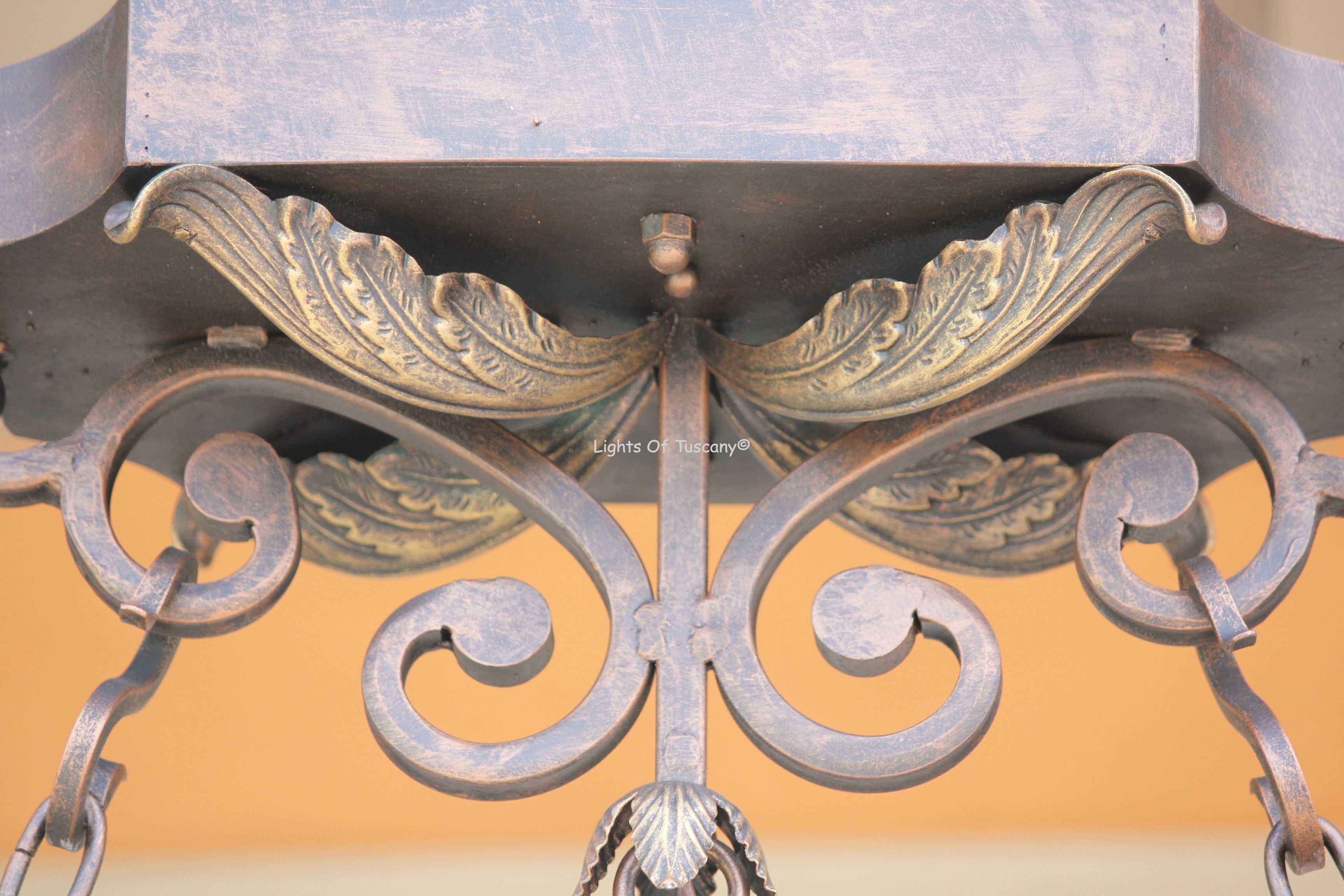 Hand forged wrought iron oval Tuscan Style Chandelier. Intricately designed with fine detail, this would be perfect for over large dining tables, kitchen islands or living area.