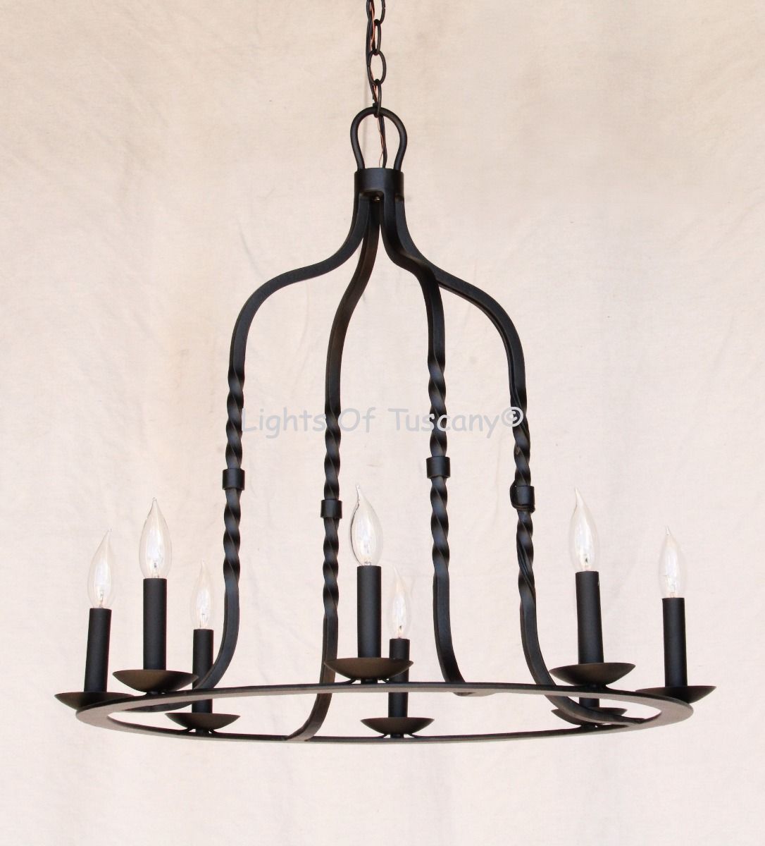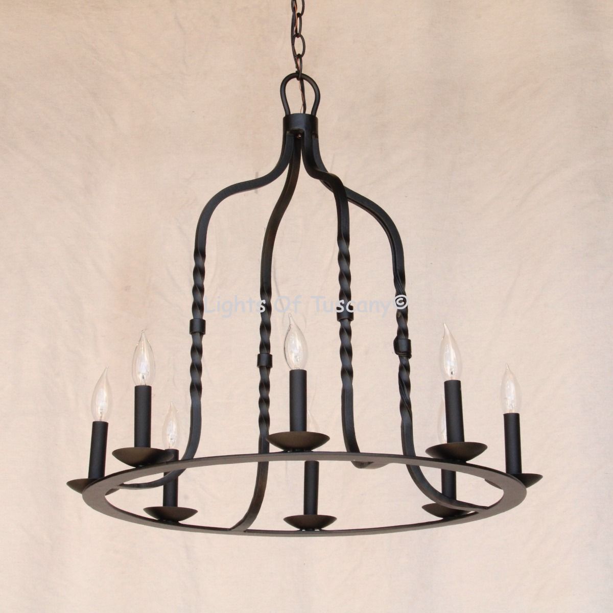 This beautiful wrought iron lighting fixture is made of all hand forged wrought iron. This fixture is perfect for your entryway, living spaces, or dining area. Available in your choice of finishing options.