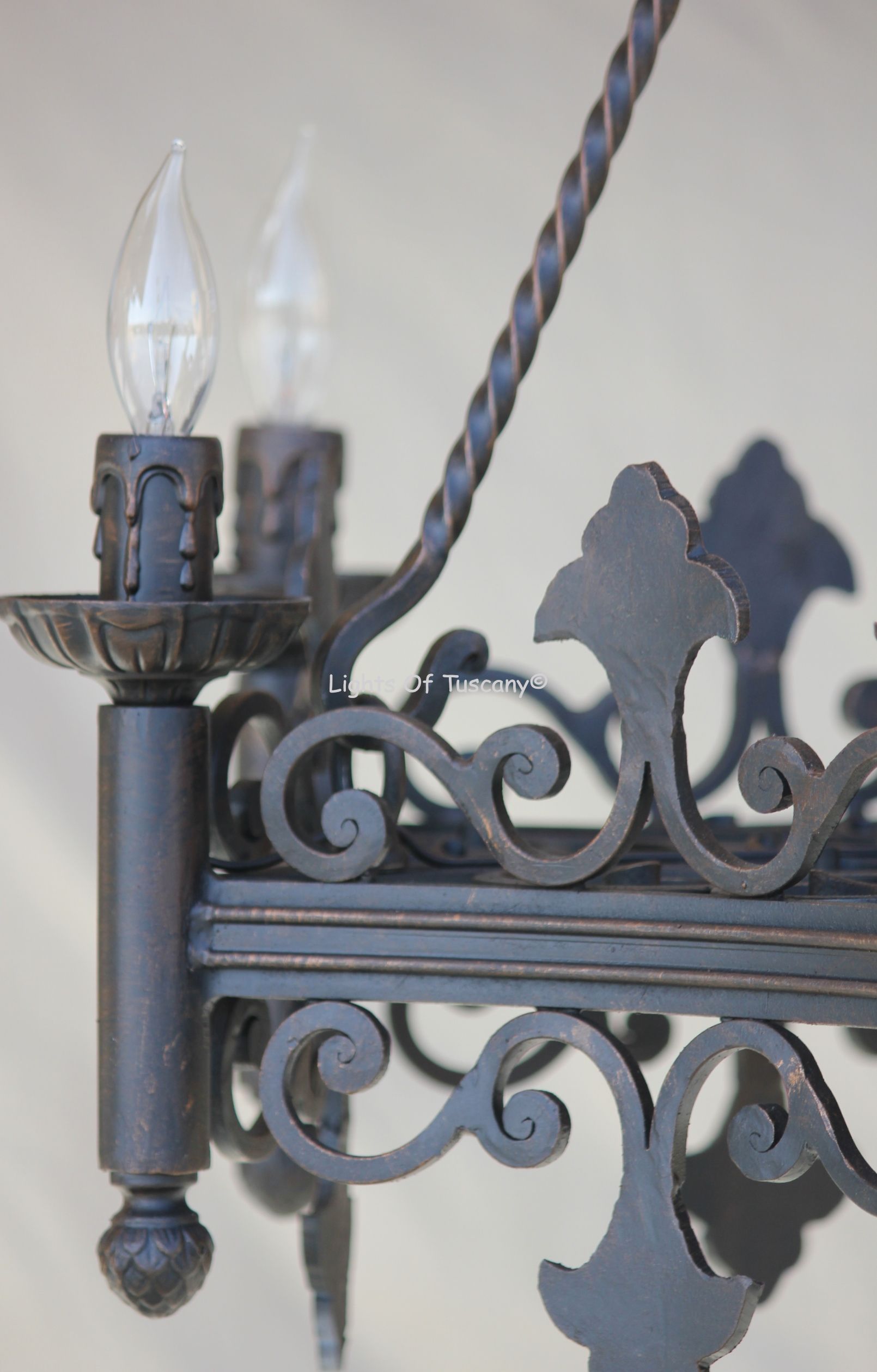 This beautiful wrought iron lighting fixture is made of all hand forged wrought iron. This fixture is perfect for your entryway, living spaces, or dining area. Available in your choice of finishing options.