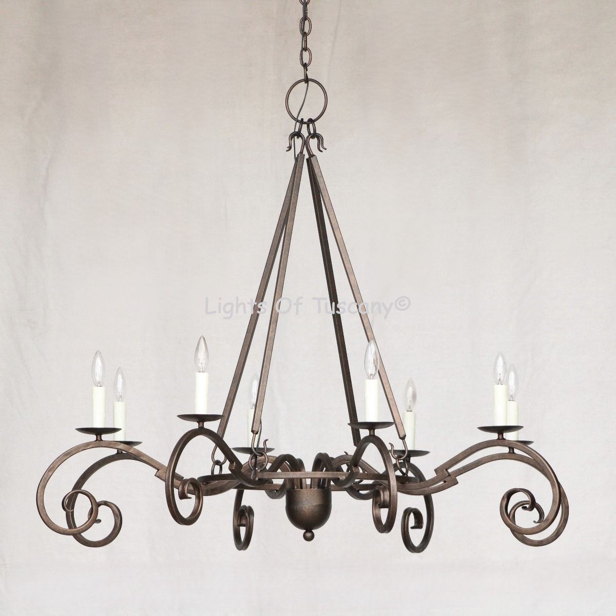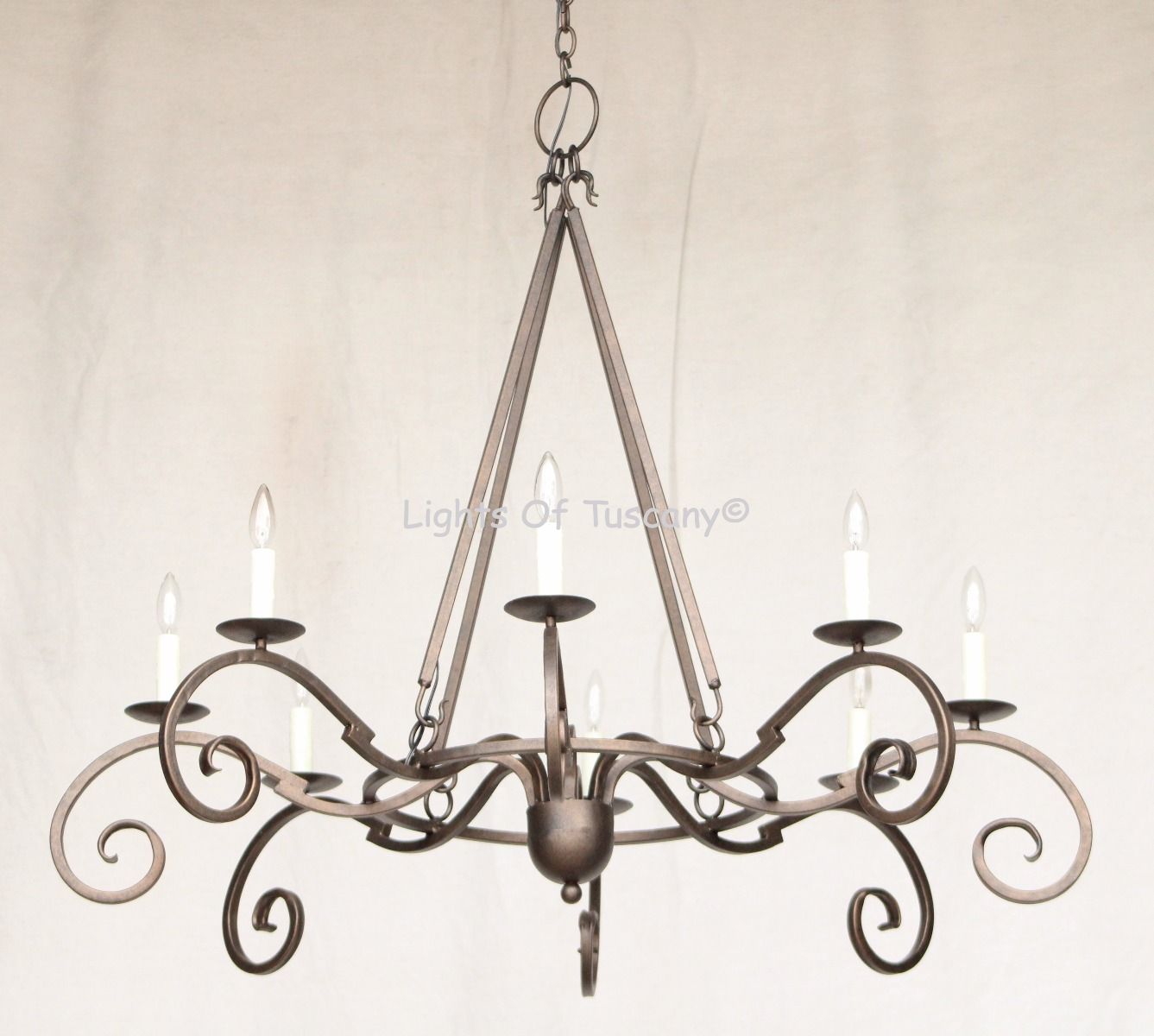 This beautiful wrought iron lighting fixture is made of all hand forged wrought iron. This fixture is perfect for your entryway, living spaces, or dining area. Available in your choice of finishing options.
