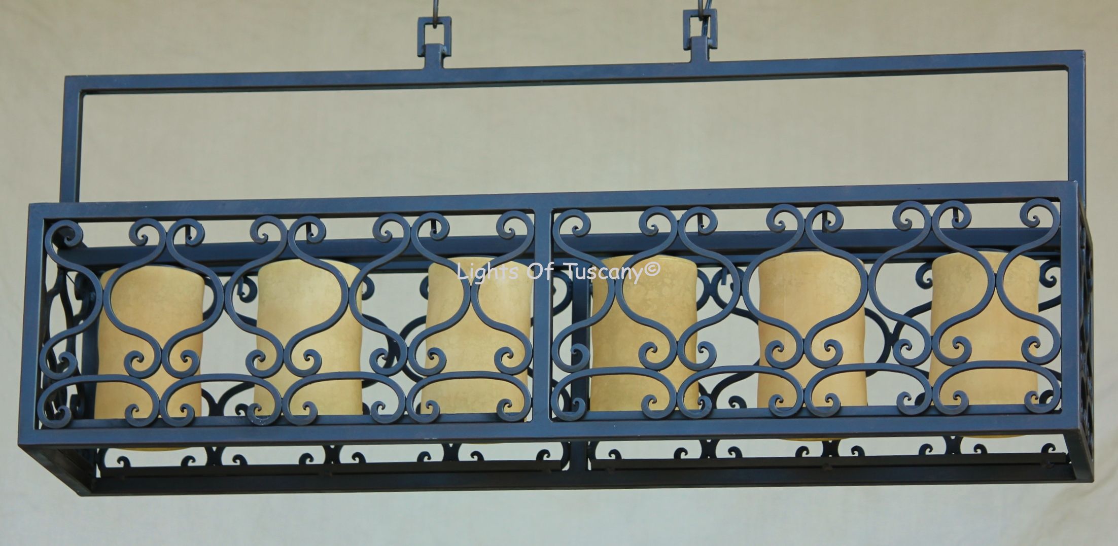 Tuscan chandelier. Length: 38", Height : 17" Width: 10".