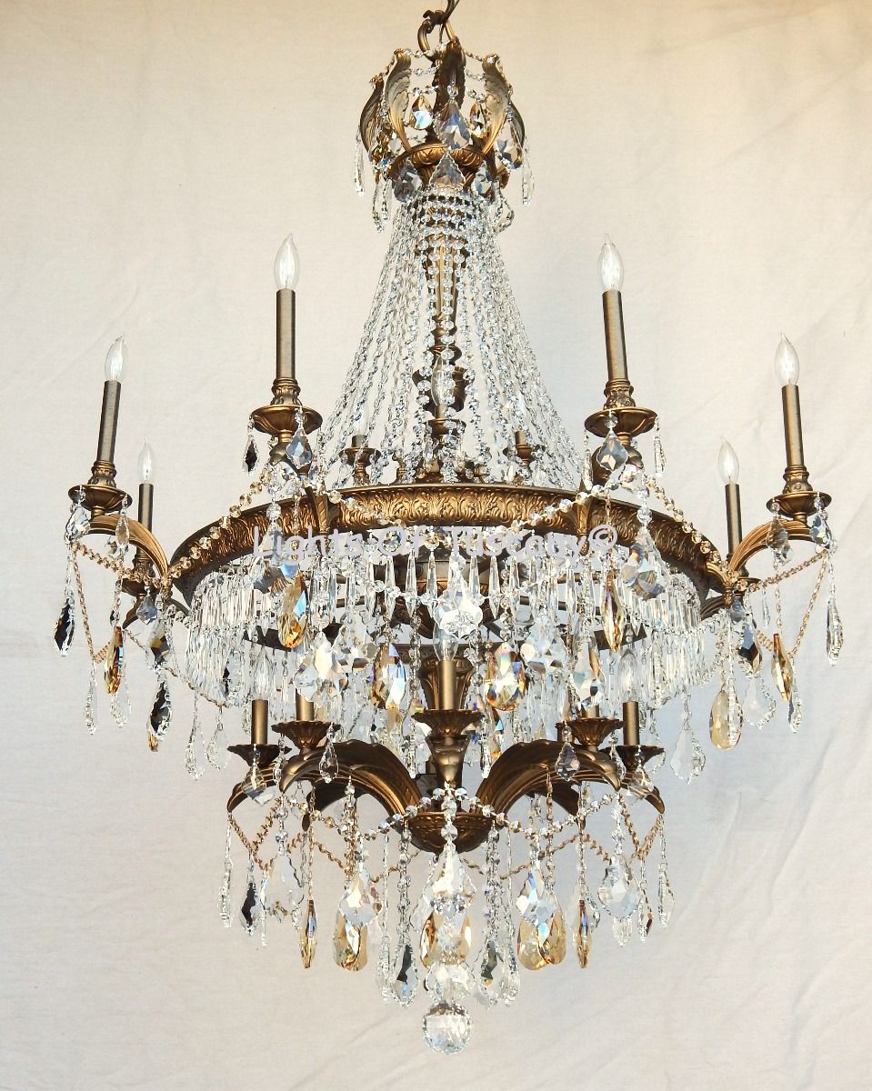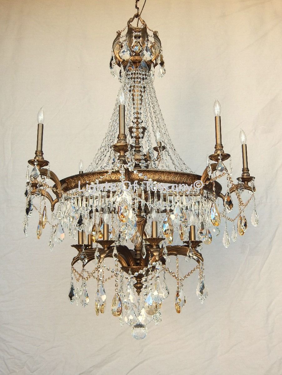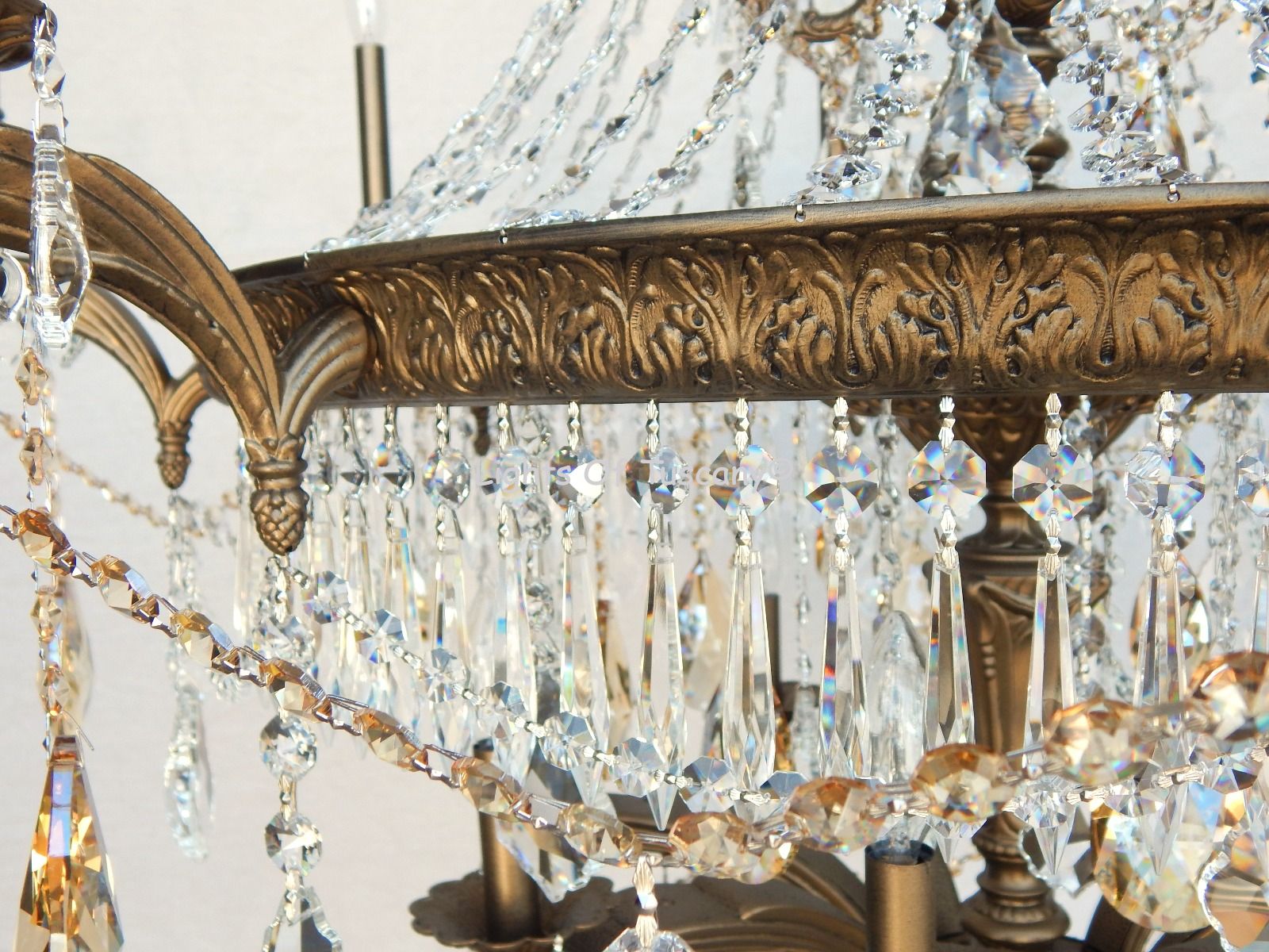15625-24 European Antique Style Brass Chandelier with Crystals