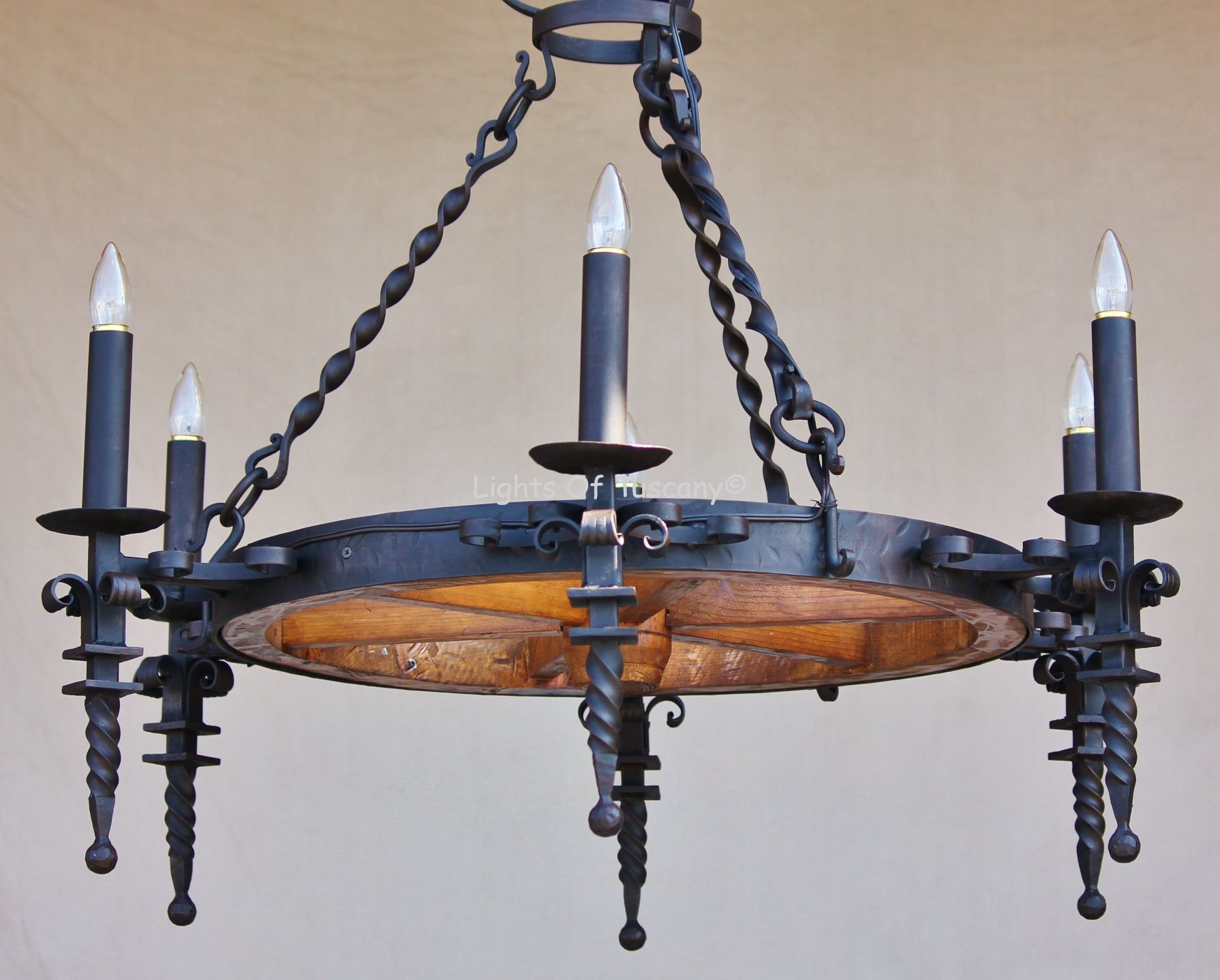 1591-6 Rustic Wooden Style Wheel Chandelier