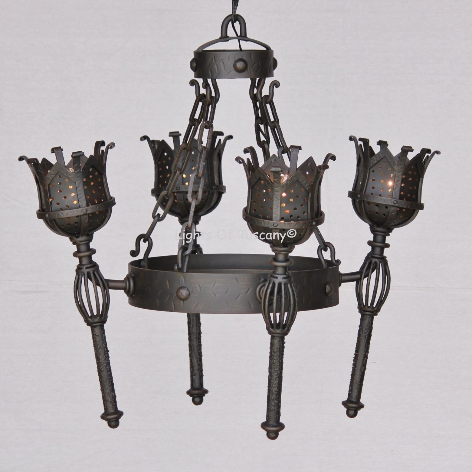 1715-4 Castle Torch Light Wrought Iron Chandelier