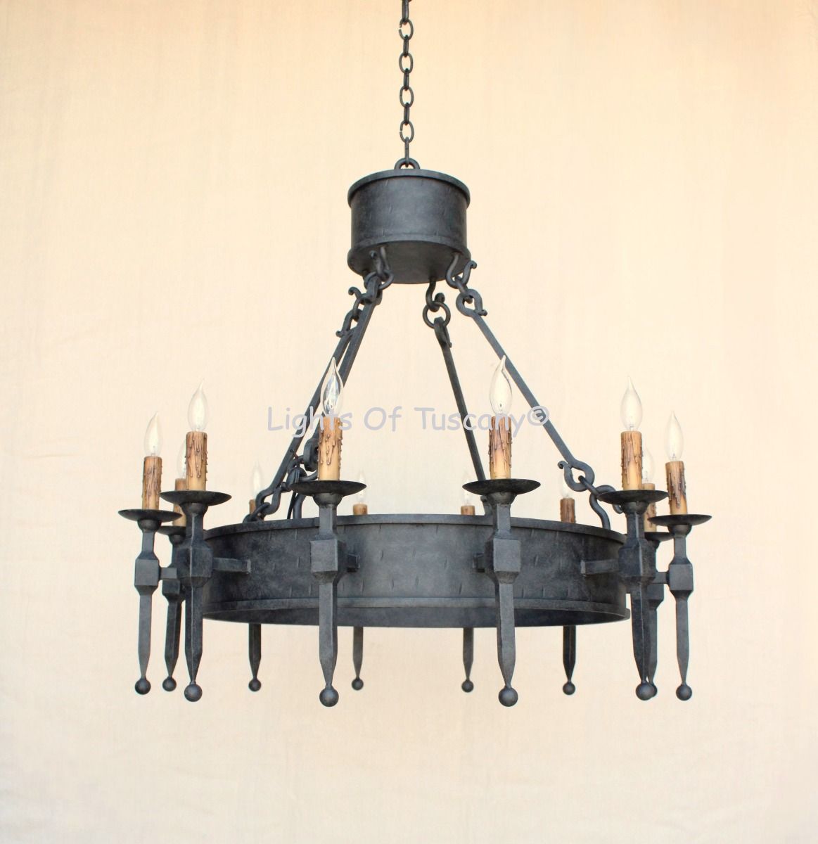 Elevate your space with this timeless hanging chandelier, designed to blend classic charm with modern functionality. Featuring hand crafted forged iron frame and design elements, this light fixture exudes elegance while providing a warm and inviting glow. Perfect for both indoor and outdoor covered use: use it as a dining room table chandelier, living room chandelier, kitchen nook chandelier, or even a bedroom chandelier. This light fixture enhances your indoor or exterior living space with its sophisticated design and quality craftsmanship. Its versatile design complements a wide range of decor styles. Available in all our finishing options.