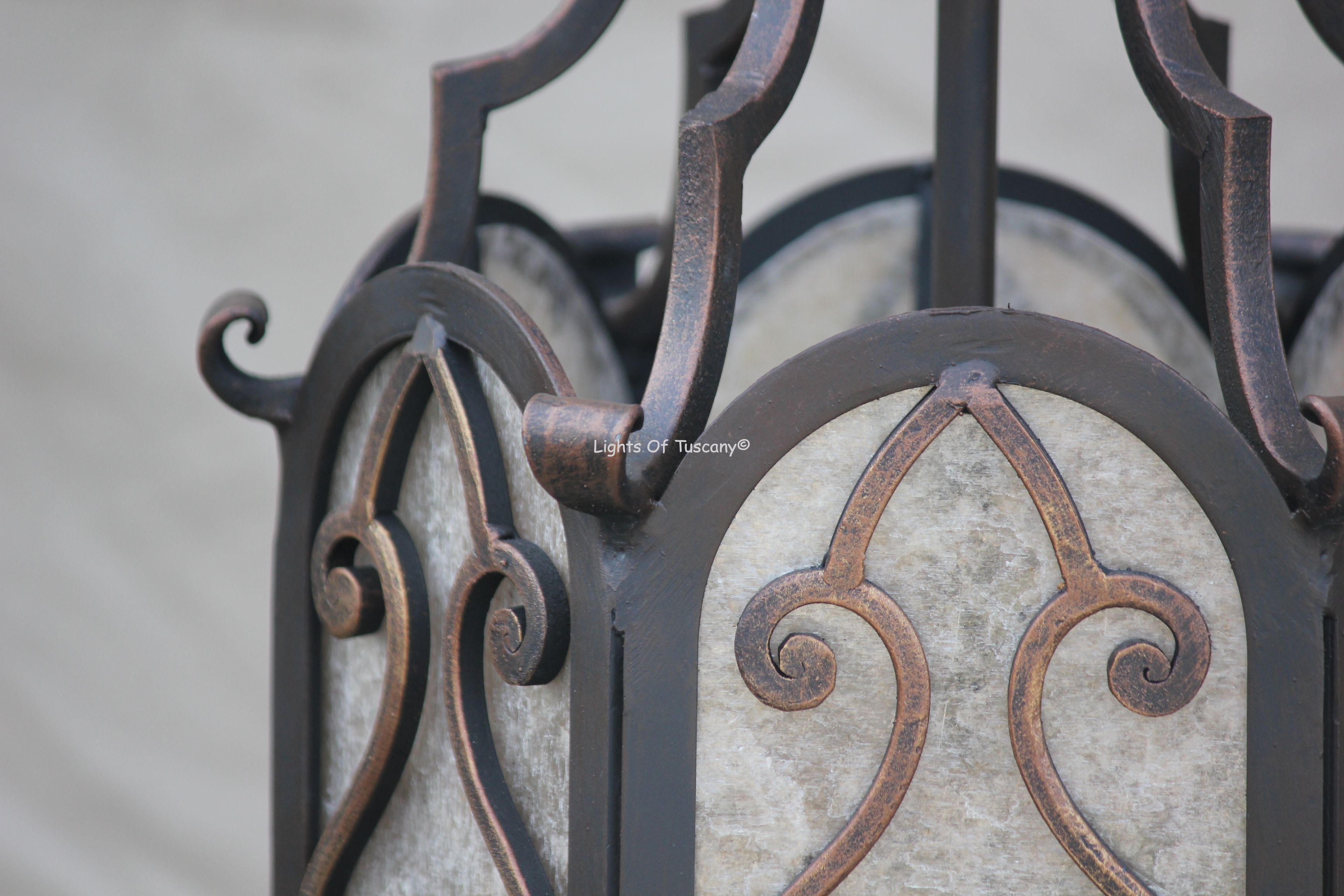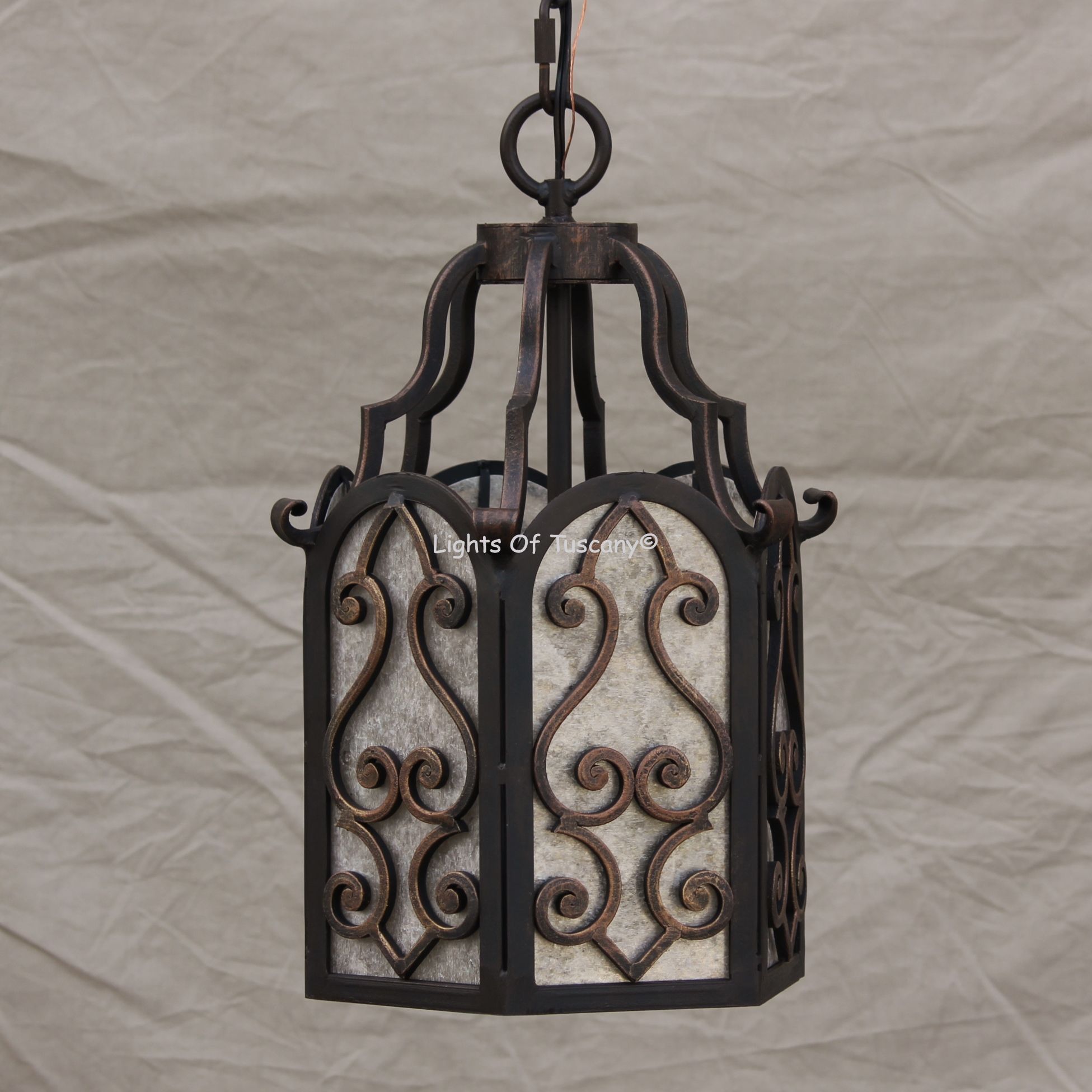 Our beautiful Spanish Country Villa Style Pendant Light is made of all hand forged wrought iron with a 3 light cluster. This simple, yet elegant pendant hanging light has traditional Spanish designs with the arched arms and windows.