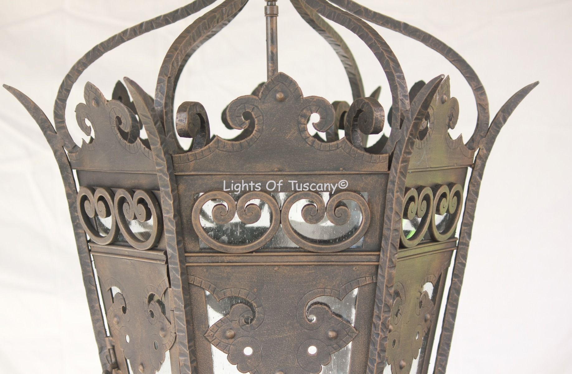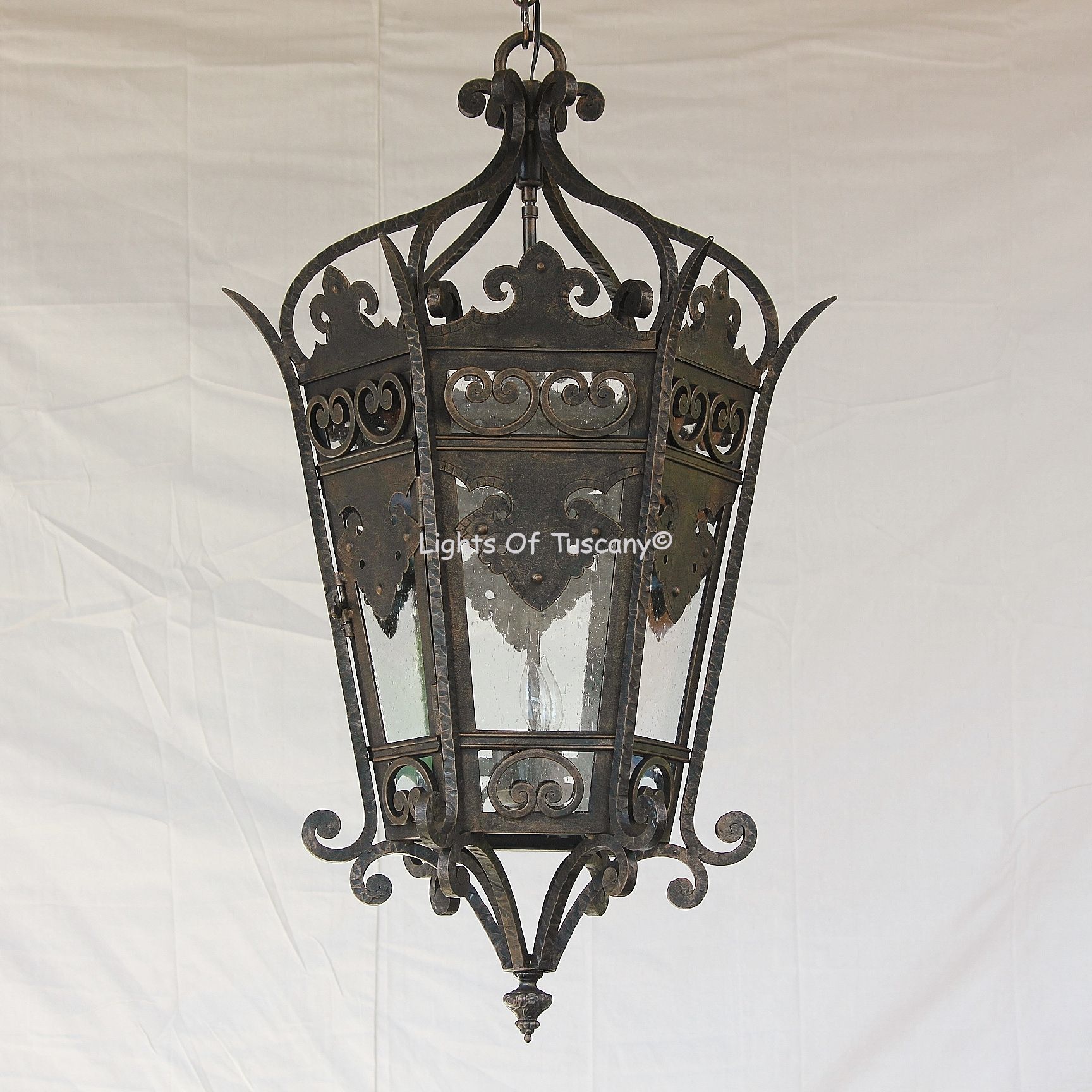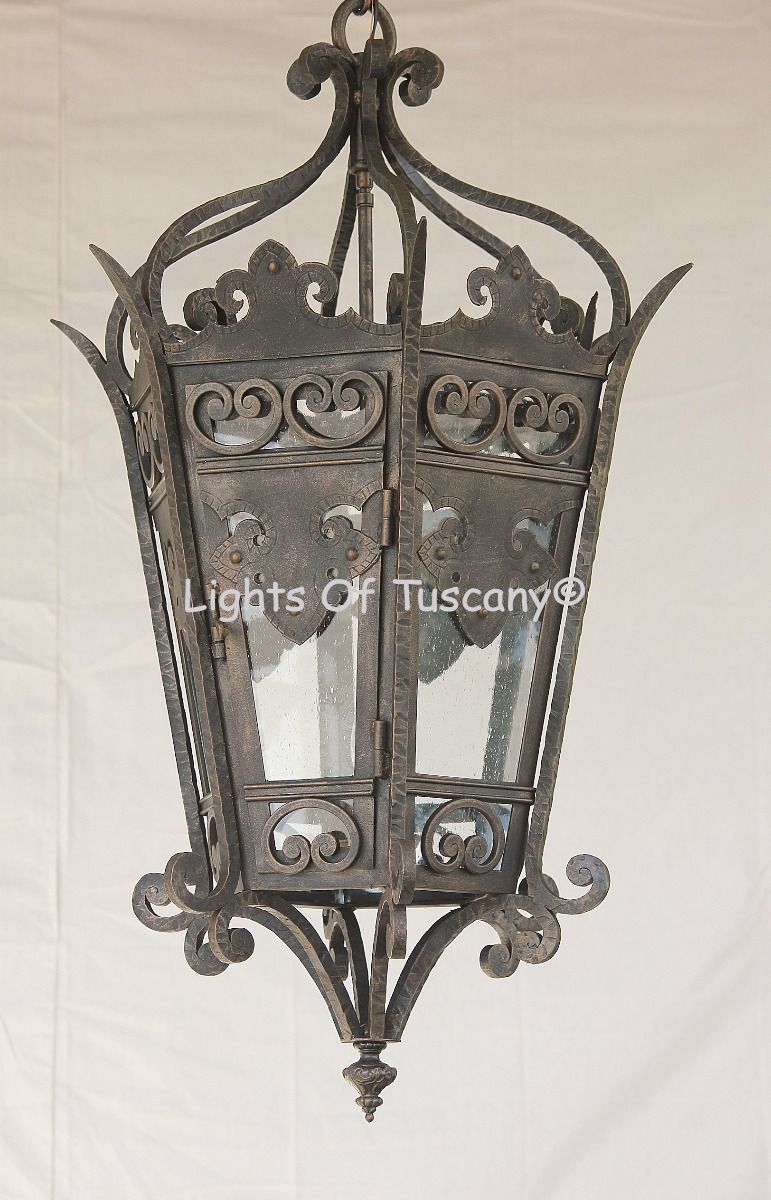 Elevate your home with this decorative Spanish Gothic Revival Stle wrought iron langern. , where modern elegance meets minimalist charm. Crafted from high quality, hand forged wrought iron, it’s the perfect lighting solution for any space.