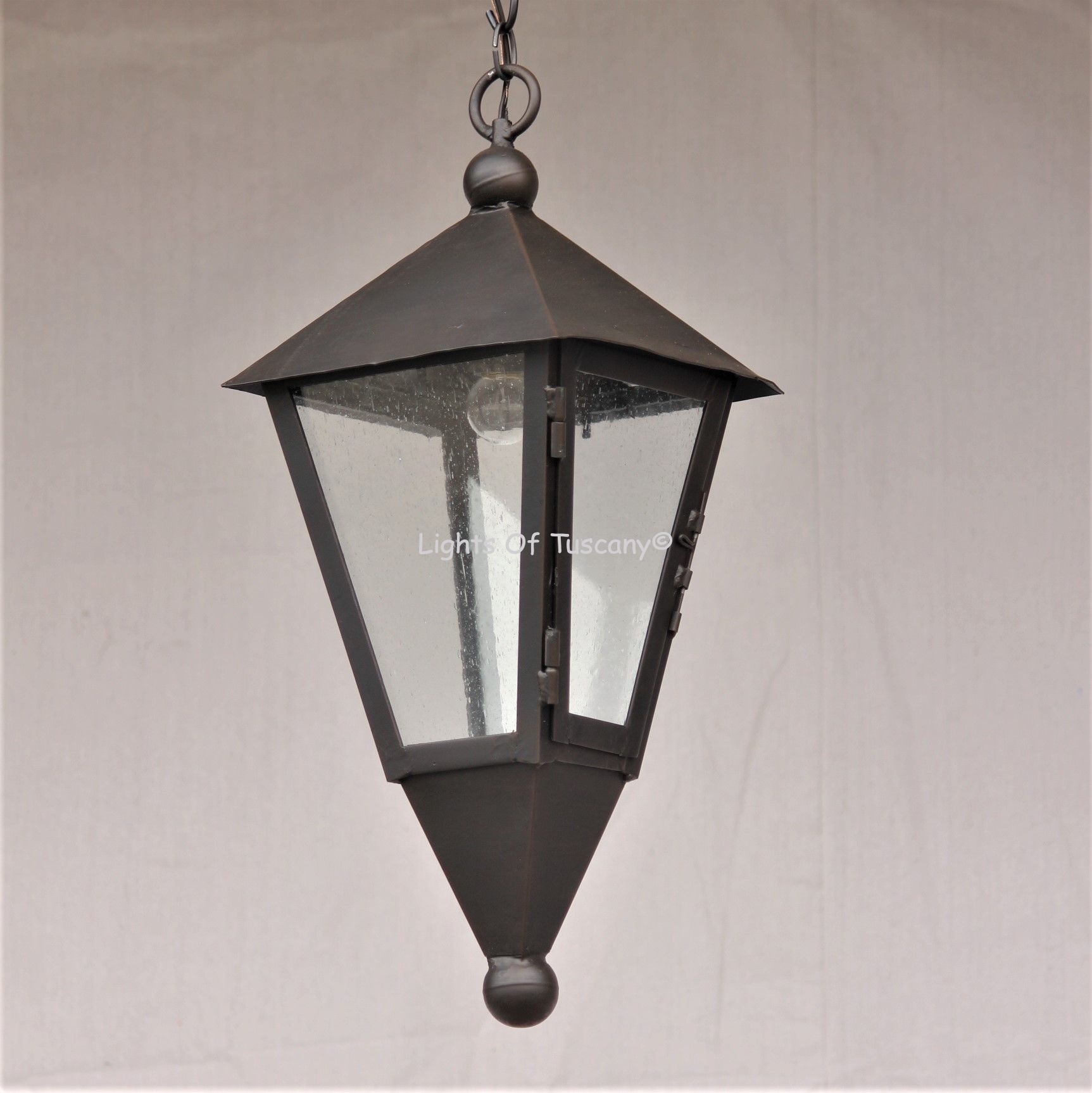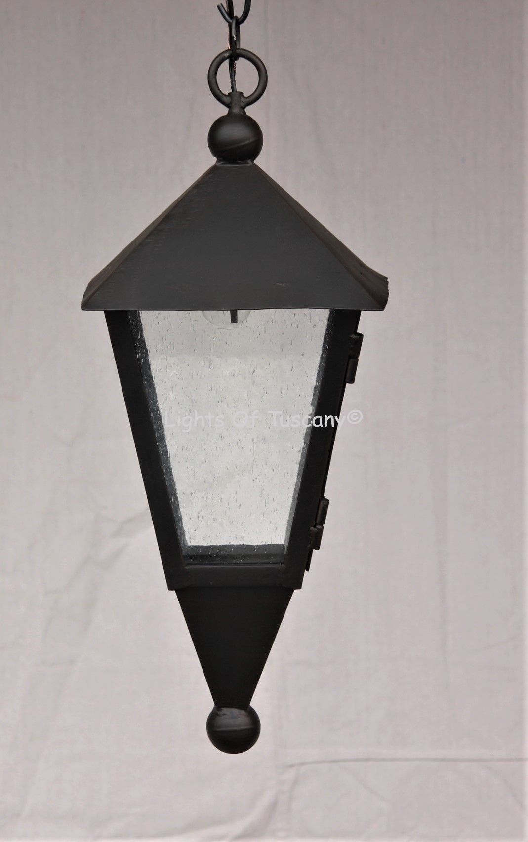 This beautiful hanging light is authentic hand forged wrought iron. Decorated with beautiful hand made iron accents. This fixture is perfect for entryways, dining room, over kitchen islands, outdoor covered areas (dry/damp rated locations), and any living space. Made to order in your choice finish and additional available options at check out.