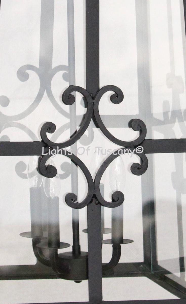 This beautiful hanging light is authentic hand forged wrought iron. Decorated with beautiful hand made iron accents. This fixture is perfect for entryways, dining room, over kitchen islands, outdoor covered areas (dry/damp rated locations), and any living space. Made to order in your choice finish and additional available options at check out.