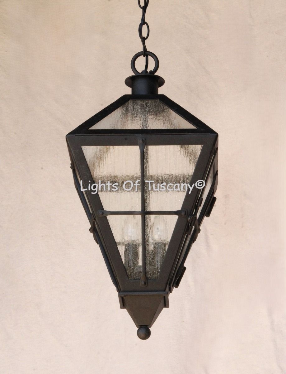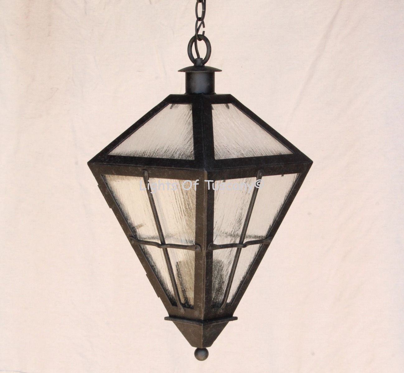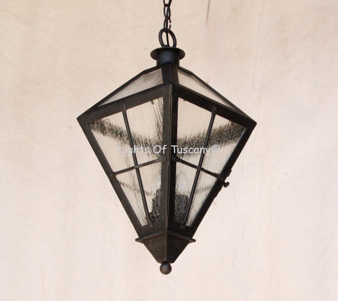 This beautiful hanging light is authentic hand forged wrought iron. Decorated with beautiful hand made iron accents. This fixture is perfect for entryways, dining room, over kitchen islands, outdoor covered areas (dry/damp rated locations), and any living space. Made to order in your choice finish and additional available options at check out.
