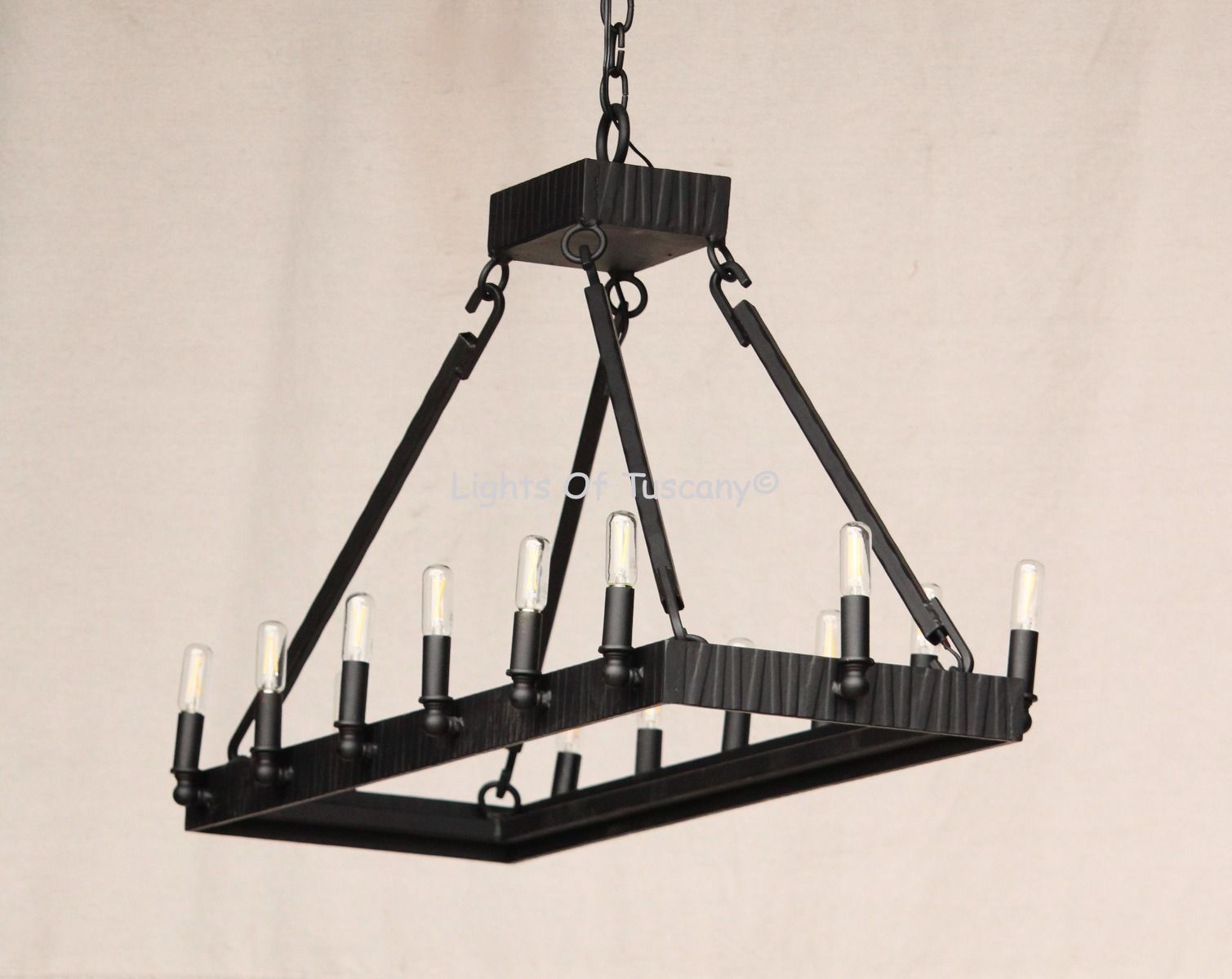 2392-12 Wrought Iron Contemporary Style Linear Chandelier