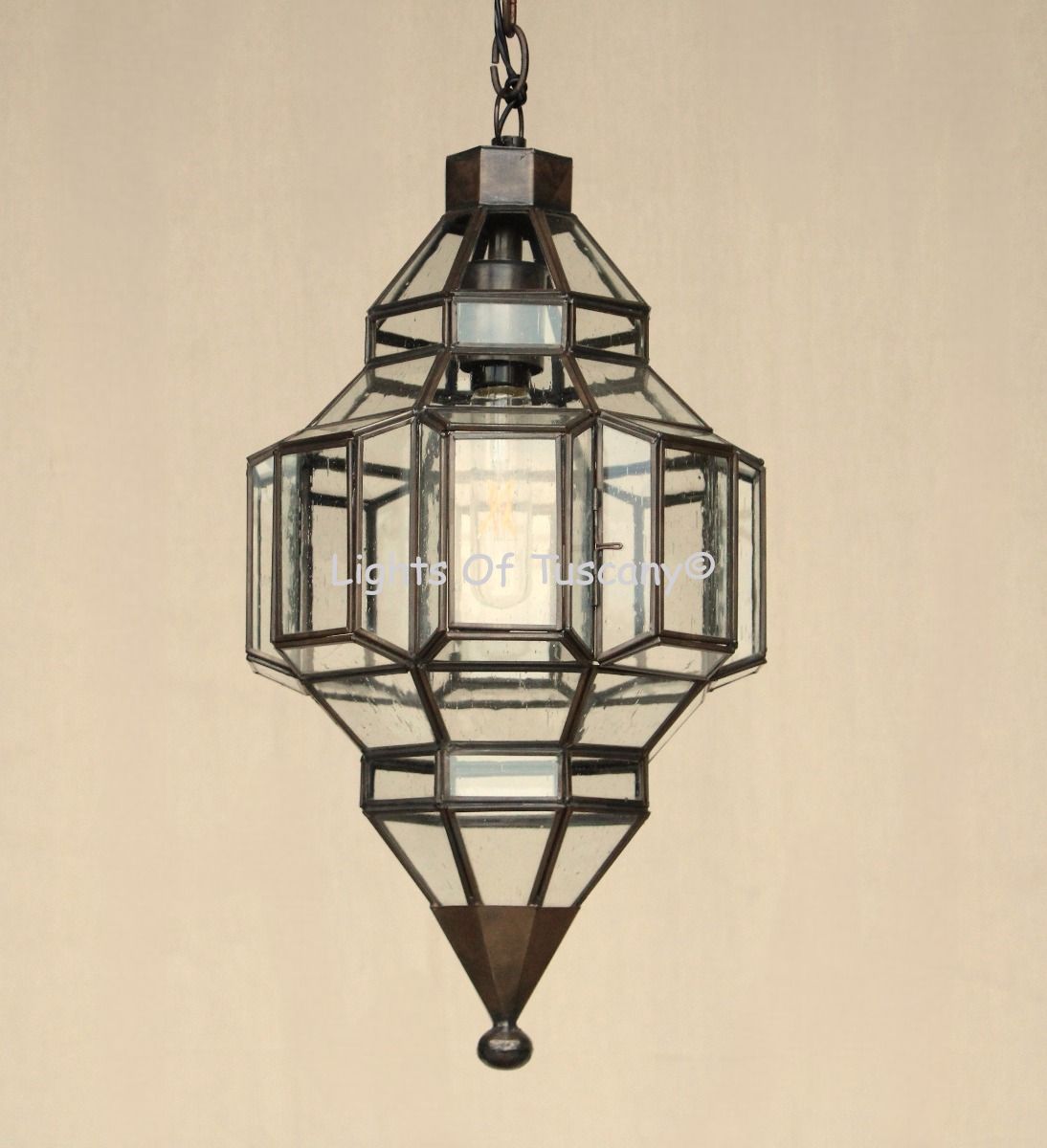 Only available in the finish and glass shown. Dark bronze finish clear seedy glass.