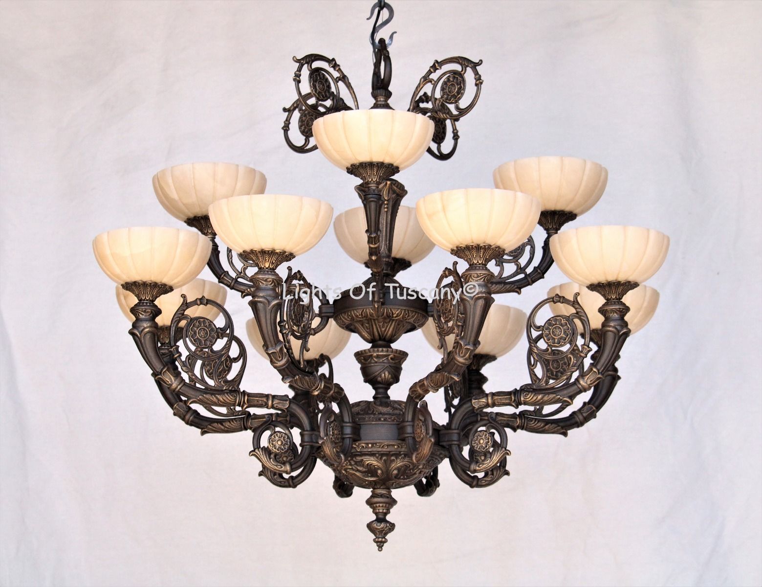 4226-12 Antique European Brass Chandelier with Real Stone Shades