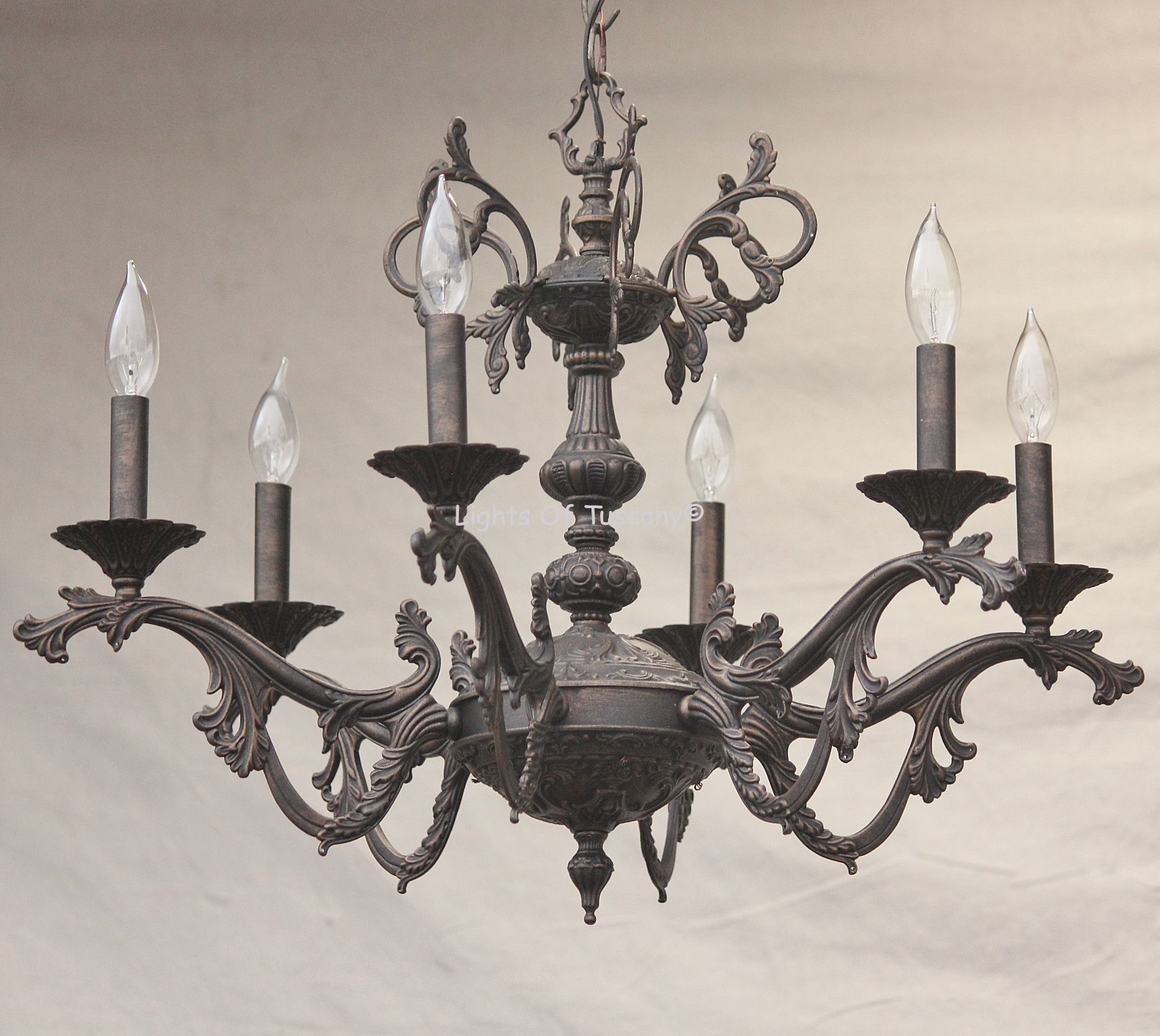 This Vintage look is seen with Antique Bronze Finish. Please see our options section for all the Finish colors and Candle choices. Weight 35 LBS ; Dimensions Height: 20" Width: 27” ; Uses 6 candelabra base E12 LED light bulbs, 7W/60W equivalent, dimmable, bulbs not included ; Contact Customer Service at 619-276-5267 to answer other questions.