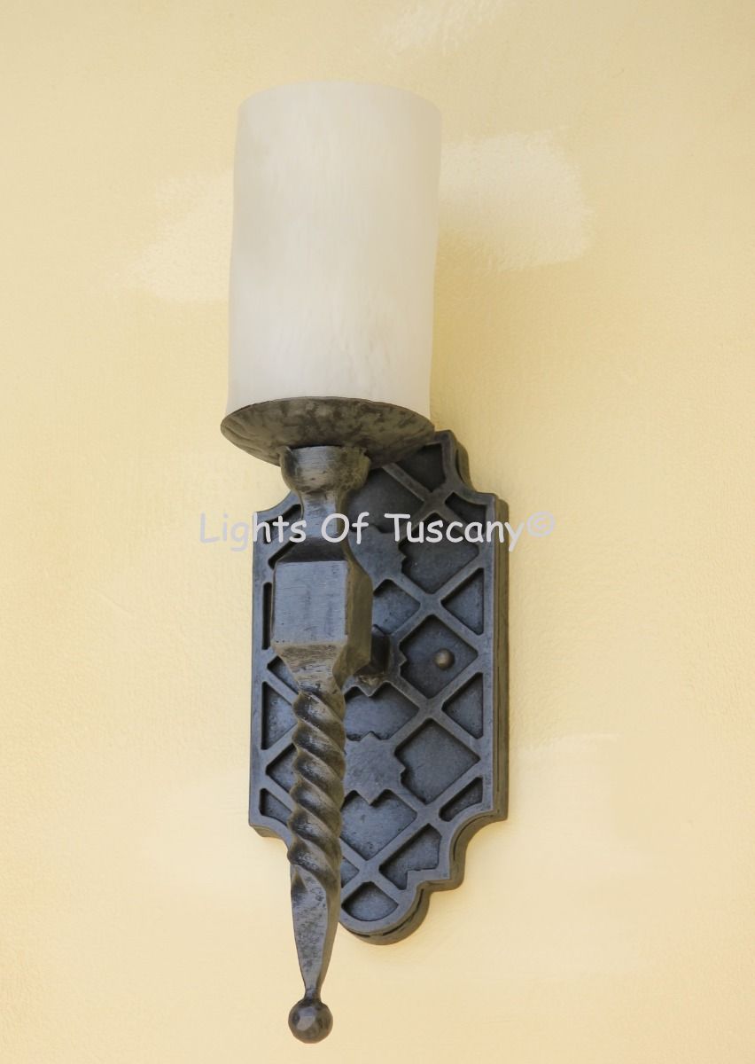 This beautiful hand crafted outdoor wall light is made of all authentic hand forged wrought iron. All our fixtures are hand painted and available in any of our finish options. This fixture is perfect for garage lighting, outdoor walls, backyard and patio lighting.