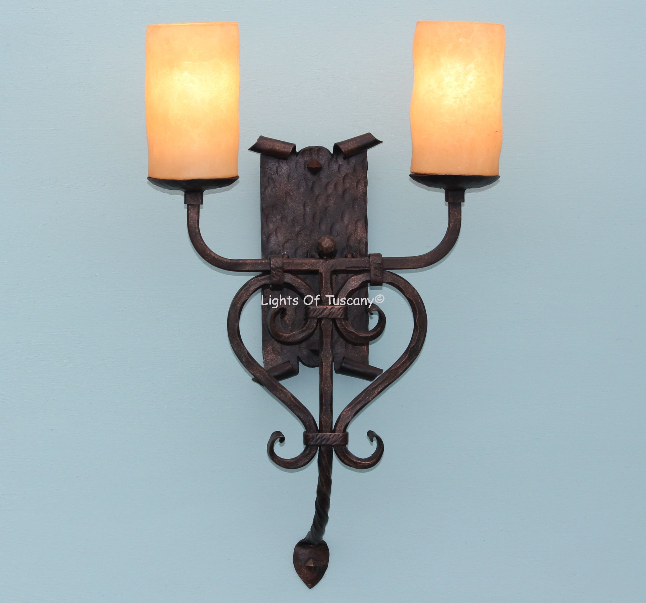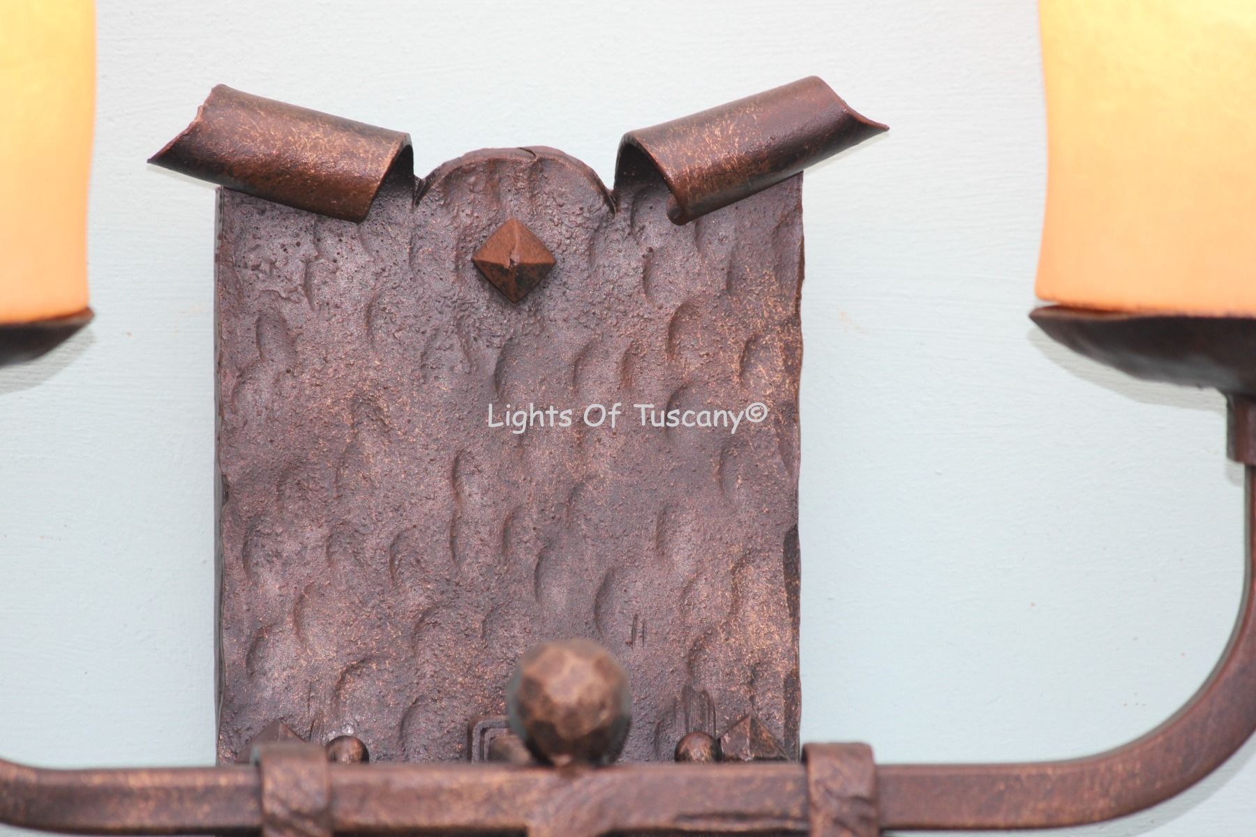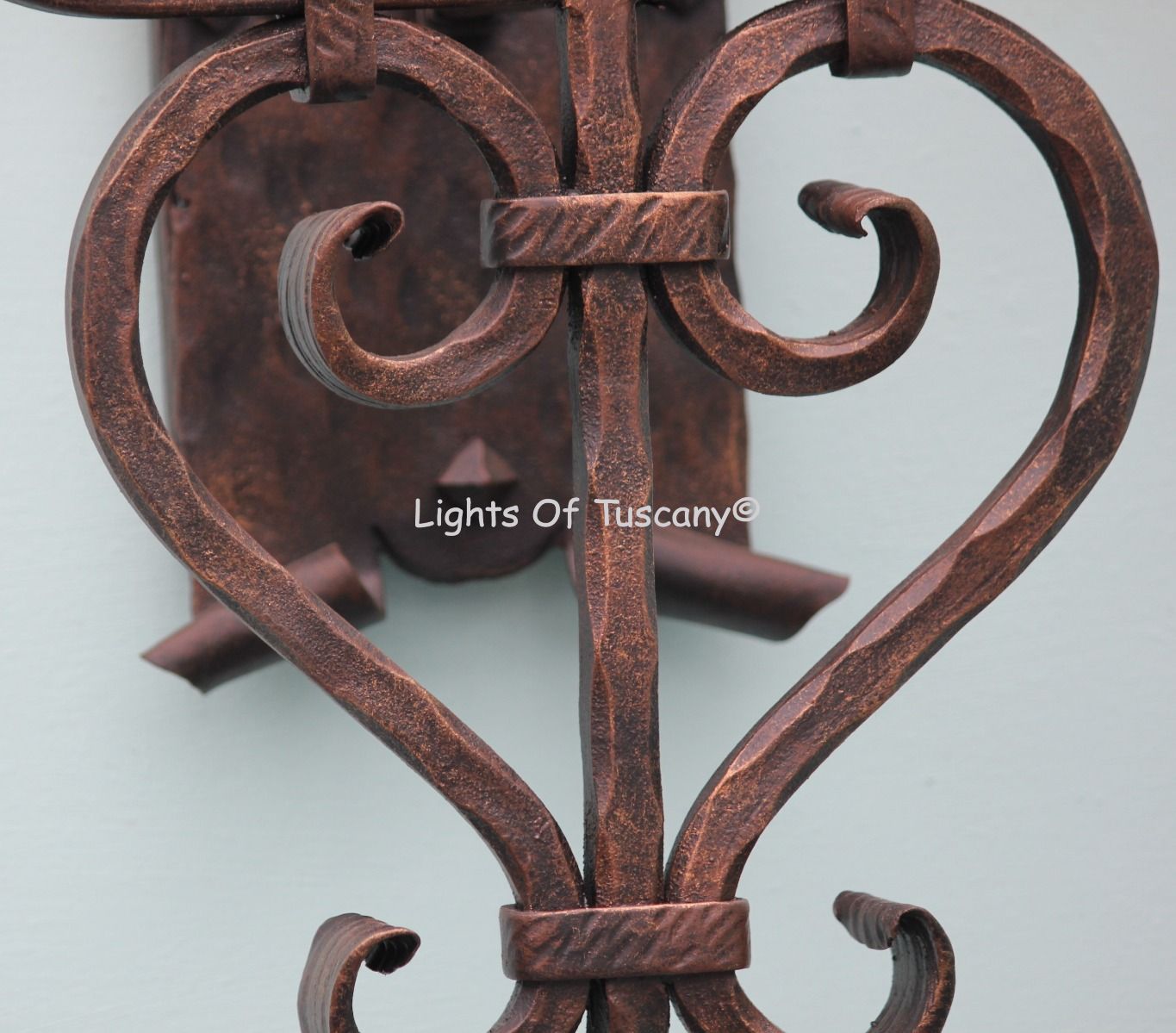 This beautiful hand crafted outdoor wall light is made of all authentic hand forged wrought iron. All our fixtures are hand painted and available in any of our finish options. This fixture is perfect for garage lighting, outdoor walls, backyard and patio lighting.