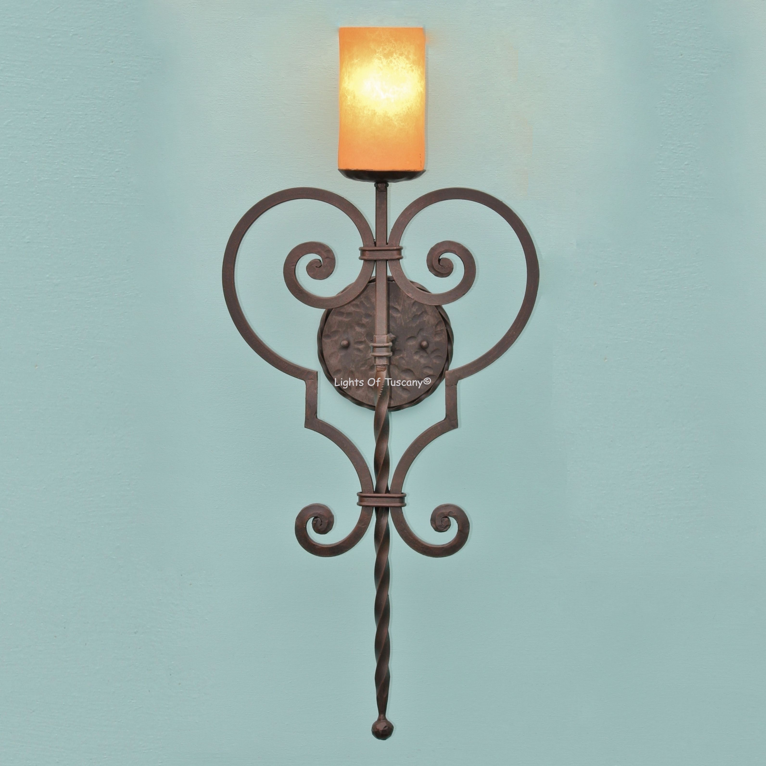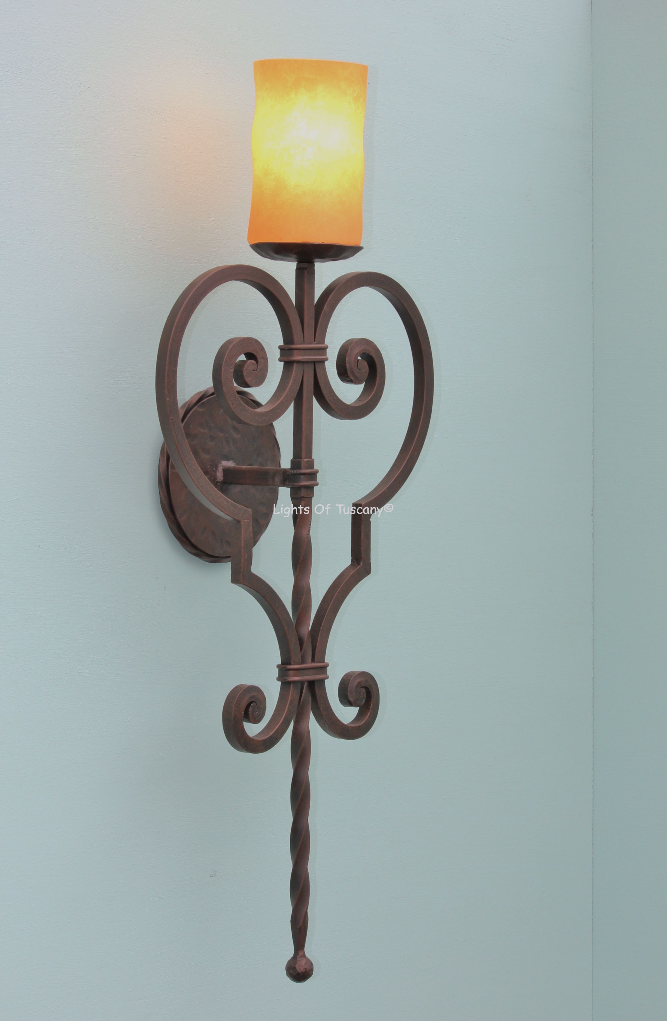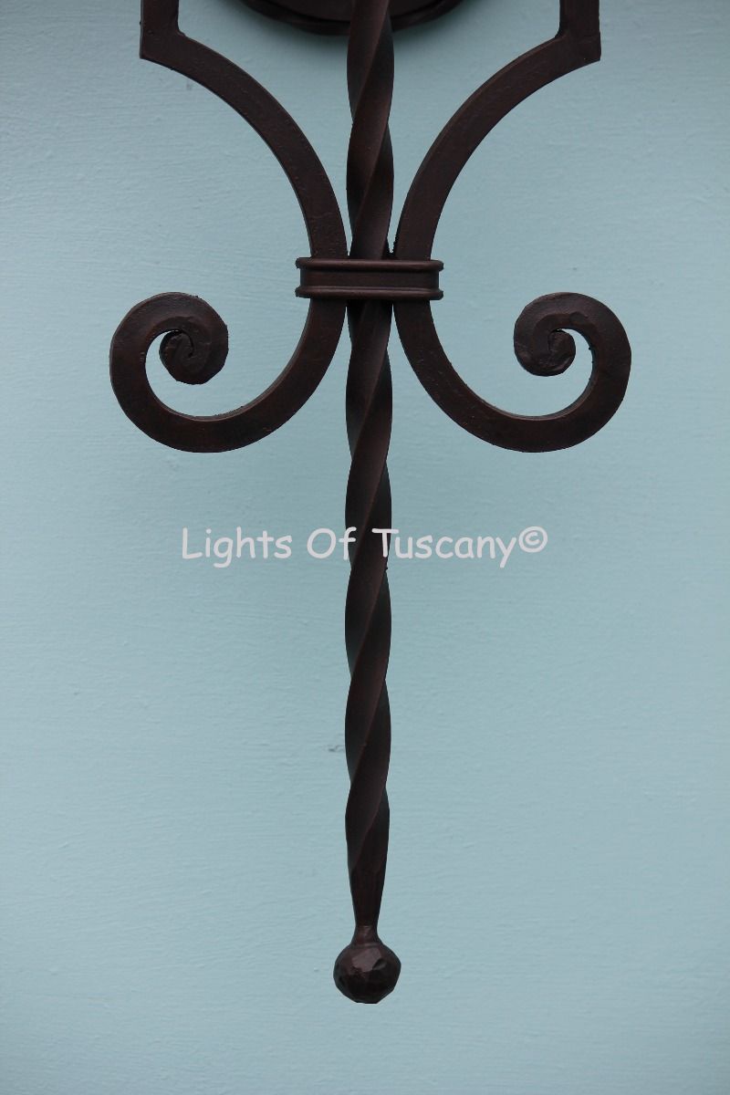 This beautiful hand crafted outdoor wall light is made of all authentic hand forged wrought iron. All our fixtures are hand painted and available in any of our finish options. This fixture is perfect for garage lighting, outdoor walls, backyard and patio lighting.