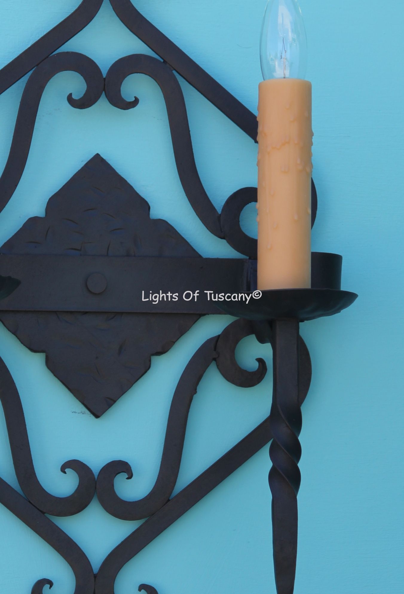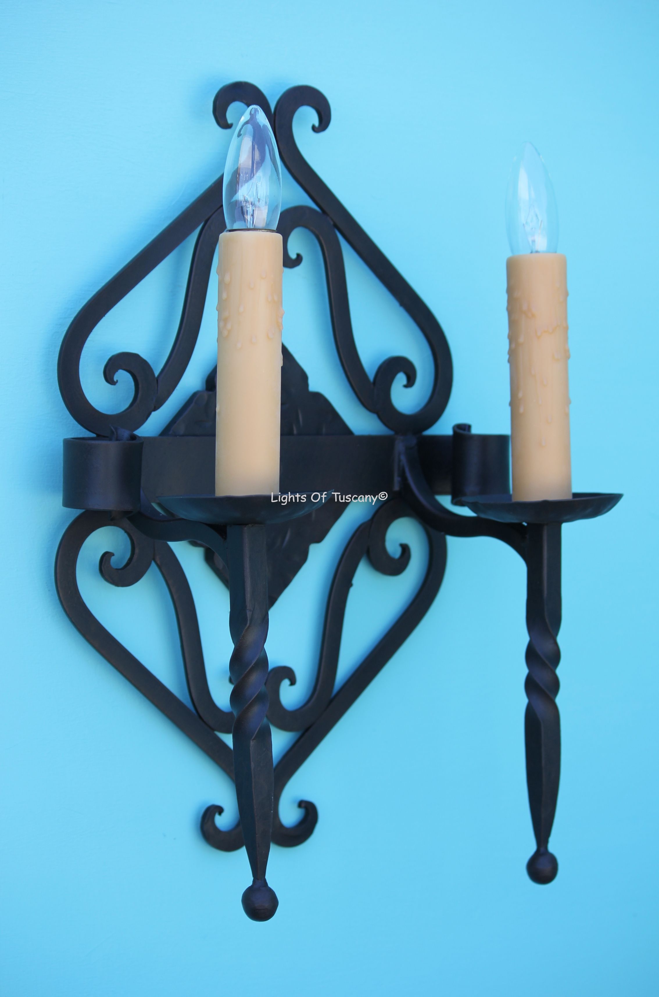 This beautiful hand crafted outdoor wall light is made of all authentic hand forged wrought iron. All our fixtures are hand painted and available in any of our finish options. This fixture is perfect for garage lighting, outdoor walls, backyard and patio lighting.