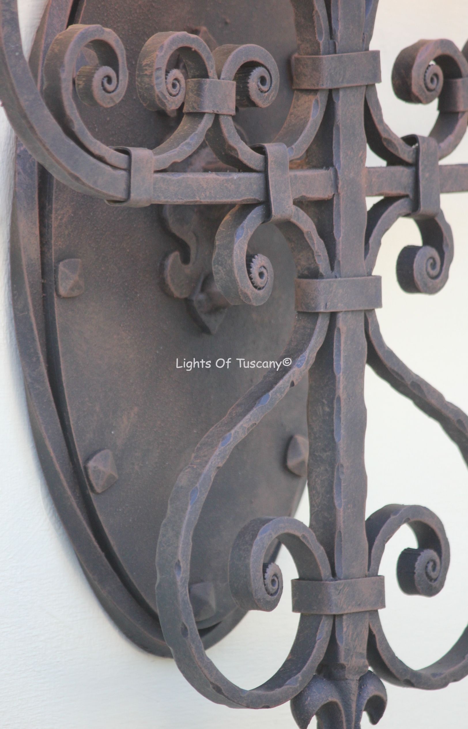 Beautiful authentic hand forged wrought iron lighting fixture. This wall sconce is perfect as a hallway light, bedside lighting, bathroom vanity or any living space. Available in your selection of finish options.