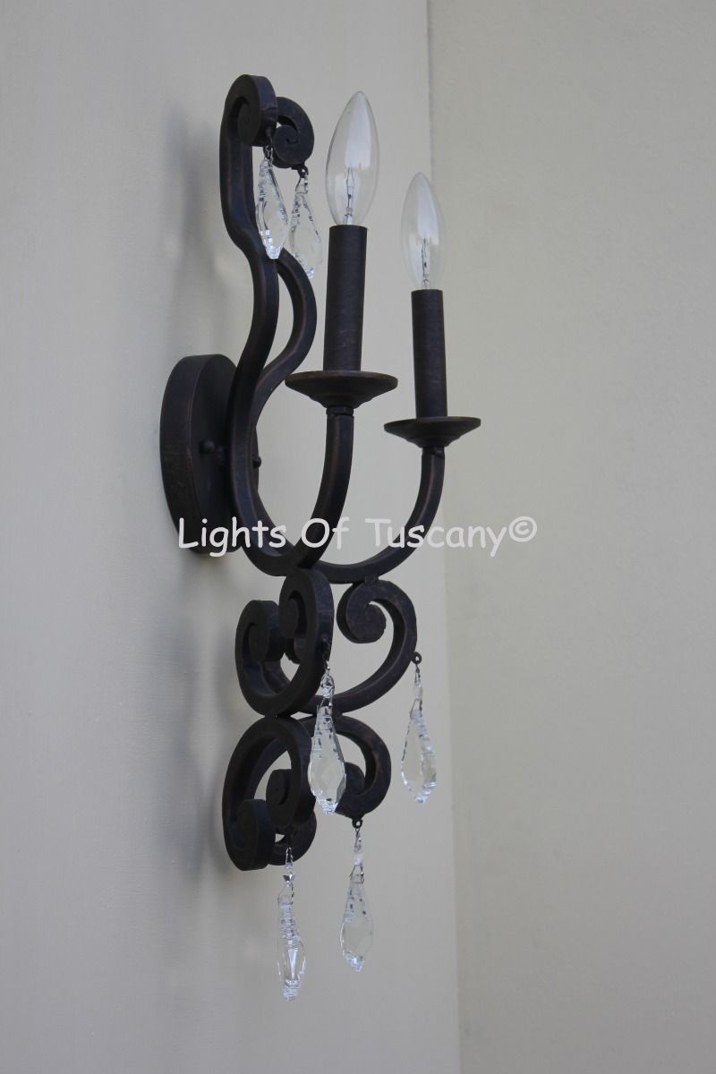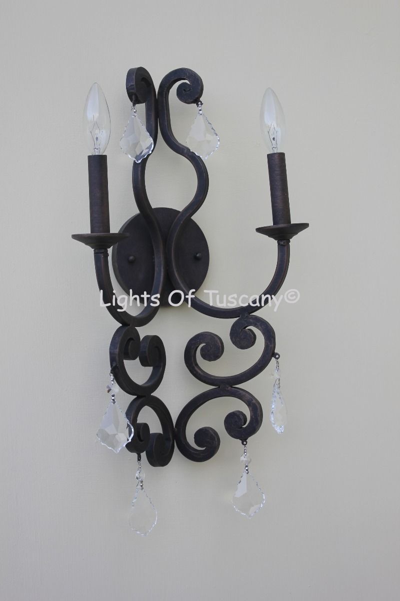5208-2 Tuscan-Wrought Iron- Crystal Wall Lamp