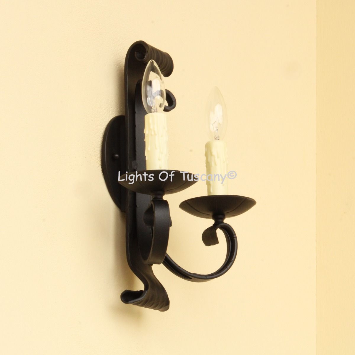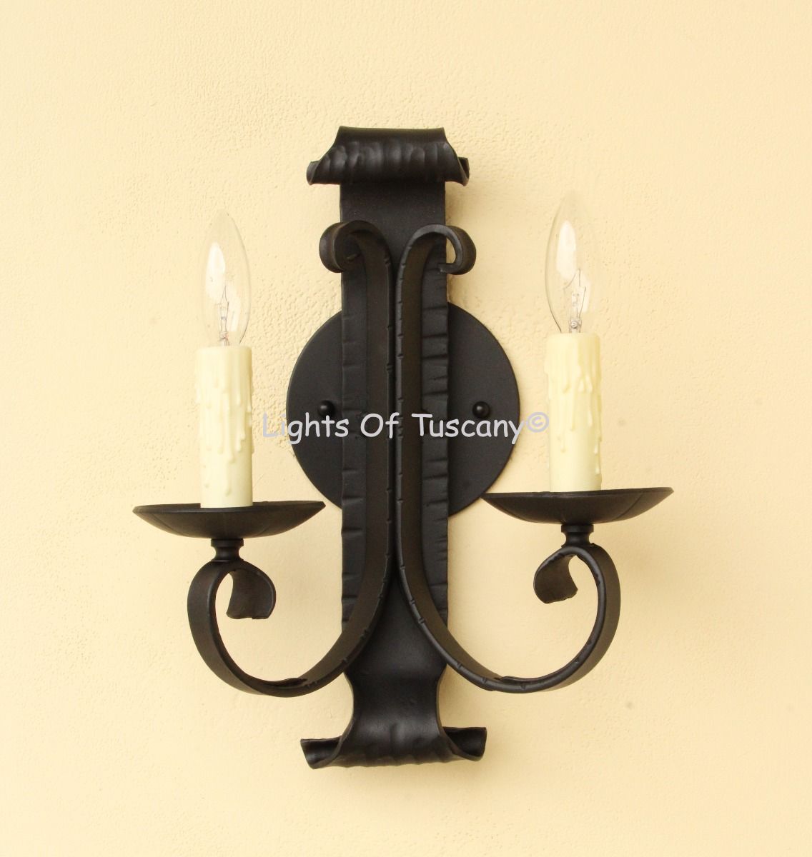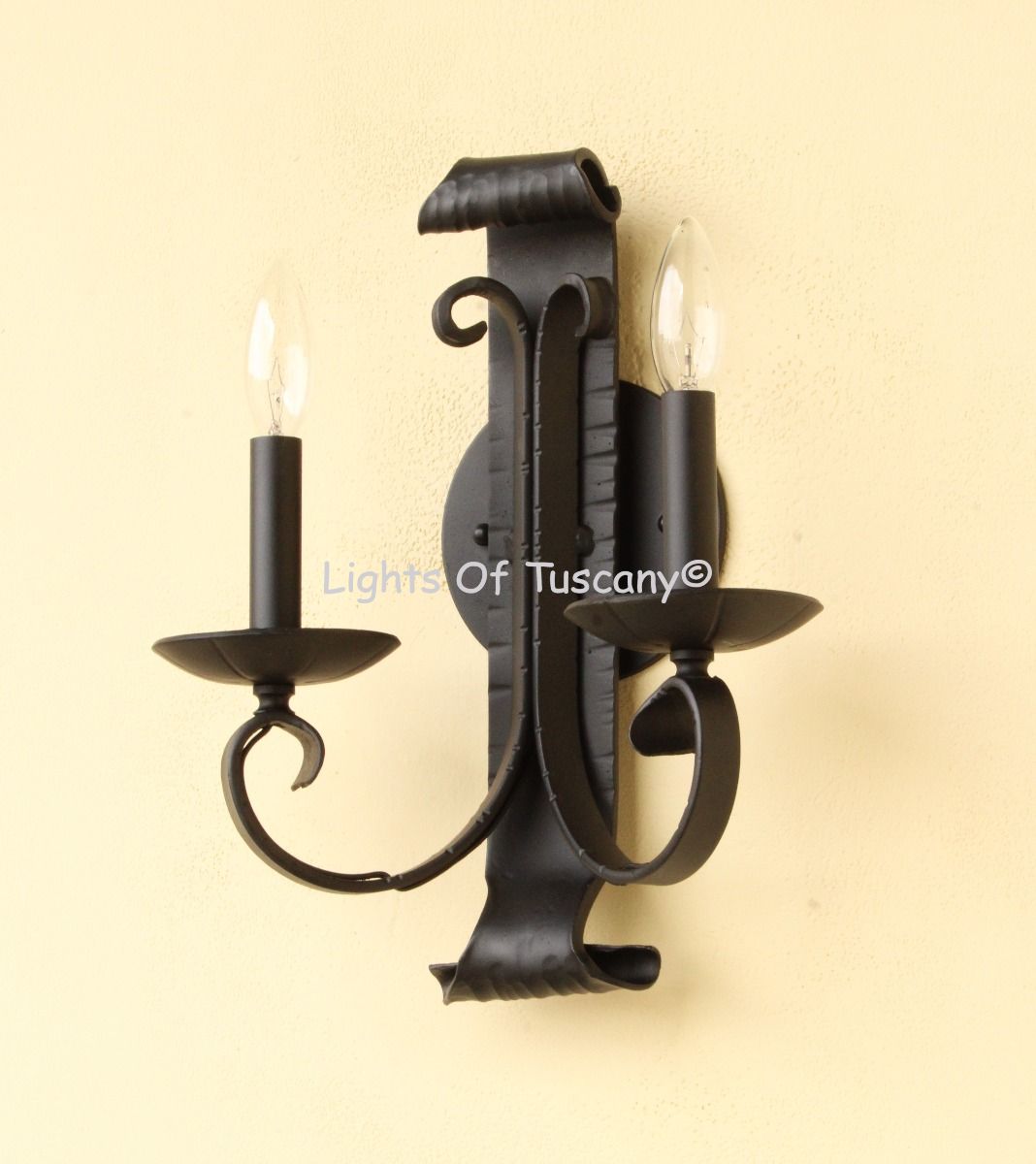 This beautiful hand crafted outdoor wall light is made of all authentic hand forged wrought iron. All our fixtures are hand painted and available in any of our finish options. This fixture is perfect for garage lighting, outdoor walls, backyard and patio lighting.