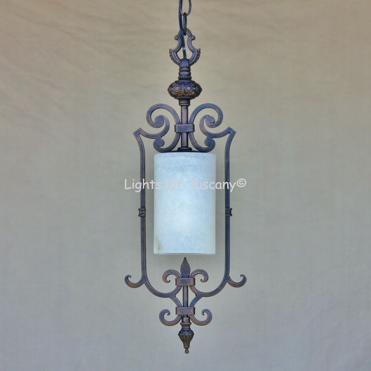 Spanish Revival mini pendant. Height : 24", Width: 9"