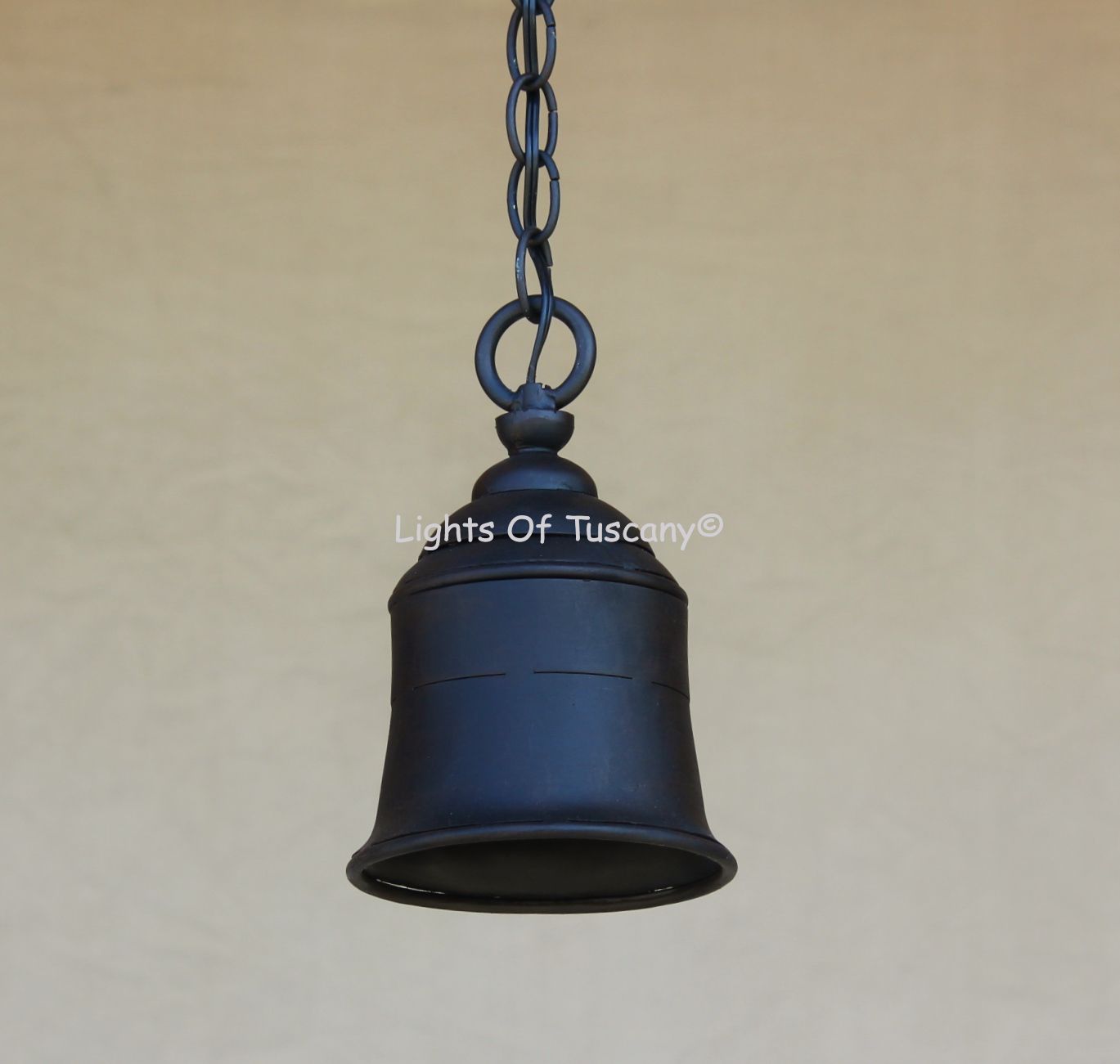 This beautiful rustic bell shaped pendant light is authentic hand forged wrought iron. Perfect for your rustic, farmhouse style design, this pendant can be used inside our outside. This fixture is perfect for entryways, dining room, over kitchen islands, outdoor covered areas (dry/damp rated locations), and any living space. Made to order in your choice finish and additional available options at check out.