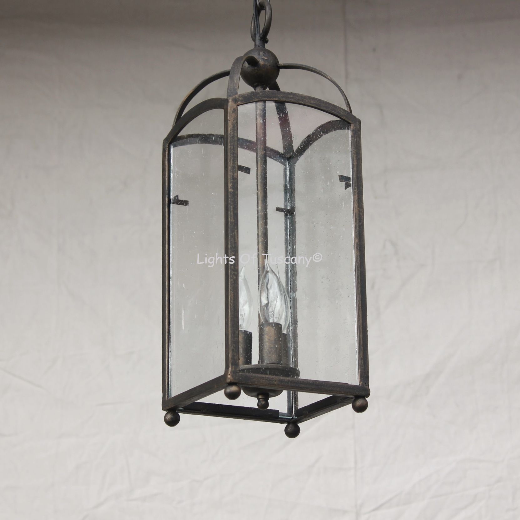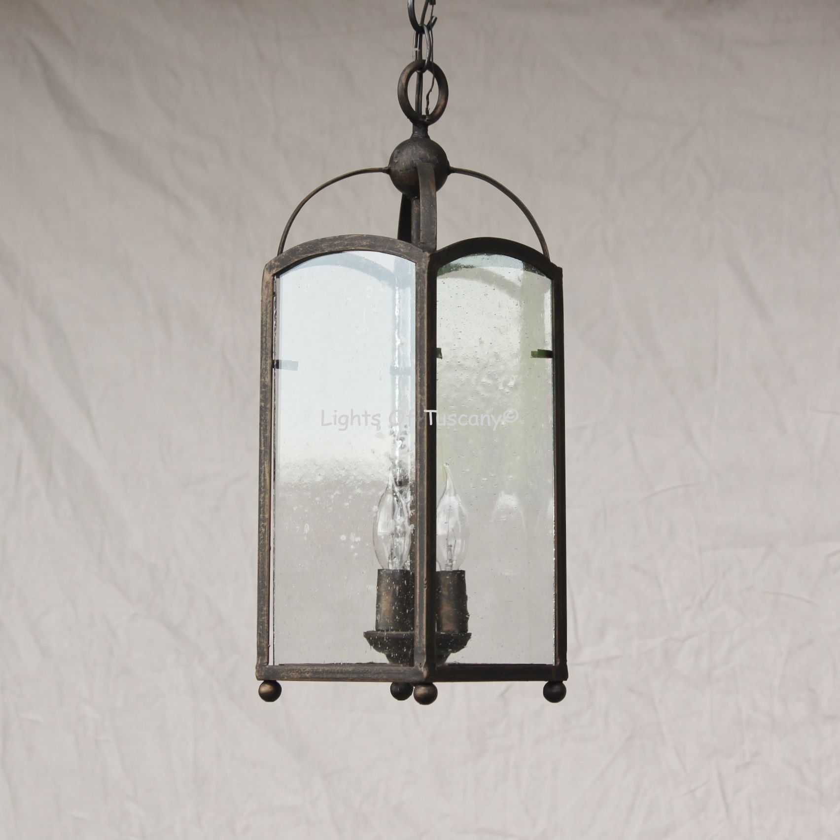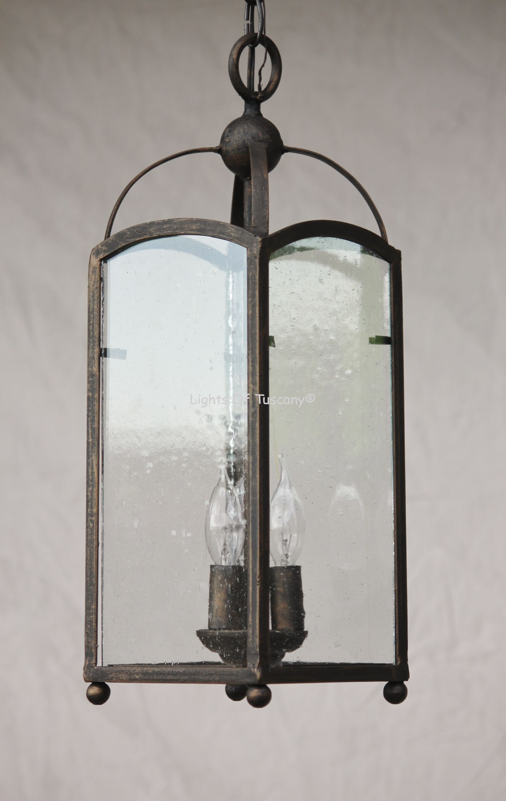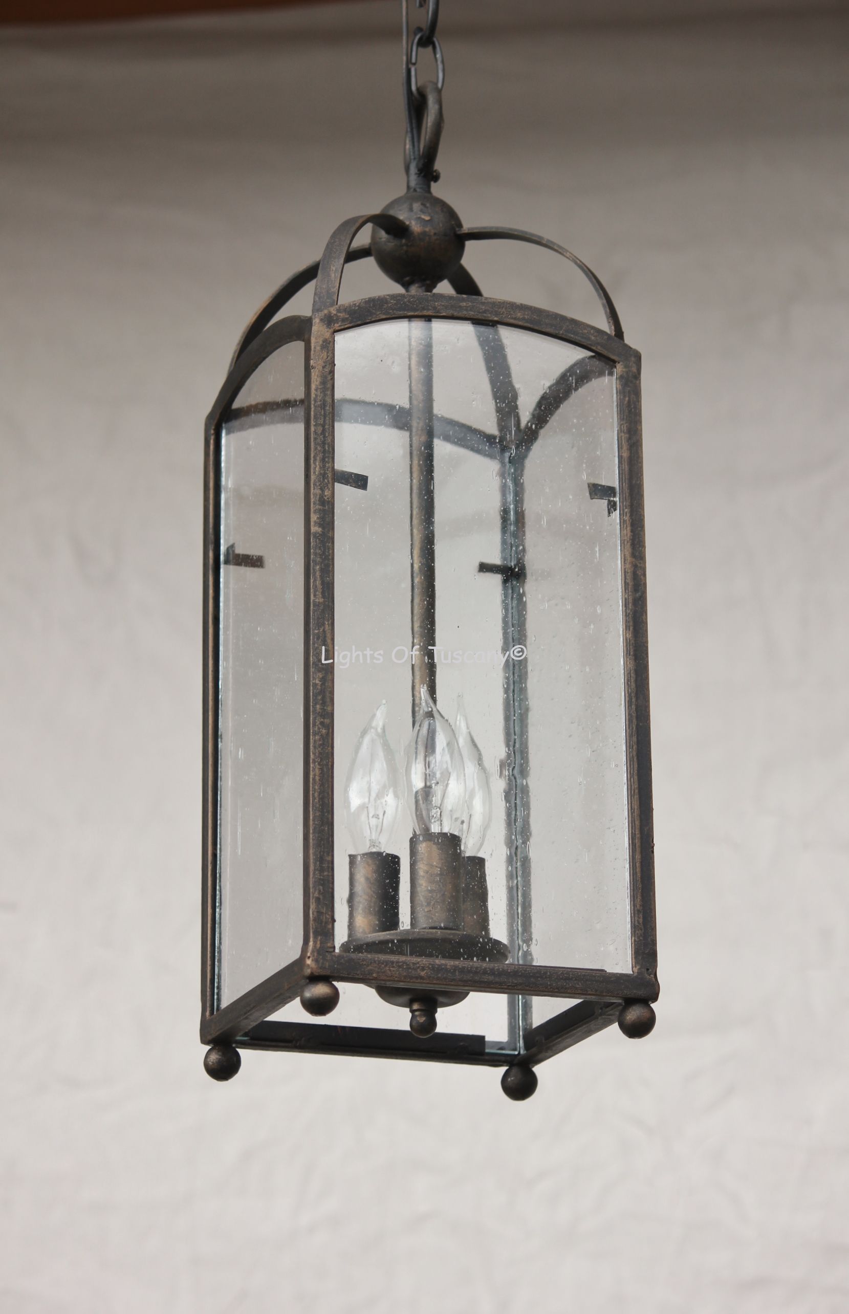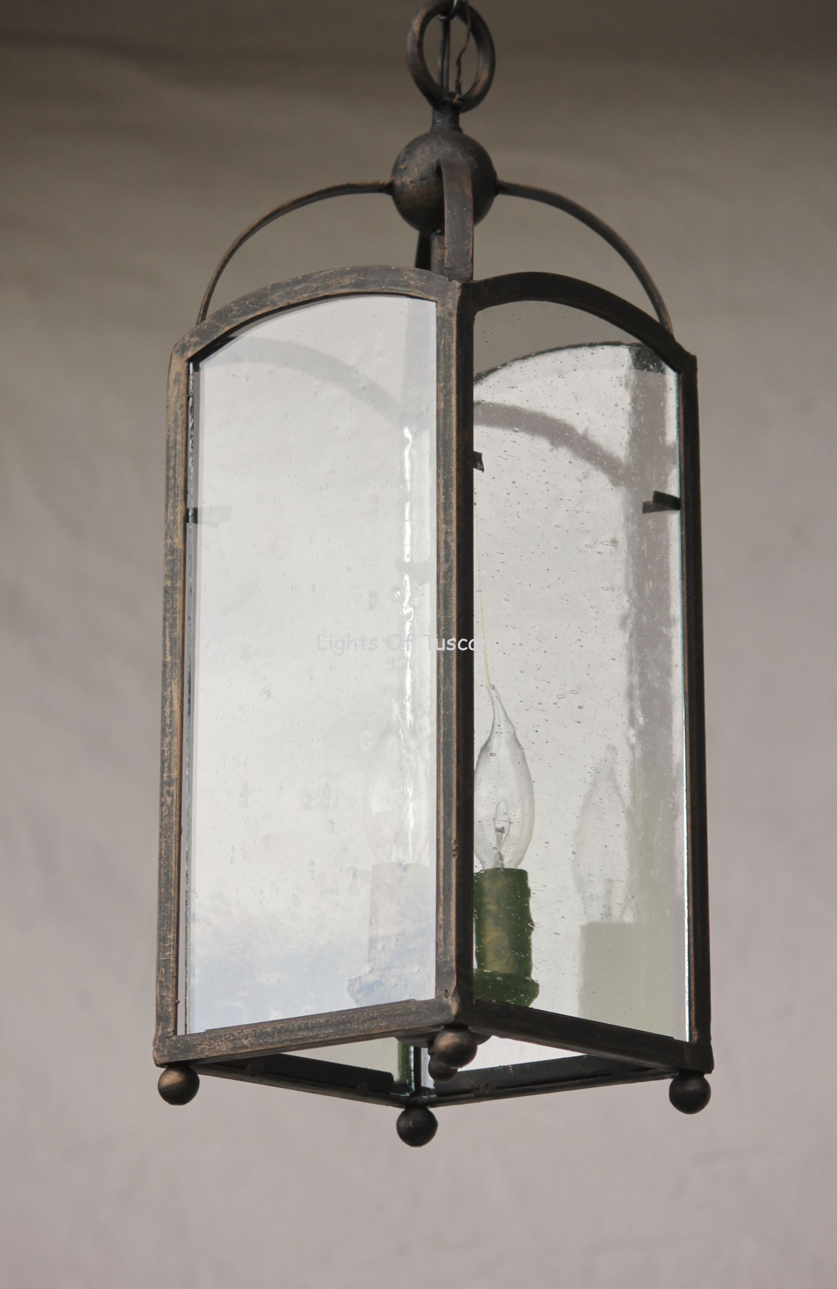 Contemporary wrought Iron Tuscan Style Pendant-Lantern. Suitable for country Italian and contemporary Mediterranean settings.
