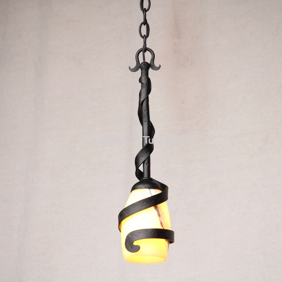 6179-1ONX Wrought Iron Onyx Indoor Hanging Pendant Light