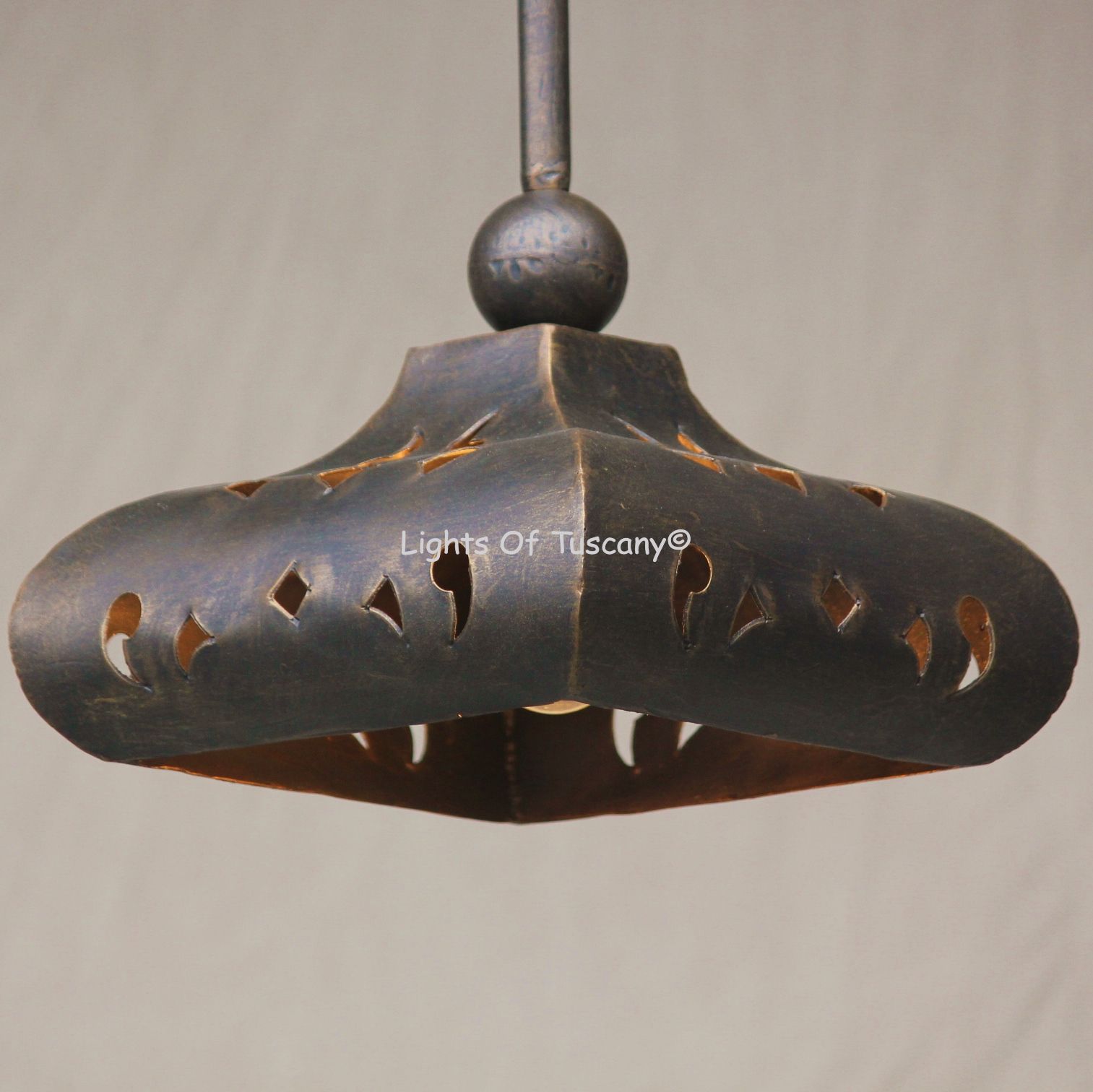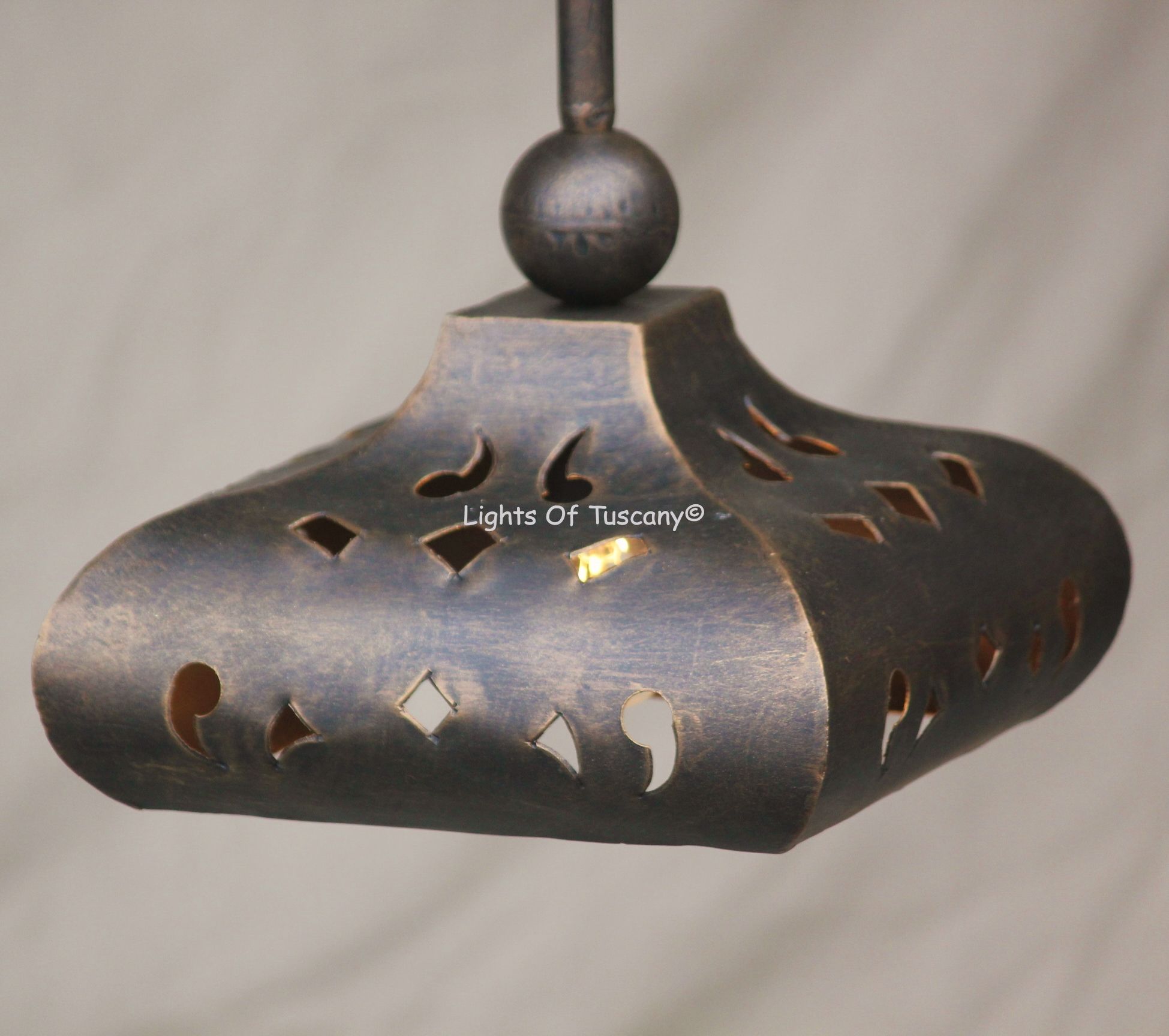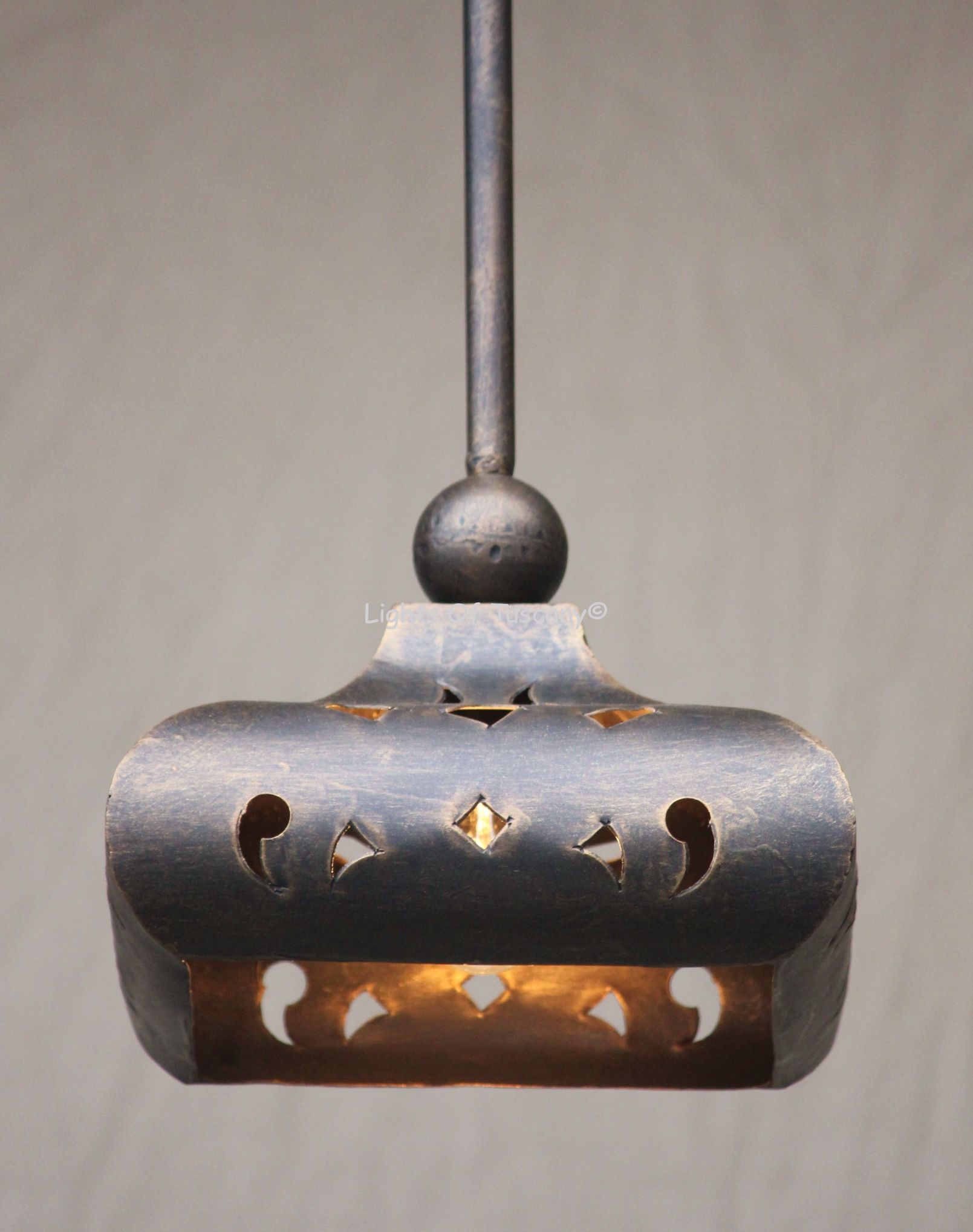 6310-1 Spanish Hacienda Mini Pendant Light. This fixture is made from hand forged wrought iron, and has beautiful Spanish-Mexican inspired designs. Perfect for over kitchen islands, bar lighting, commercial lighting, or any living space lighting. Made for indoor/outdoor covered use.