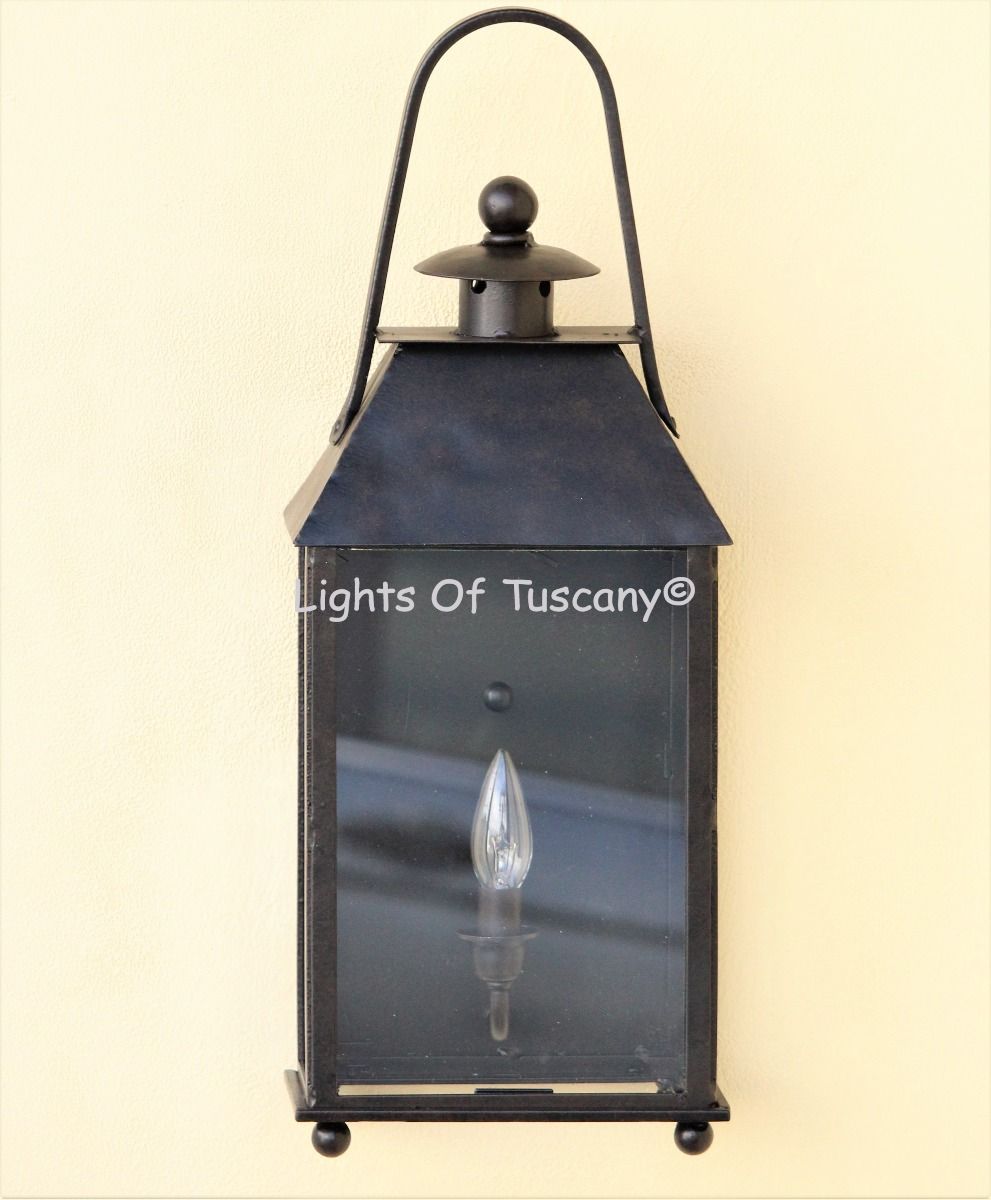 This beautiful hand crafted outdoor wall light is made of all authentic hand forged wrought iron. All our fixtures are hand painted and available in any of our finish options. This fixture is perfect for garage lighting, outdoor walls, backyard and patio lighting.