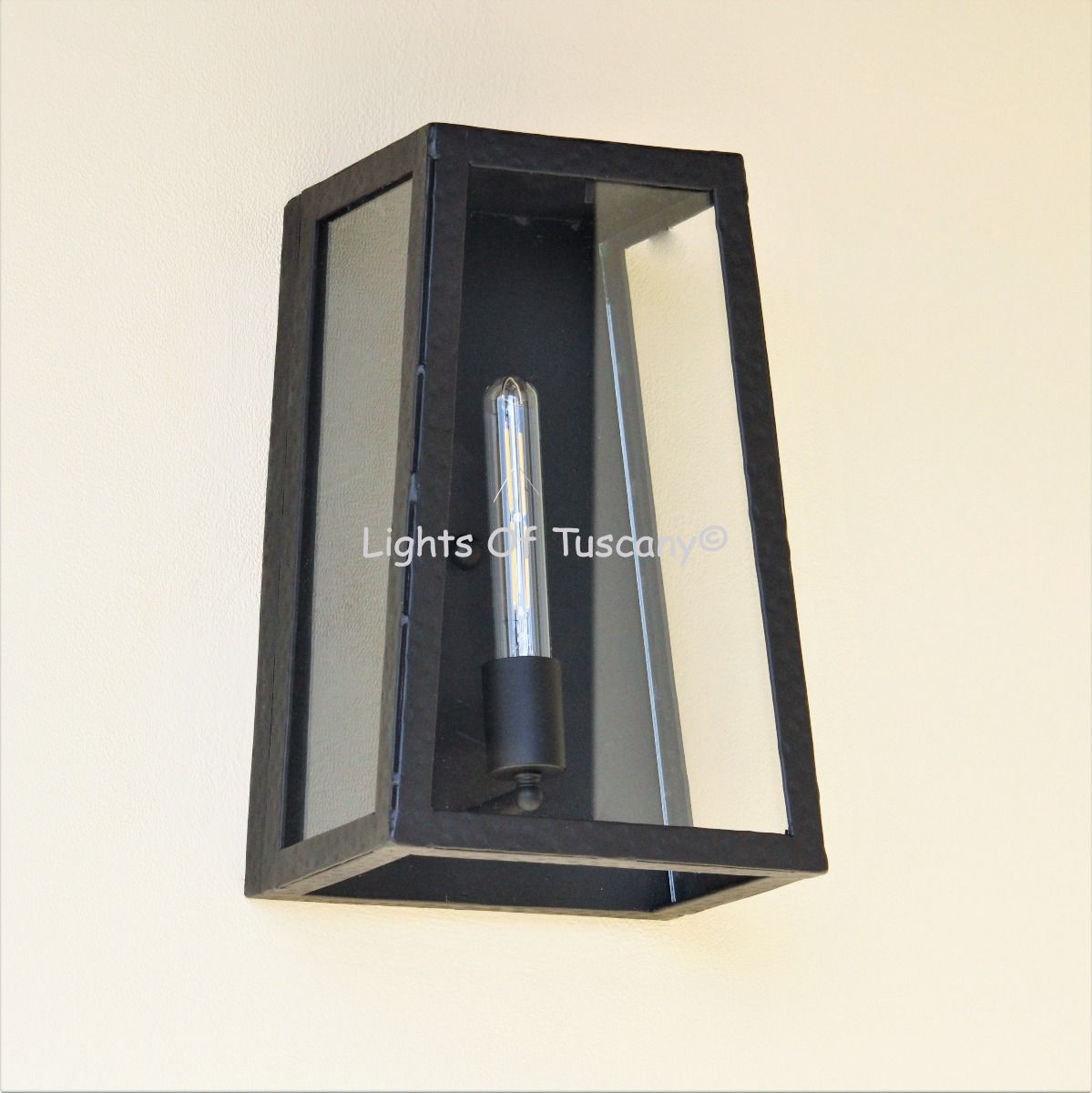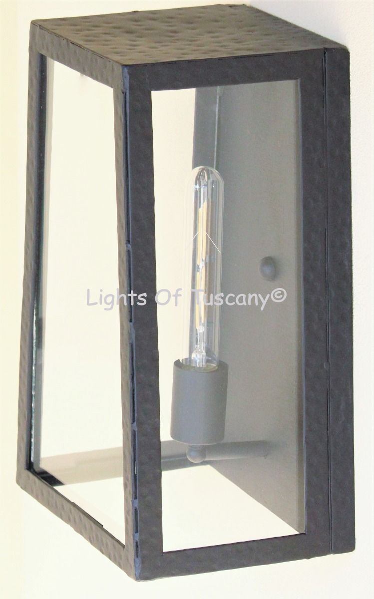 This beautiful hand crafted outdoor wall light is made of all authentic hand forged wrought iron. All our fixtures are hand painted and available in any of our finish options. This fixture is perfect for garage lighting, outdoor walls, backyard and patio lighting.
