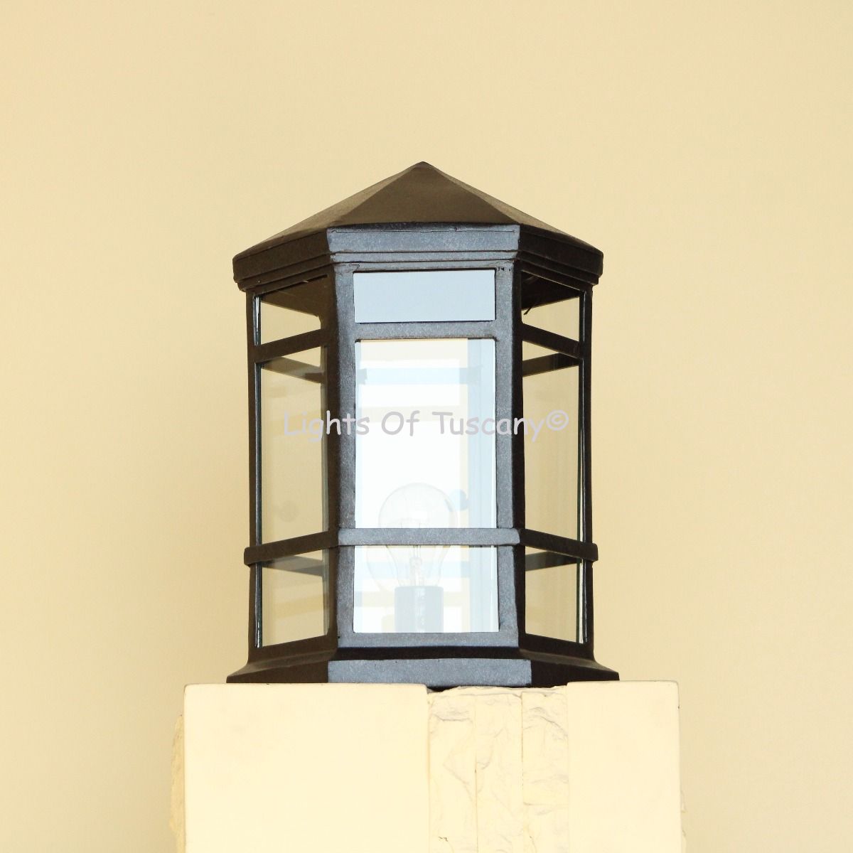This beautiful hand crafted outdoor post light is made of all authentic hand forged wrought iron. All our fixtures are hand painted and available in any of our finish options. Available for installation on posts and columns. Please see details below.