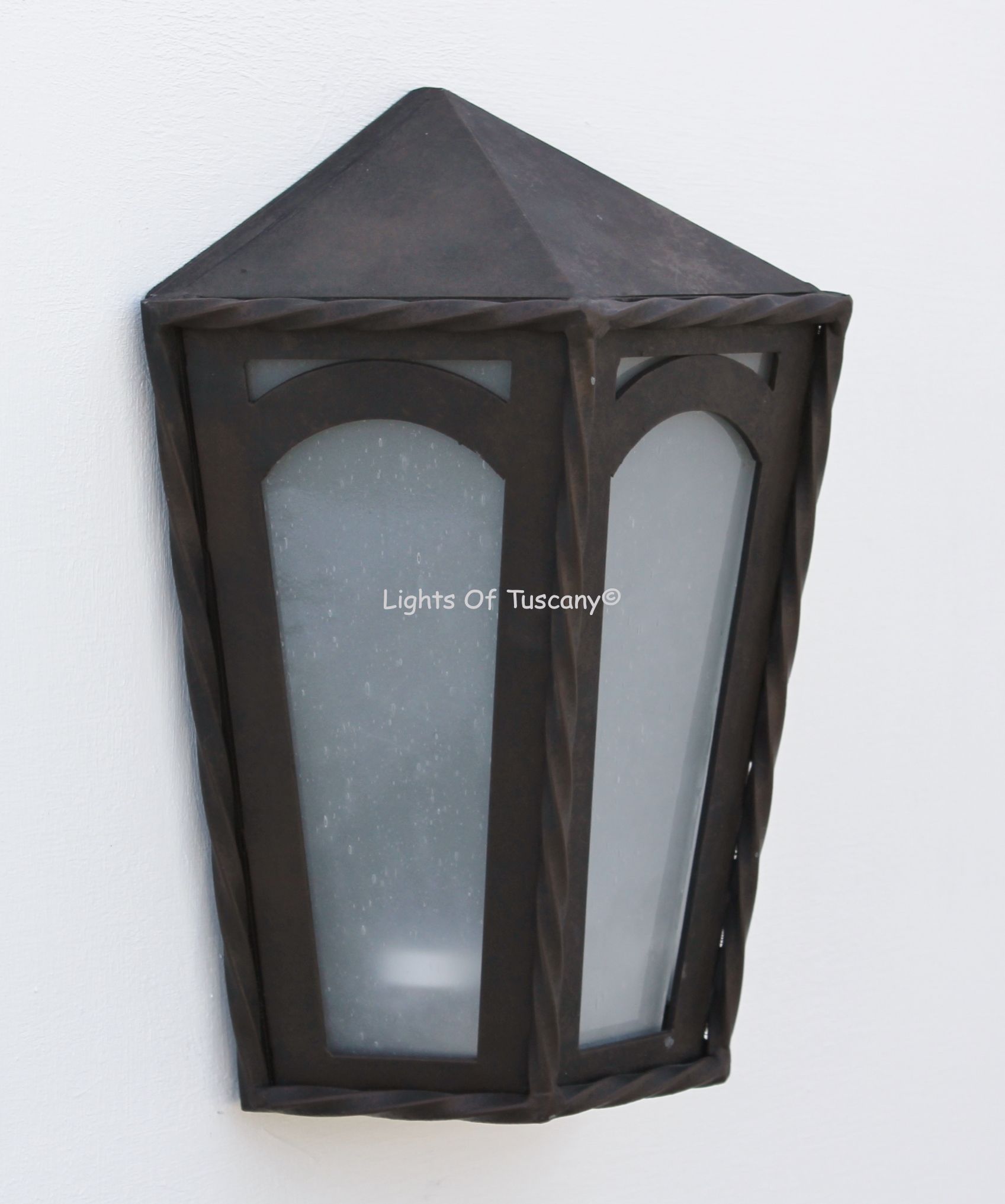This beautiful hand crafted outdoor wall light is made of all authentic hand forged wrought iron. All our fixtures are hand painted and available in any of our finish options. This fixture is perfect for garage lighting, outdoor walls, backyard and patio lighting.