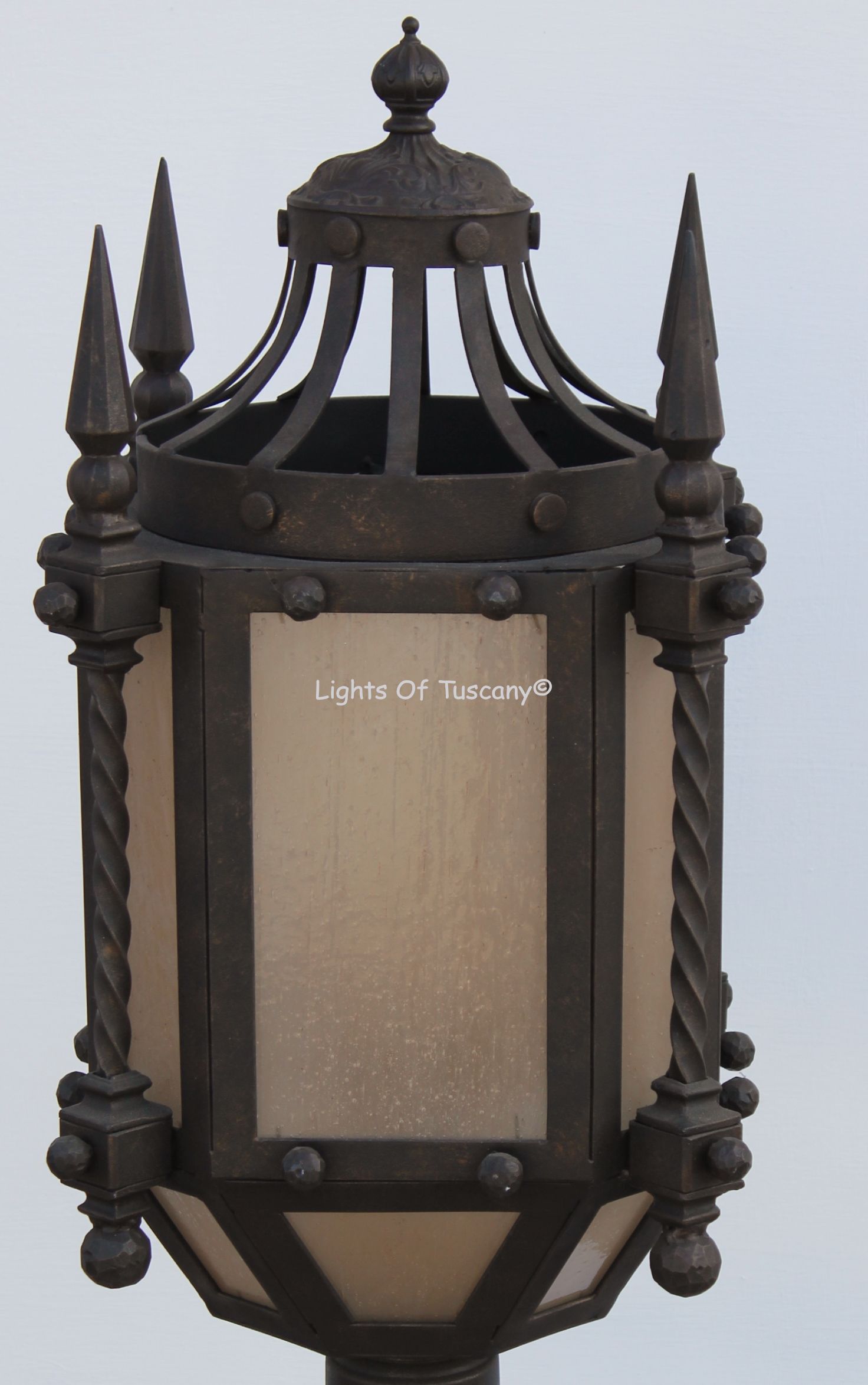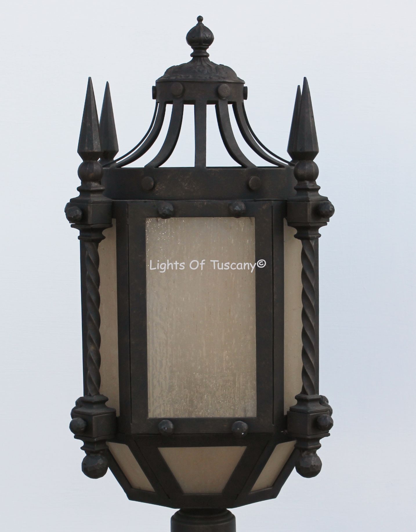 Hand Forged Wrought Iron Gothic Style Outdoor Lantern Post. Height : 26.5", Width: 13.5"