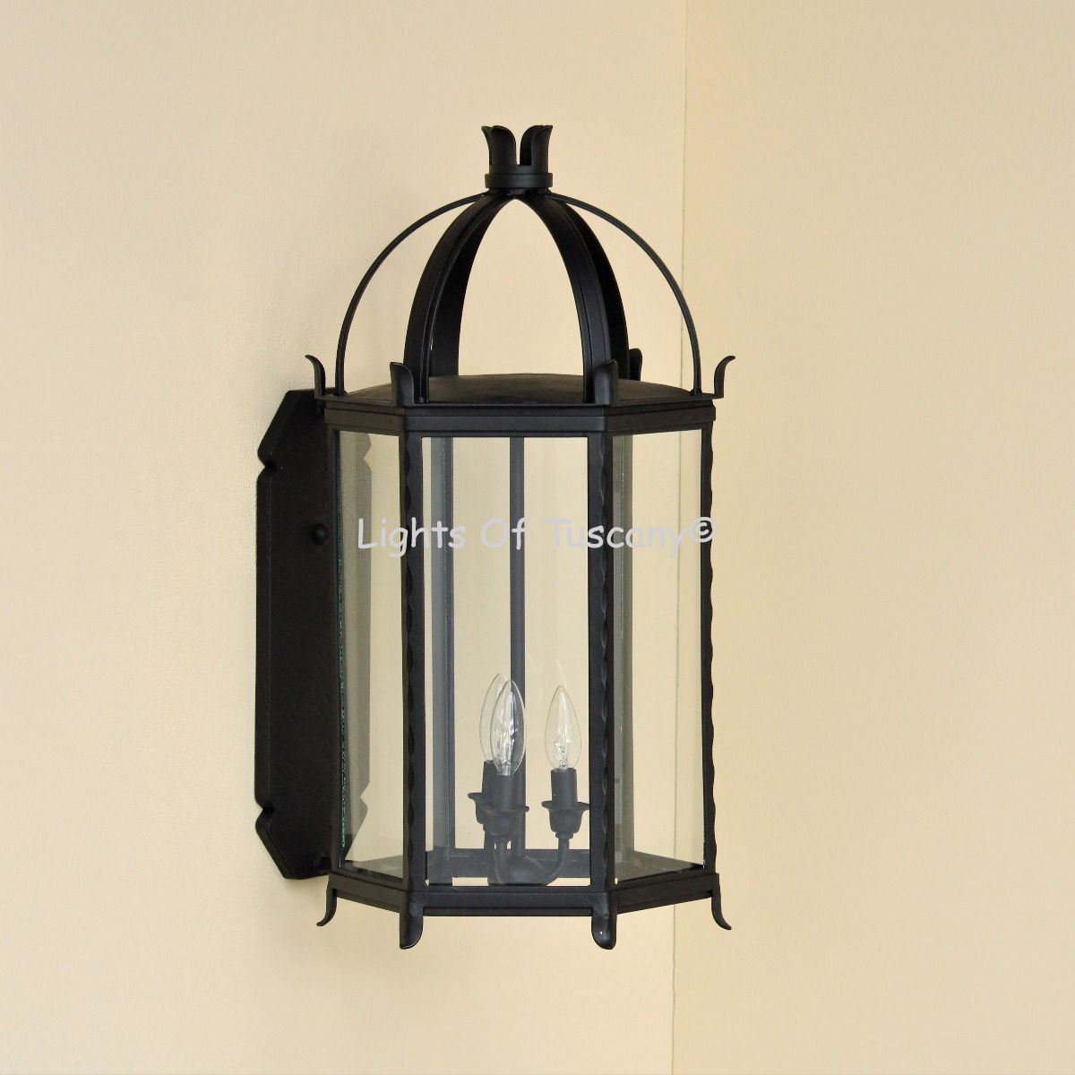 This beautiful hand crafted outdoor wall light is made of all authentic hand forged wrought iron. All our fixtures are hand painted and available in any of our finish options. This fixture is perfect for garage lighting, outdoor walls, backyard and patio lighting.