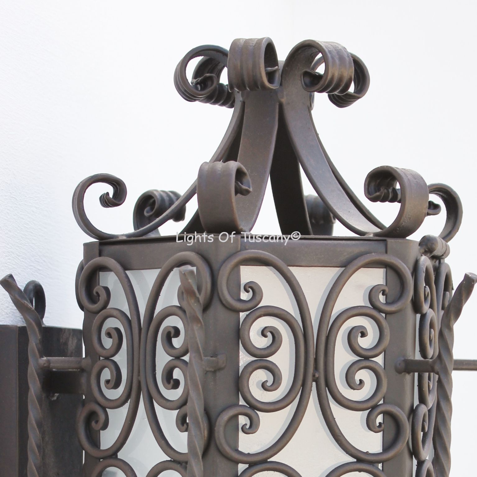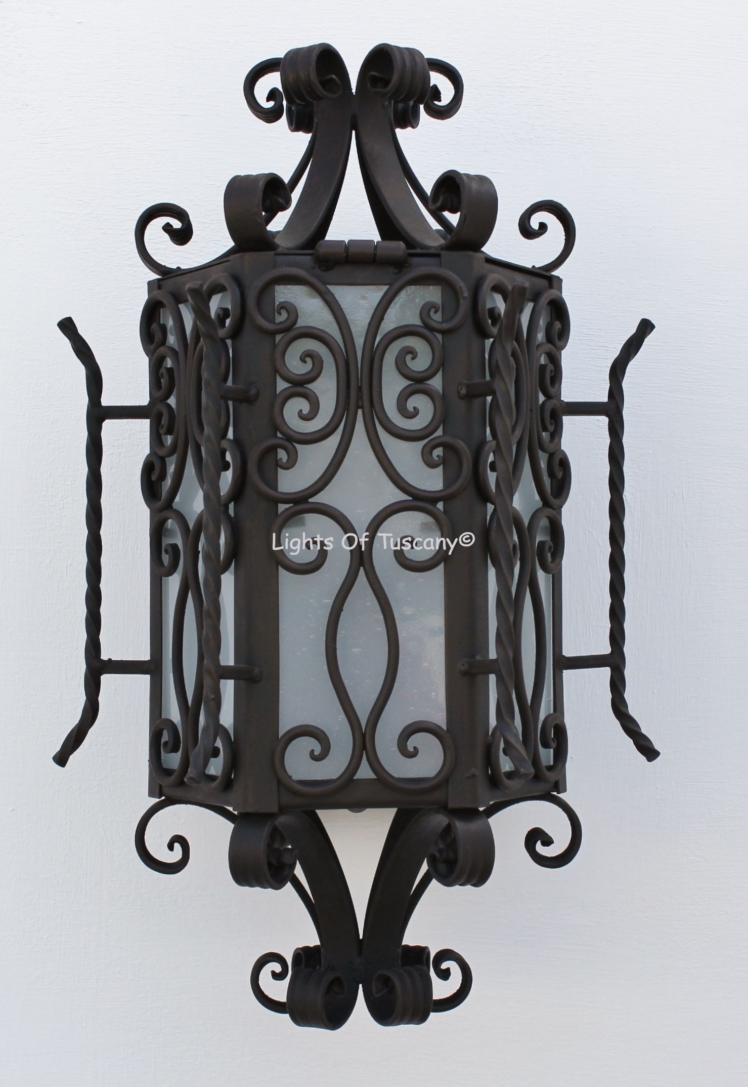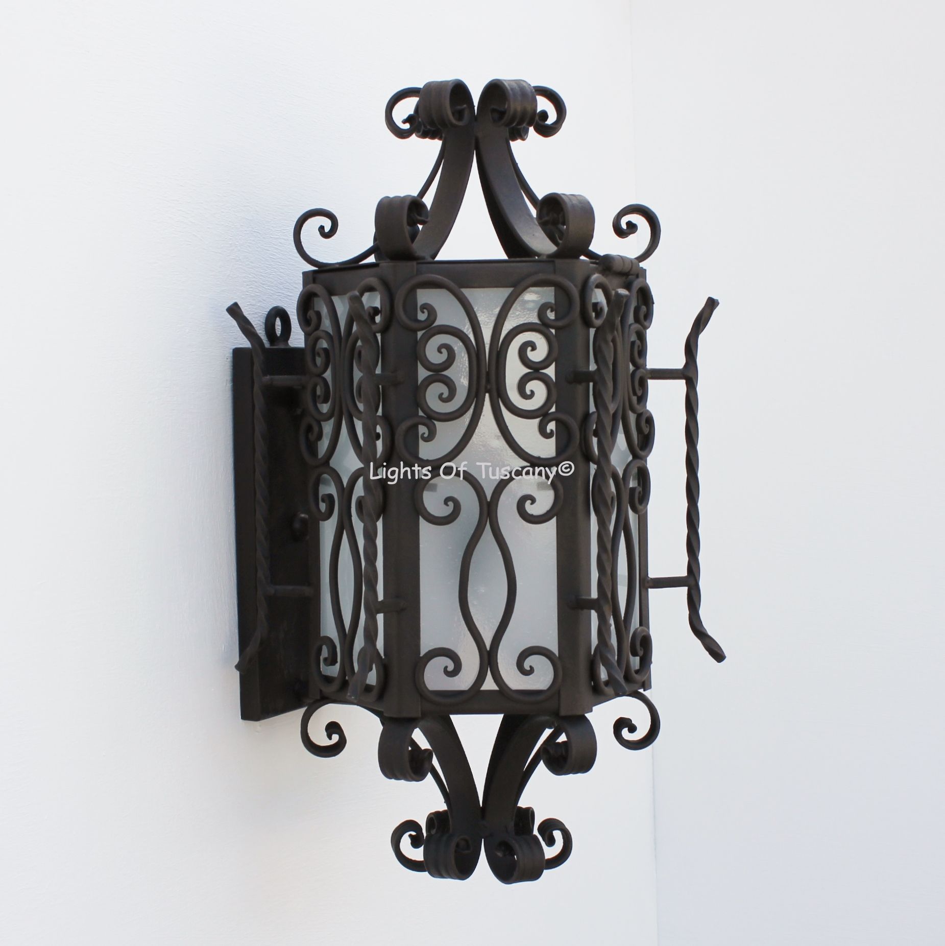 This beautiful hand crafted outdoor wall light is made of all authentic hand forged wrought iron. All our fixtures are hand painted and available in any of our finish options. This fixture is perfect for garage lighting, outdoor walls, backyard and patio lighting.