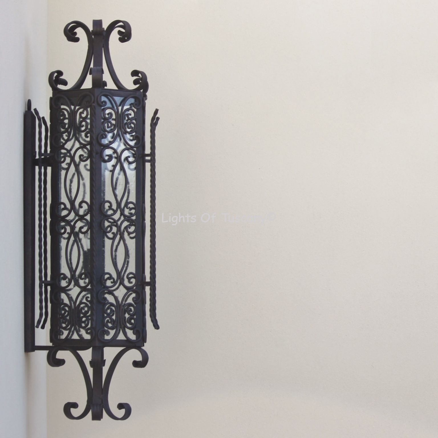 This beautiful hand crafted outdoor wall light is made of all authentic hand forged wrought iron. All our fixtures are hand painted and available in any of our finish options. This fixture is perfect for garage lighting, outdoor walls, backyard and patio lighting.