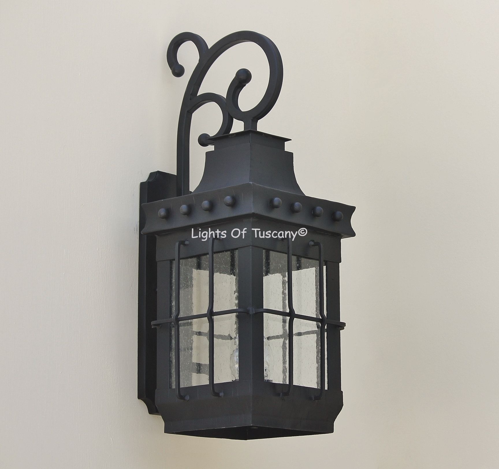 This beautiful hand crafted outdoor wall light is made of all authentic hand forged wrought iron. All our fixtures are hand painted and available in any of our finish options. This fixture is perfect for garage lighting, outdoor walls, backyard and patio lighting.
