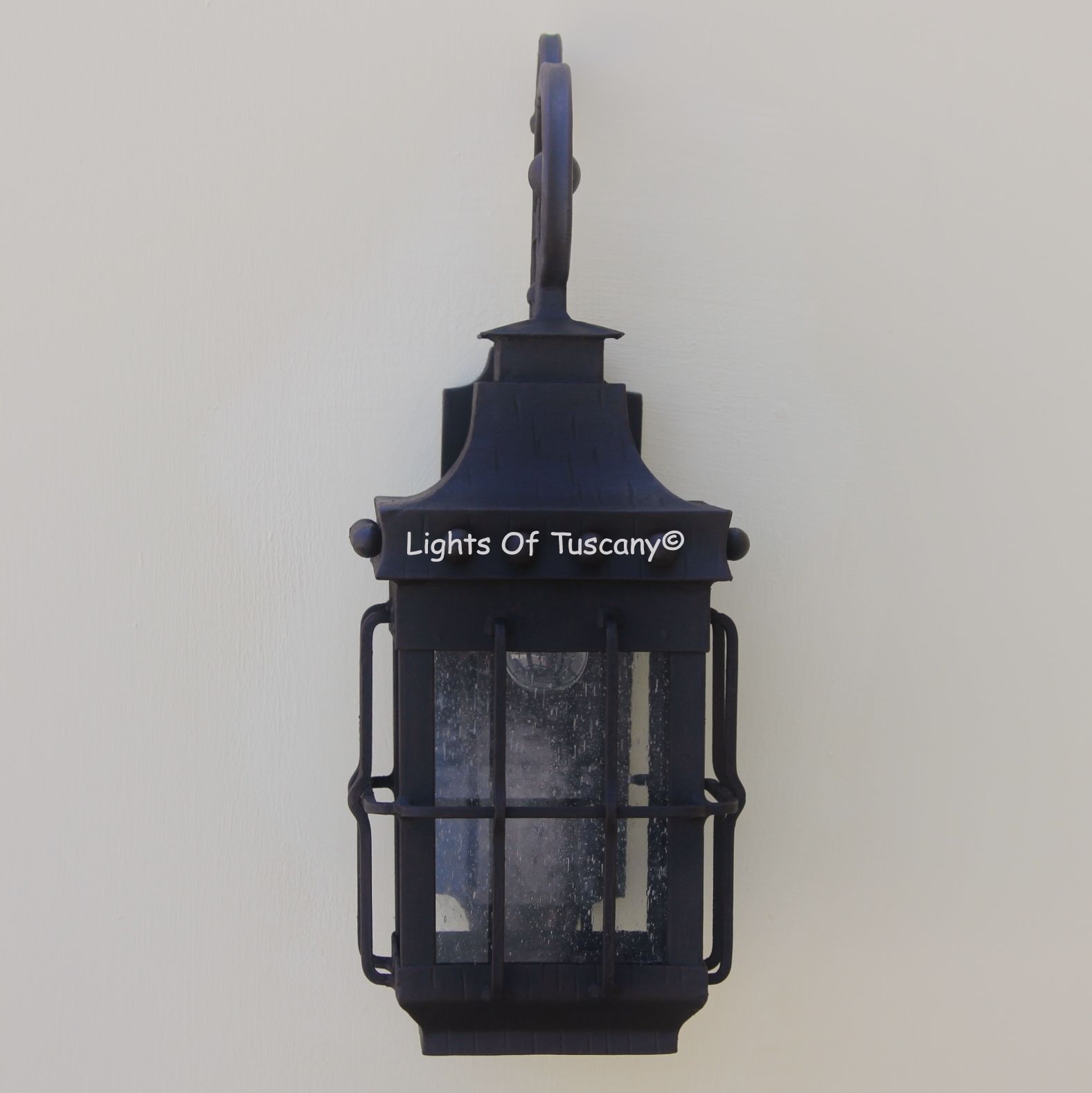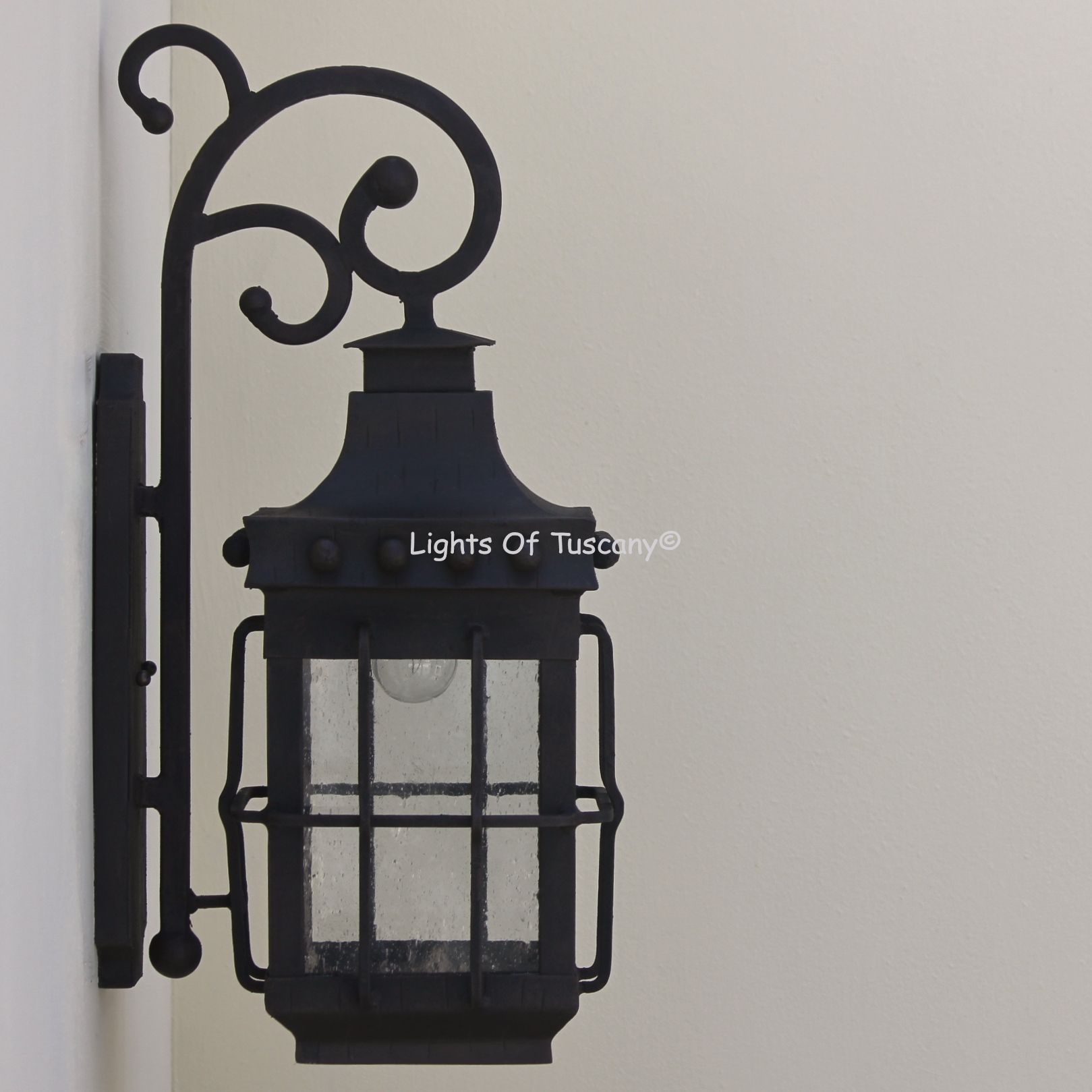 This beautiful hand crafted outdoor wall light is made of all authentic hand forged wrought iron. All our fixtures are hand painted and available in any of our finish options. This fixture is perfect for garage lighting, outdoor walls, backyard and patio lighting.