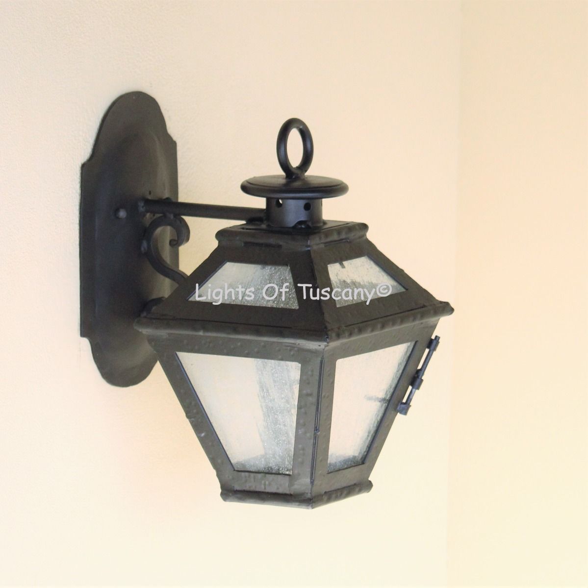 This beautiful hand crafted outdoor wall light is made of all authentic hand forged wrought iron. All our fixtures are hand painted and available in any of our finish options. This fixture is perfect for garage lighting, outdoor walls, backyard and patio lighting.