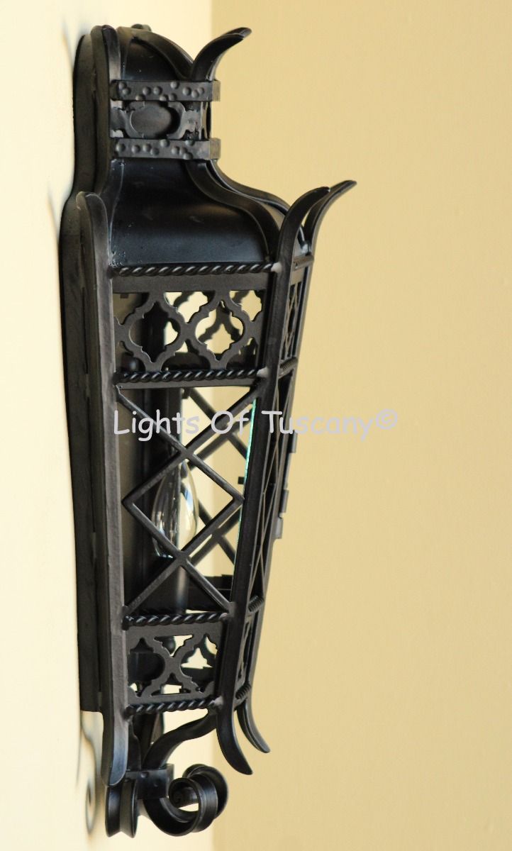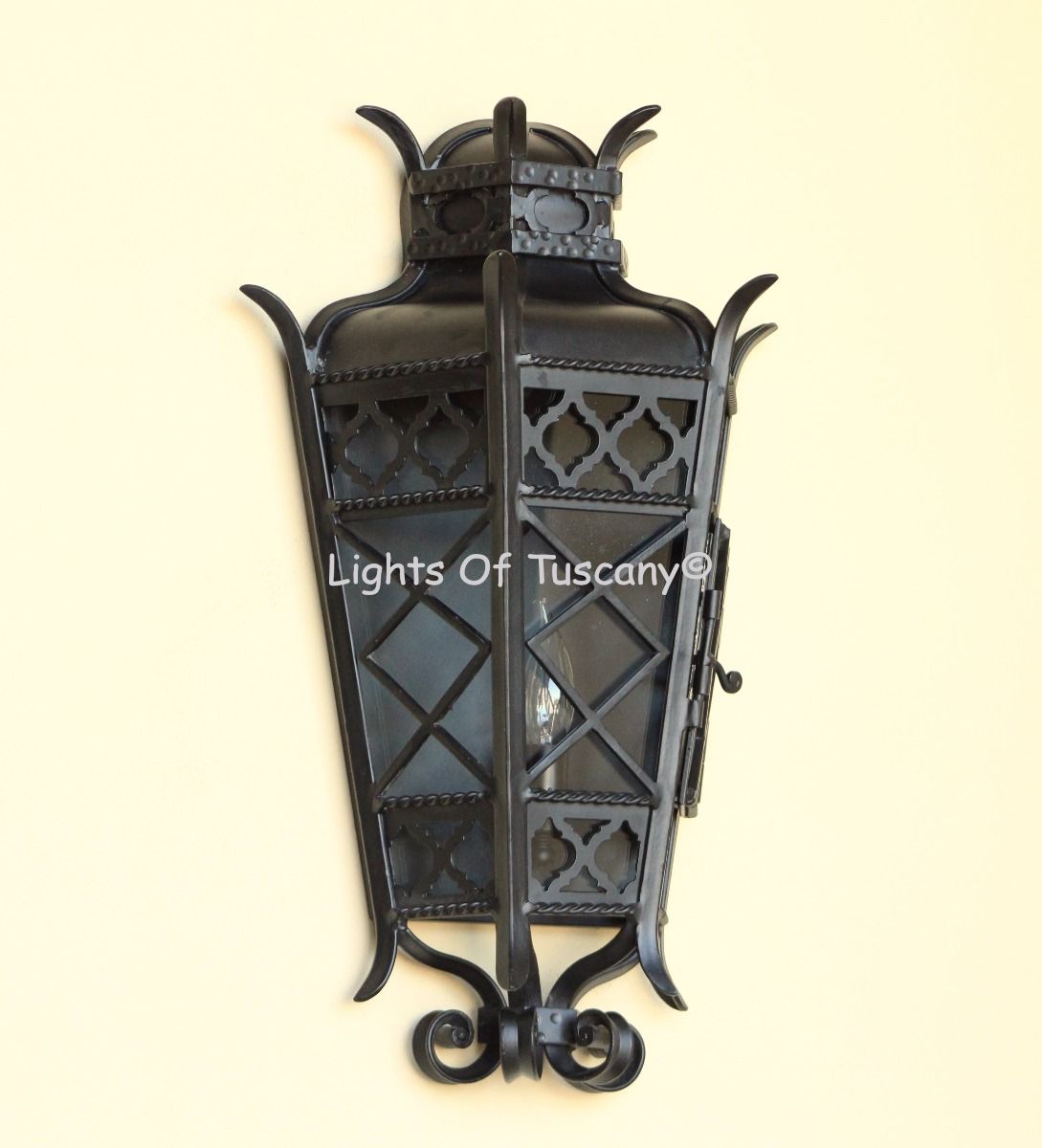 This beautiful hand crafted outdoor wall light is made of all authentic hand forged wrought iron. All our fixtures are hand painted and available in any of our finish options. This fixture is perfect for garage lighting, outdoor walls, backyard and patio lighting.