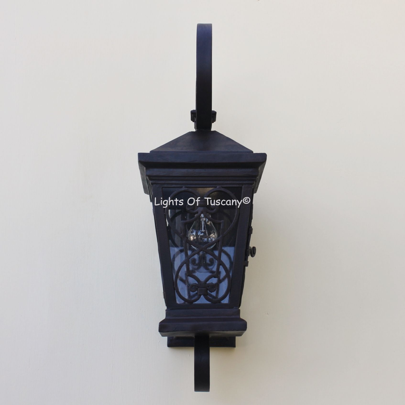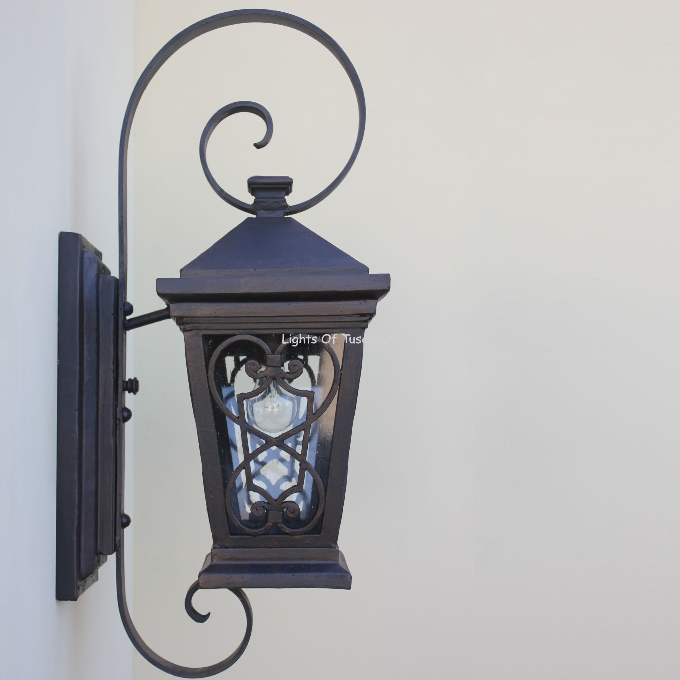 This beautiful hand crafted outdoor wall light is made of all authentic hand forged wrought iron. All our fixtures are hand painted and available in any of our finish options. This fixture is perfect for garage lighting, outdoor walls, backyard and patio lighting.