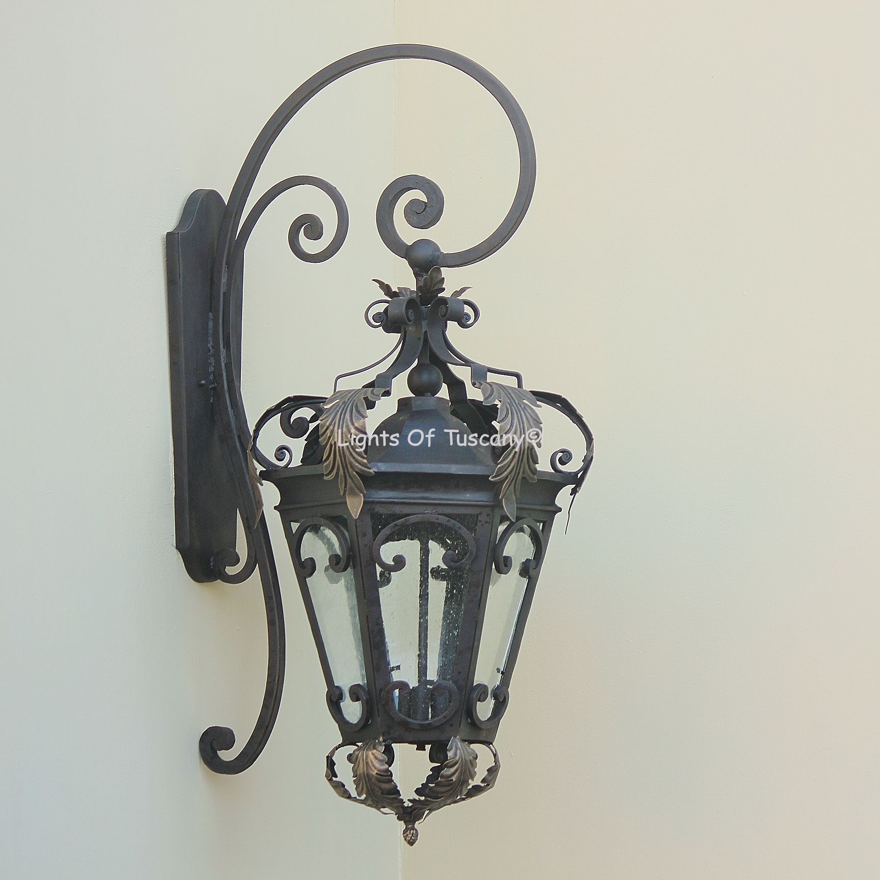 This beautiful hand crafted outdoor wall light is made of all authentic hand forged wrought iron. All our fixtures are hand painted and available in any of our finish options. This fixture is perfect for garage lighting, outdoor walls, backyard and patio lighting.