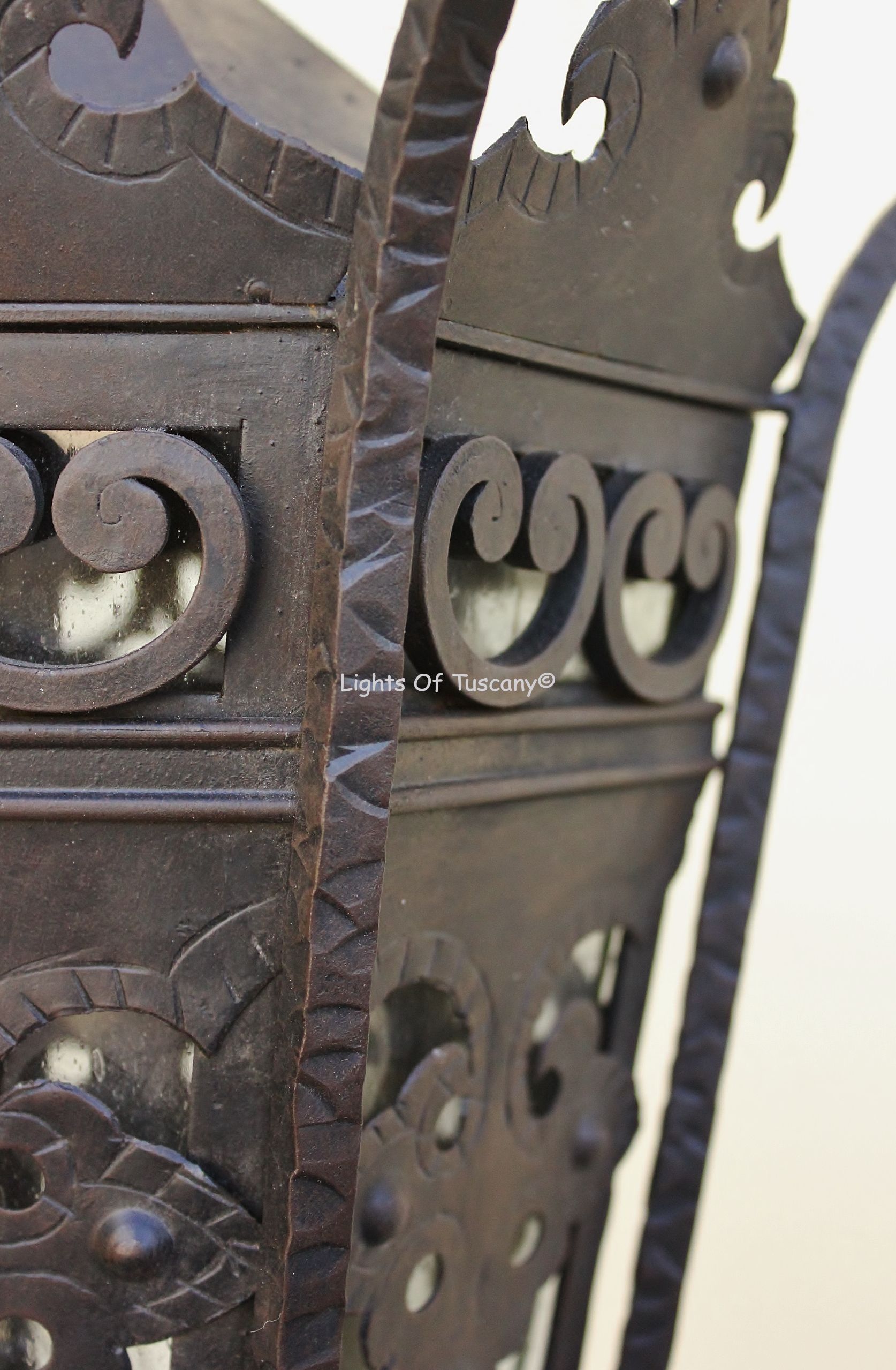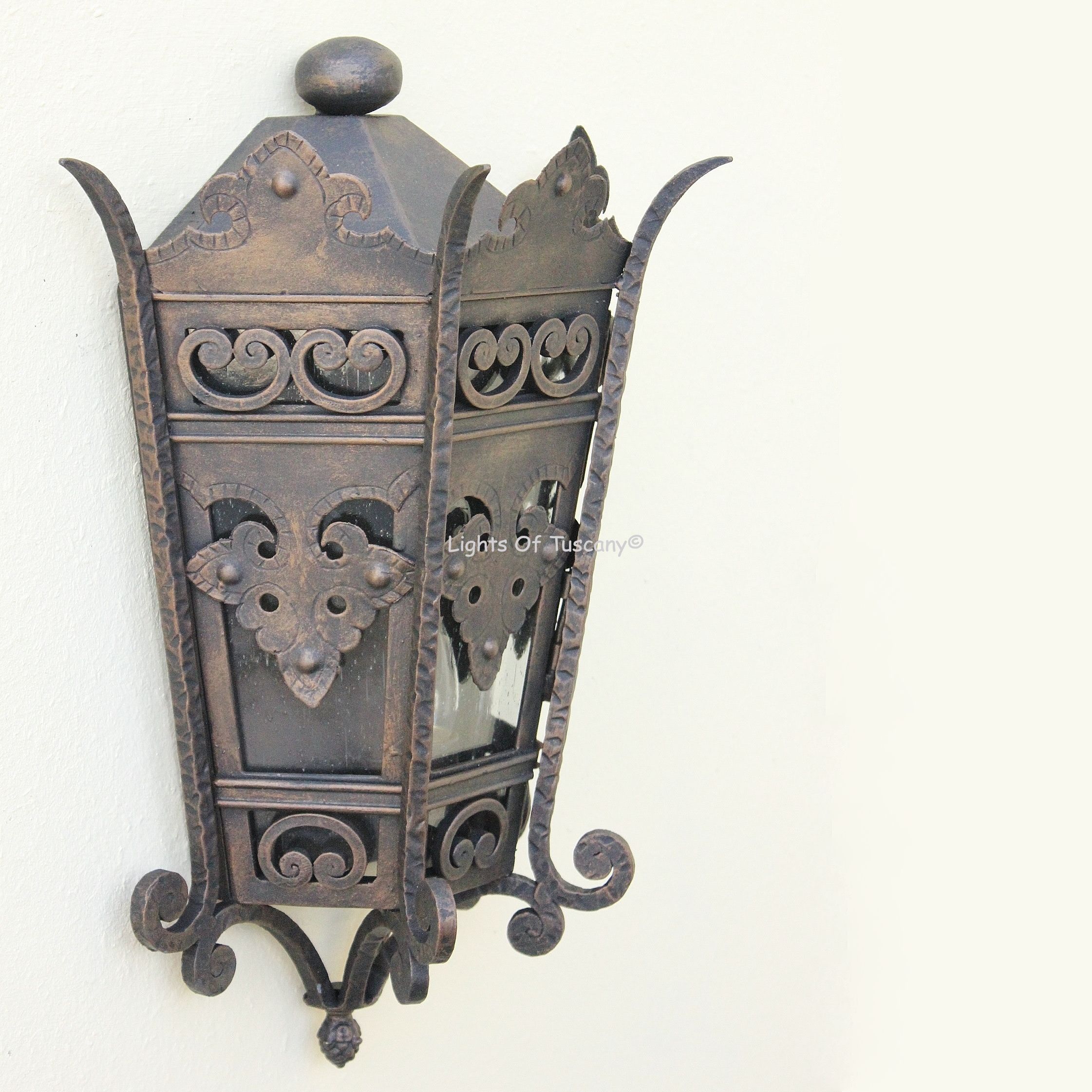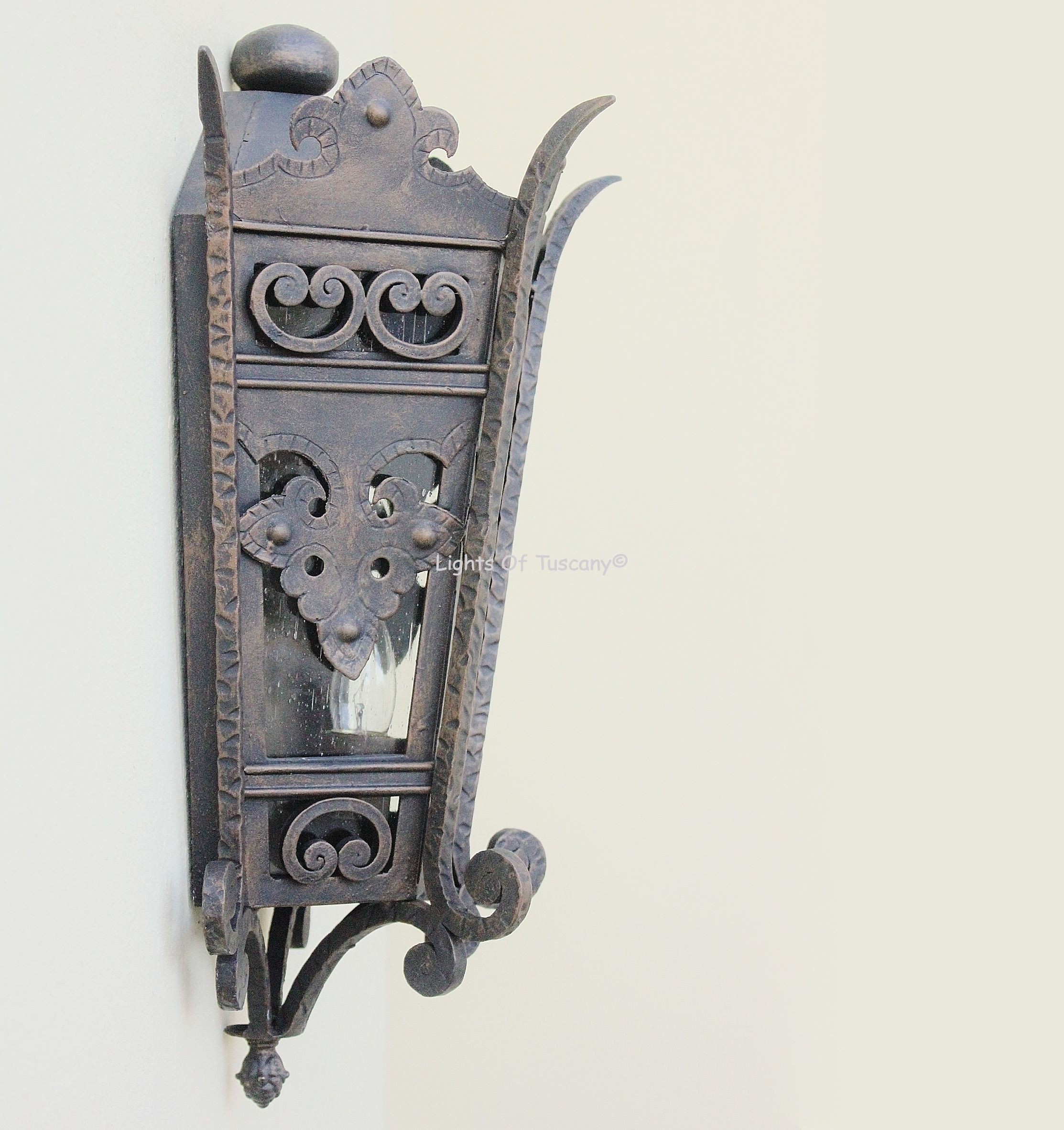 This beautiful hand crafted outdoor wall light is made of all authentic hand forged wrought iron. All our fixtures are hand painted and available in any of our finish options. This fixture is perfect for garage lighting, outdoor walls, backyard and patio lighting.