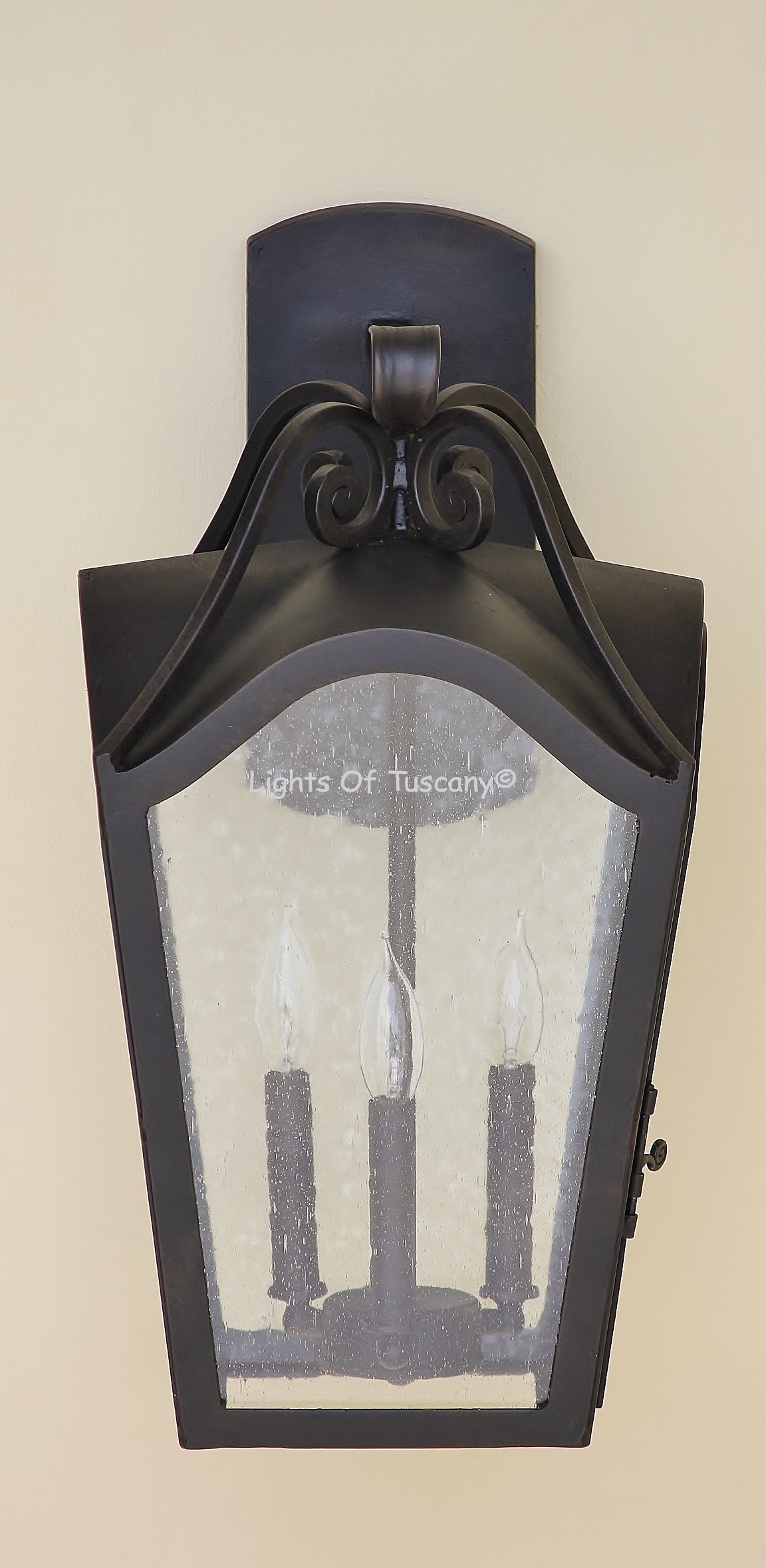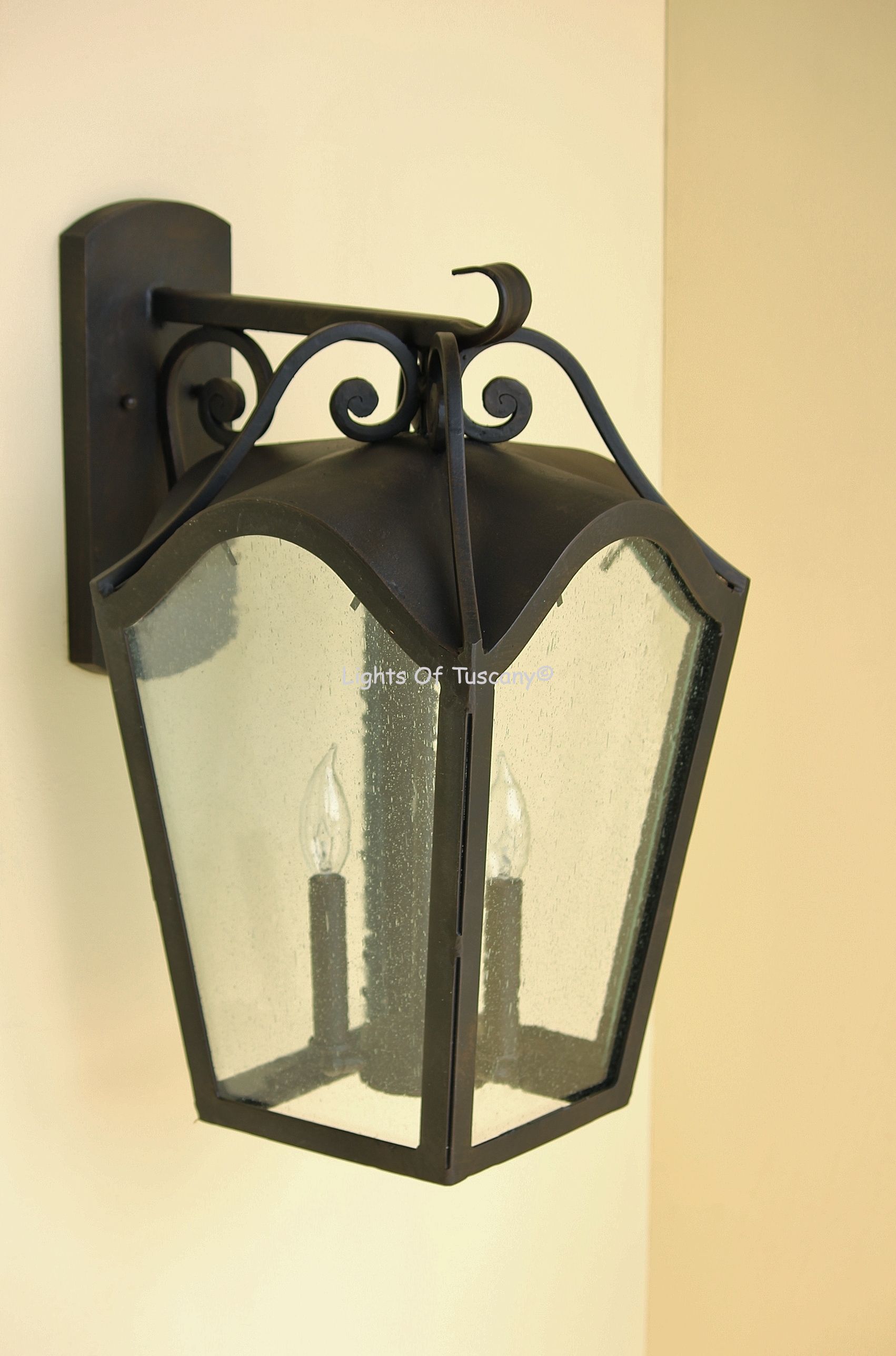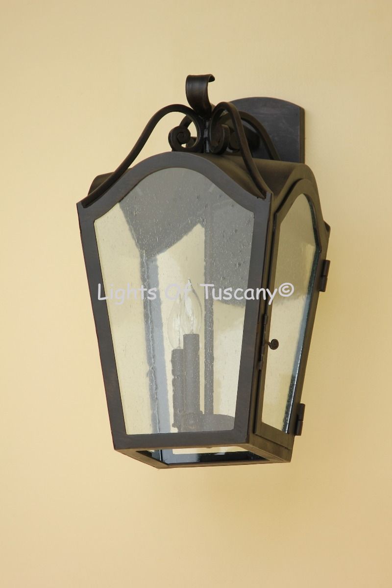 This beautiful hand crafted outdoor wall light is made of all authentic hand forged wrought iron. All our fixtures are hand painted and available in any of our finish options. This fixture is perfect for garage lighting, outdoor walls, backyard and patio lighting.